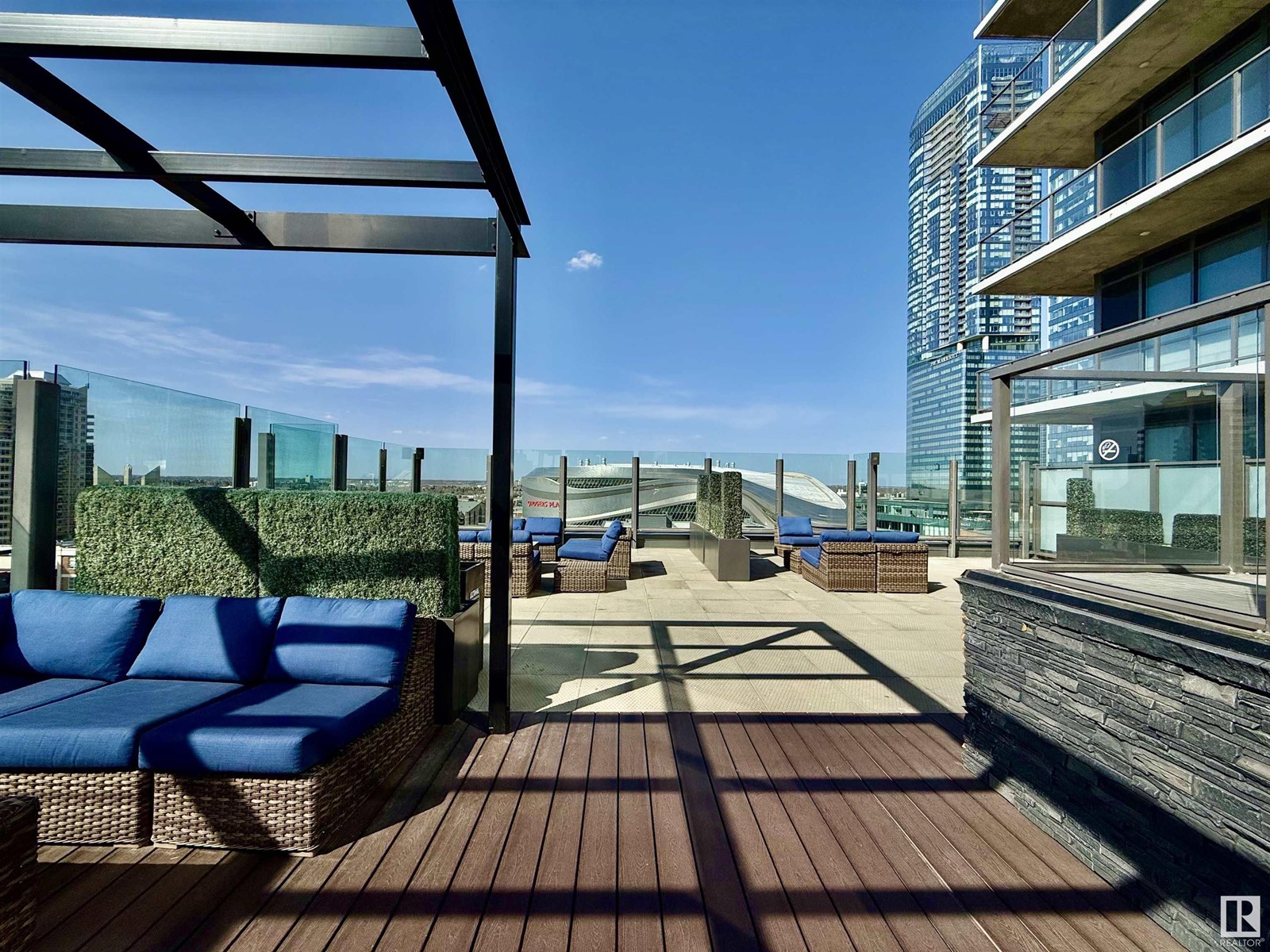Gorgeous 2-bedroom + den luxury condo in downtown edmonton’s ice district. this 2-bedroom, 2-bathroom condo with a spacious double-door den is perfect for those who need a workspace at home. the master bedroom suite features a walk-through closet leading to a luxurious 5-piece ensuite with dual sinks, a soaker tub, and a glass-enclosed shower. the second bedroom has a walk-in closet. a large den with double doors provides the perfect space for a home office or guest room. open-concept kitchen with solid wood cabinetry, quartz countertops, an under-mount sink, and premium stainless steel appliances. heated underground titled parking stall near the elevator. titled storage unit included for extra space to meet all your storage needs. fully equipped fitness centre, party room,rooftop patio with a hot tub. walking distance toroger’s place, amazing boutiques/restaurants, grant macewan & farmer's market. make the ultima your new home and enjoy the ultimate downtown lifestyle. (id:62933)