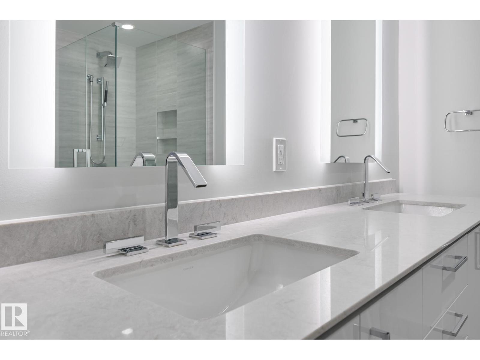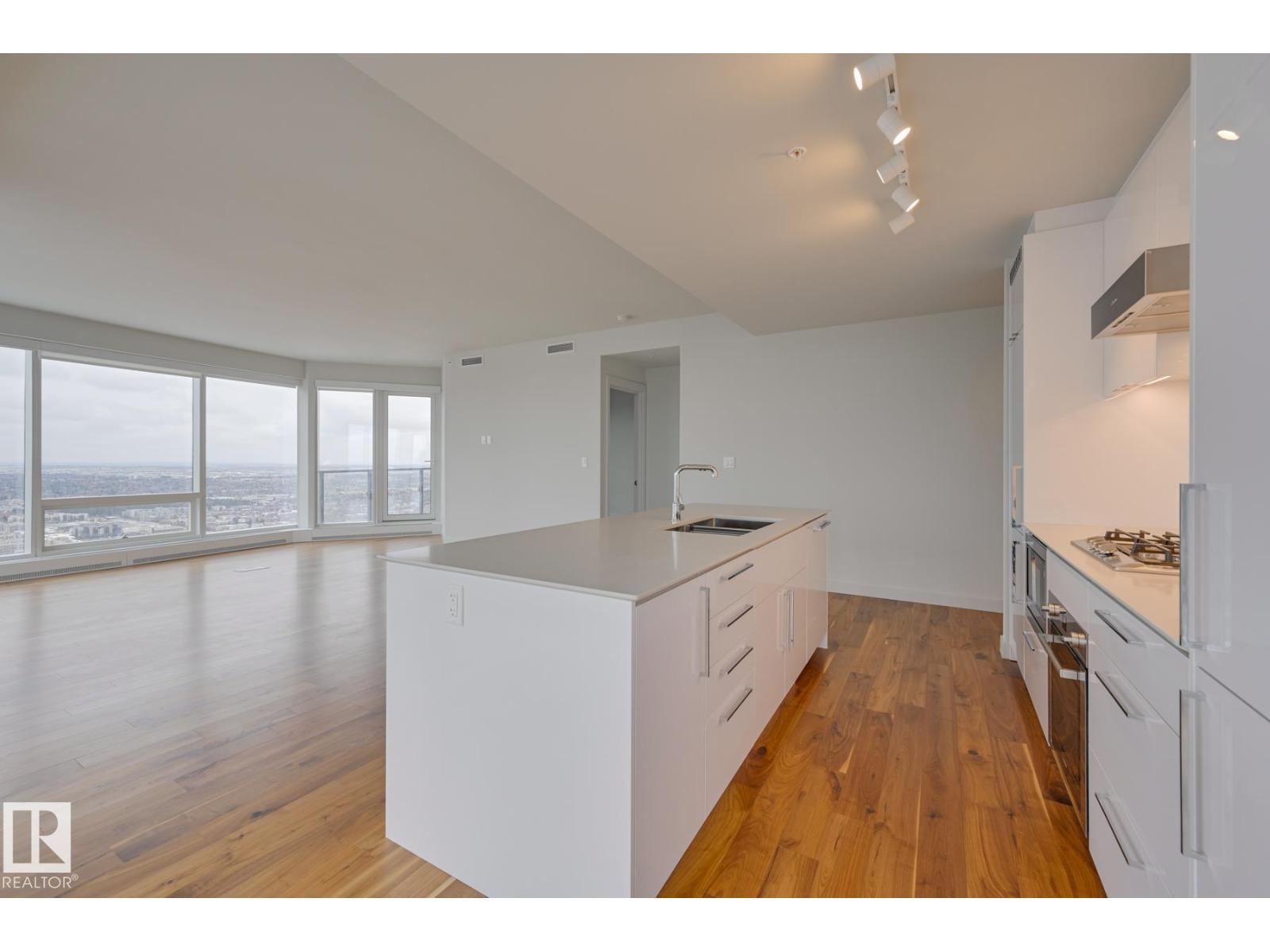 Experience elevated urban living on the 41st floor of the legends in edmonton’s vibrant ice district. this luxurious residence offers breathtaking panoramic views and refined modern finishes throughout. the sleek kitchen features white lacquer cabinetry, quartz countertops, and premium appliances. the thoughtfully designed layout includes two spacious bedrooms, each with its own ensuite, a versatile den or office, a stylish guest bathroom, and convenient in-suite laundry. step outside to enjoy two private balconies. residents enjoy access to 24-hour concierge service, archetype gym, indoor pool, spa, and some of edmonton’s finest dining—all just steps from your door. an unparalleled lifestyle in the heart of the city. (id:62933)