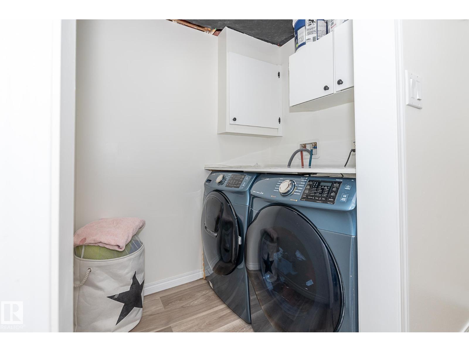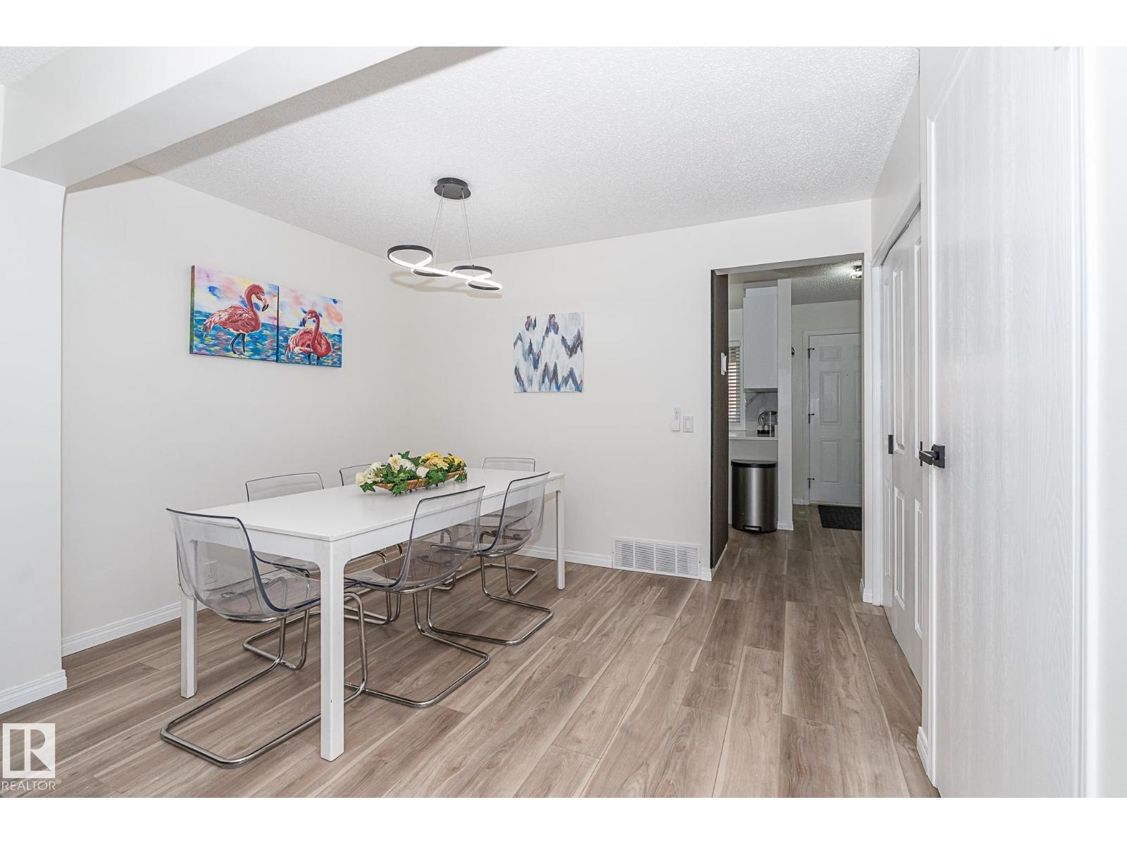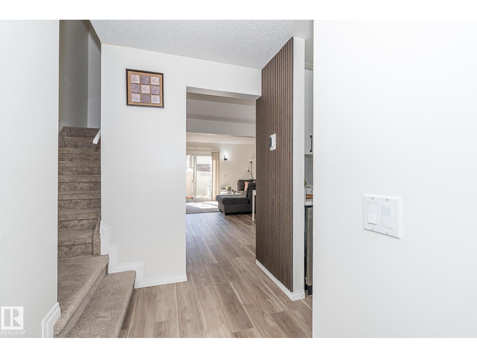 Welcome to this contemporary, bright townhouse in desirable knights bridge, completely renovated from top to bottom to the highest standards! step inside to a spacious open-concept living and dining area that opens onto a beautiful fenced yard, a big kitchen with plenty of cupboard and counter space, and a half bath. the upper floor boasts a huge primary w a generous sized closet, two more good size bedrooms, and a 4-piece bath. the finished basement offers a cozy recreation room, a den, & a 3-piece bath. no expenses spared! brand new: vinyl planks, carpet, paint, feature walls, kitchen w st steel appliances & quartz countertops, bathrooms, closet doors, window coverings, smart motion-censored lighting system with adjustable multicolor light, smart thermostat, lawn, & more! two parking stalls conveniently located at your doorstep. well managed complex with many upgrades since 2011, like shingles, siding, windows & vinyl fence. enjoy living in a modern unit, just minutes to shops, lrt, schools, and parks. (id:62933)