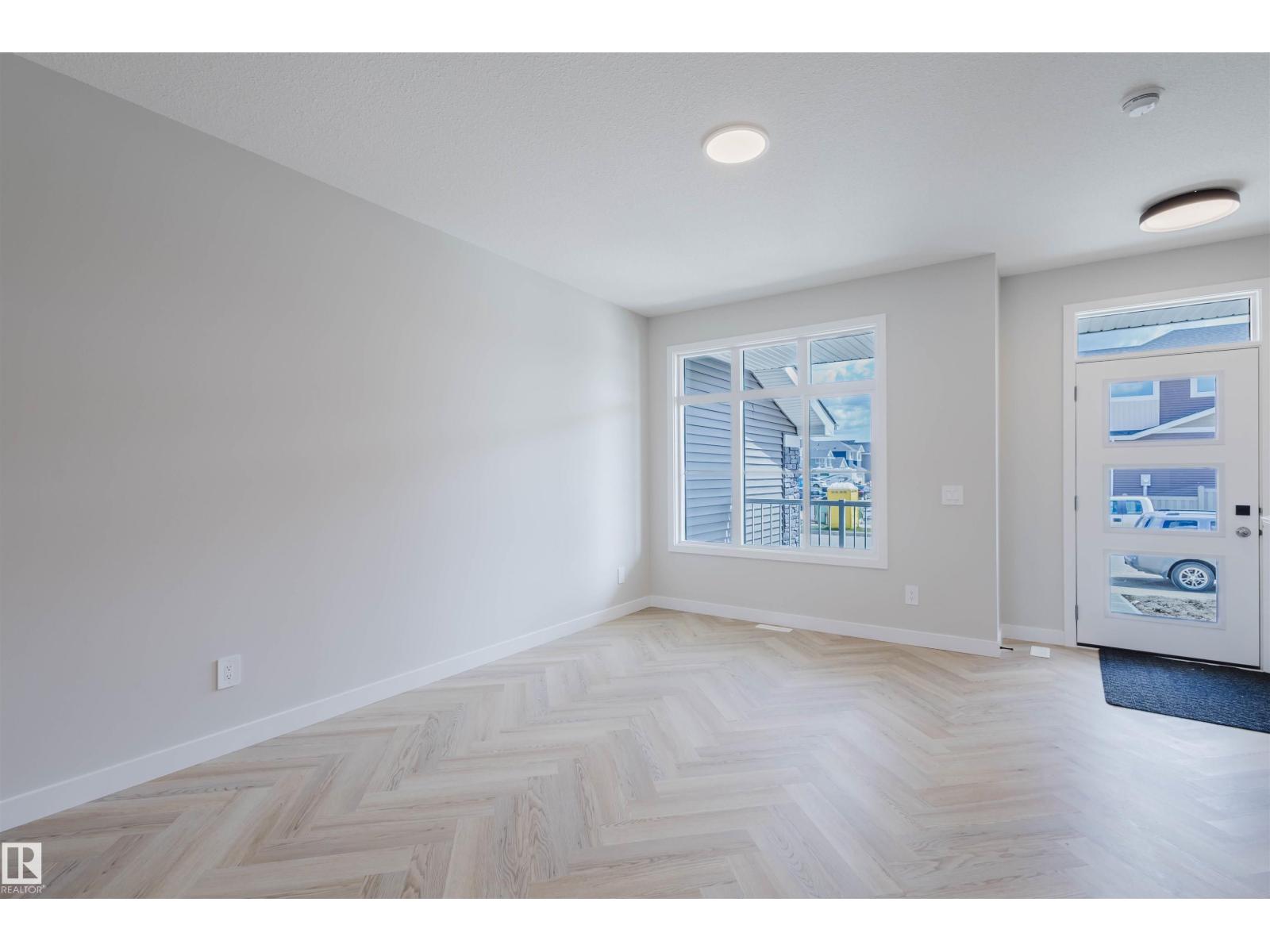 Corner lot! discover your dream home in kinglet gardens. nestled in a tranquil community surrounded by nature and trails, this stunning 3-bedroom, 2.5-bathroom duplex seamlessly blends style and functionality. the main floor boasts 9' ceilings and a convenient half bath, perfect for guests. the beautifully designed kitchen is a highlight, featuring 42 upgraded cabinets, quartz countertops, and a waterline to the fridge. upstairs, enjoy the flex area, spacious laundry room, full 4-piece bathroom, and 3 generously sized bedrooms. the luxurious primary suite offers a walk-in closet and ensuite. the separate side entrance and legal suite rough-ins offer flexibility for additional income or extended family. other features include full landscaping, a double detached garage, all appliances included, unfinished basement, high-efficiency furnace, and triple-pane windows. built by rohit. quick possession. photos may differ from actual property. (id:62933)