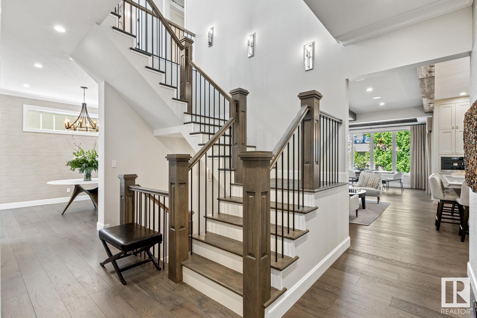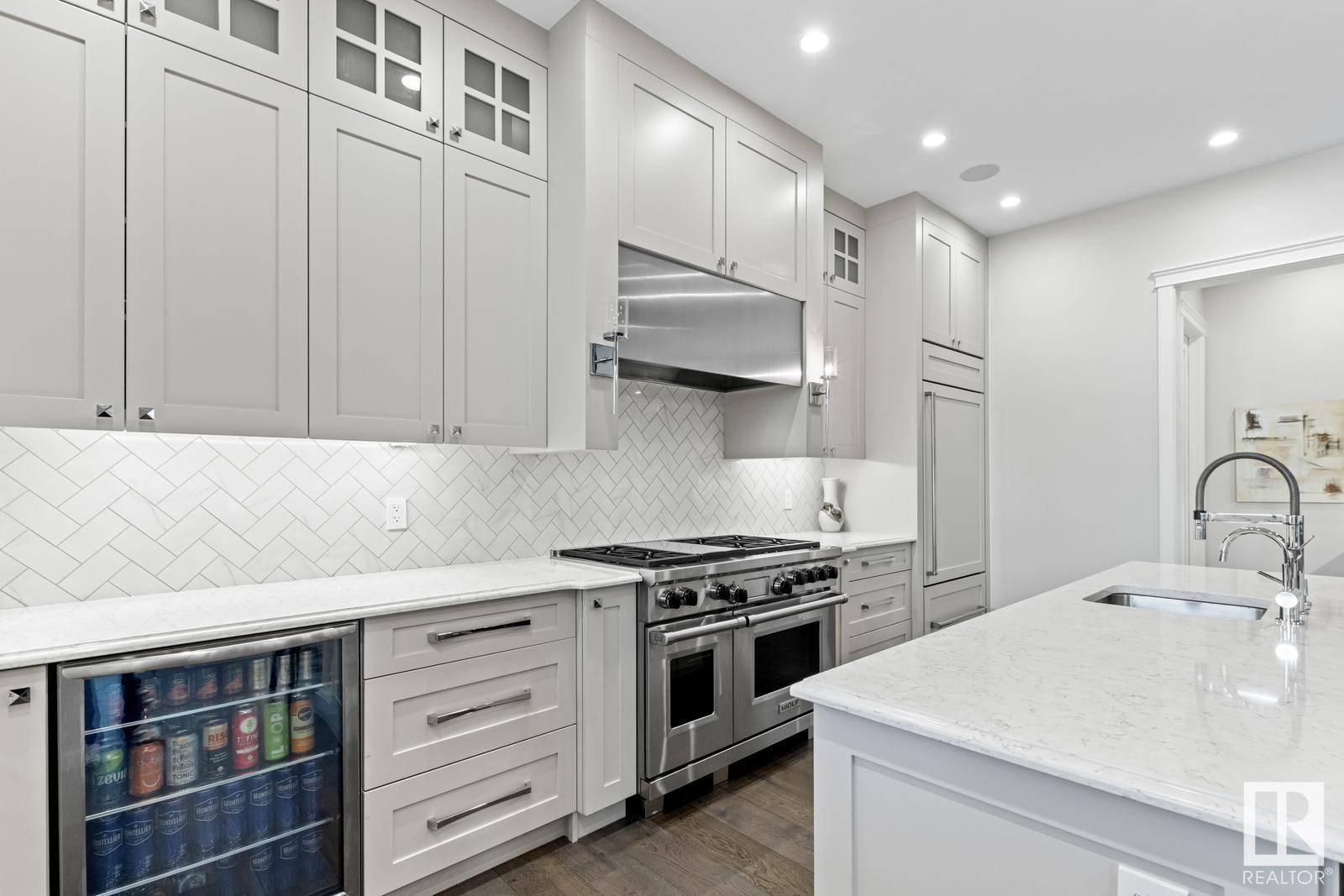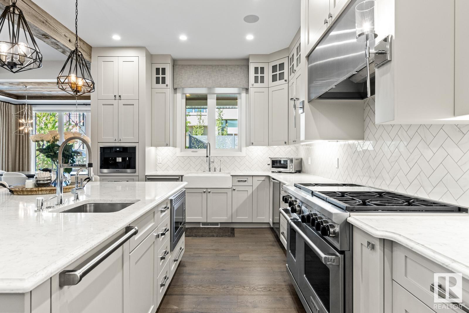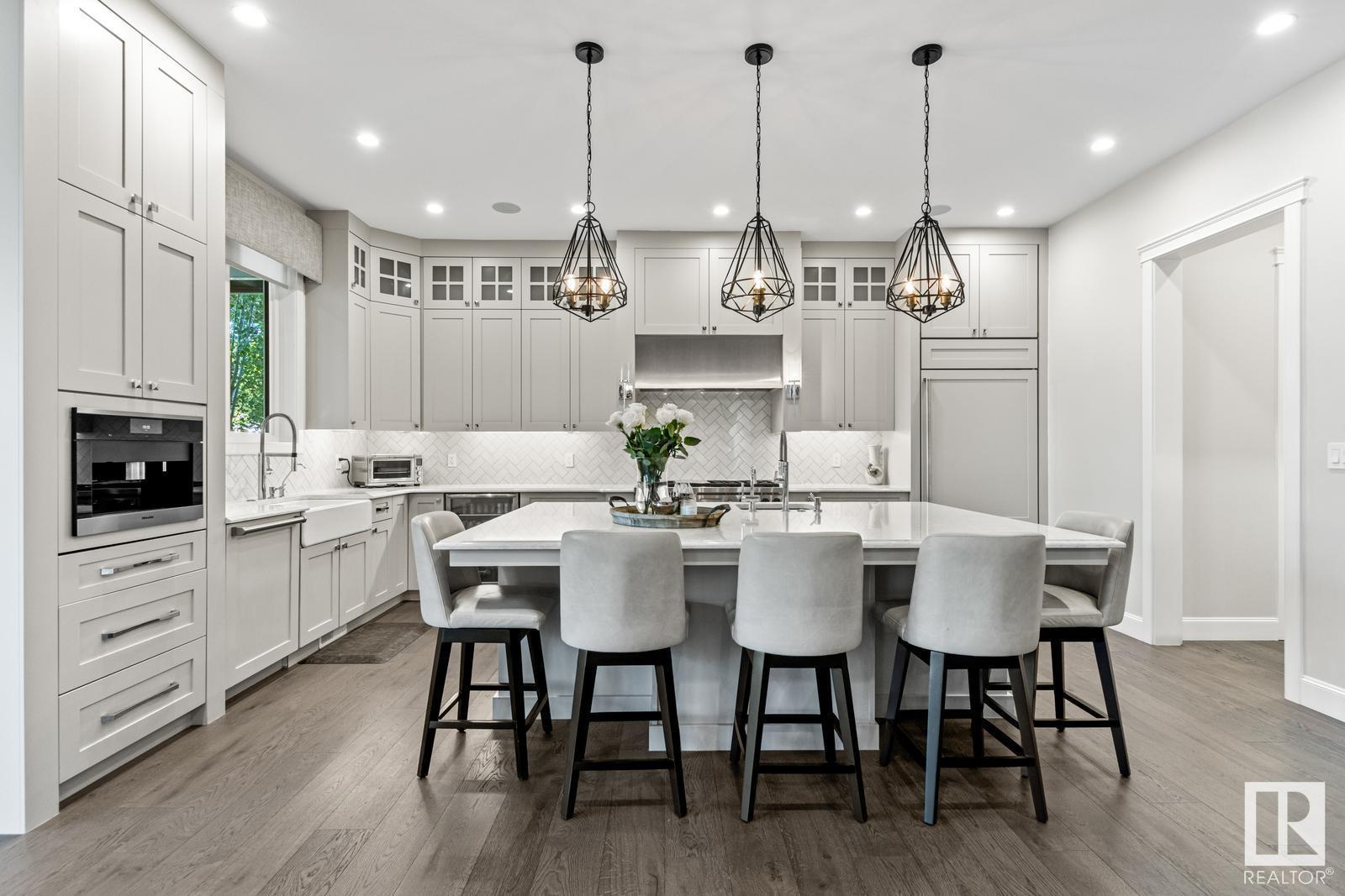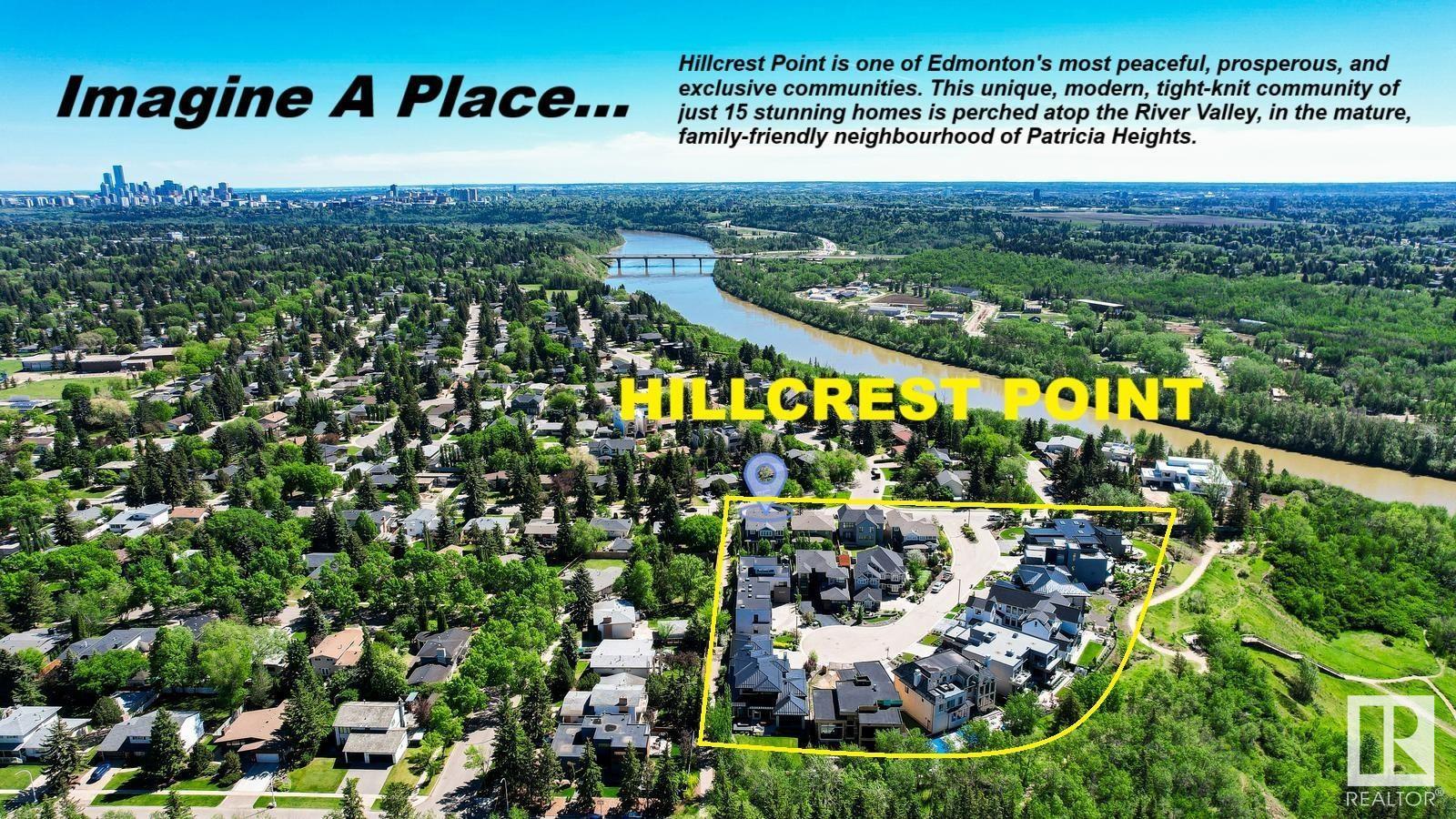 Imagine a place… a beautiful home nestled in one of edmonton’s most peaceful exclusive areas hillcrest point! a modern tight knit community of 15 stunning homes rests on top of the river valley in the mature family neighbourhood of patricia heights. this masterfully crafted home offers over 5300 sq ft of impeccably curated living space. 4 beds(could be 6) - 5 baths. soaring grand foyer greets you! a walk-through closet to a triple over sized dream garage and dog run! heart of the home unfolds in an open-concept great room, brick-facing fireplace, 10 ft ceilings, chef inspired kitchen with built in miele coffee station, wolf gas range, subzero fridge-freezer, wine/beverage fridges, 2 miele dishwashers, butlers & walk-in pantries! upper level offers 3 beds 3 baths incl. sprawling primary with spa-inspired ensuite - his & hers walk-in closets! laundry room, home office, family room with hobby alcove. downstairs bed/bath, recroom with wet bar, gym. out back to your private landscaped oasis…and more! (id:62933)