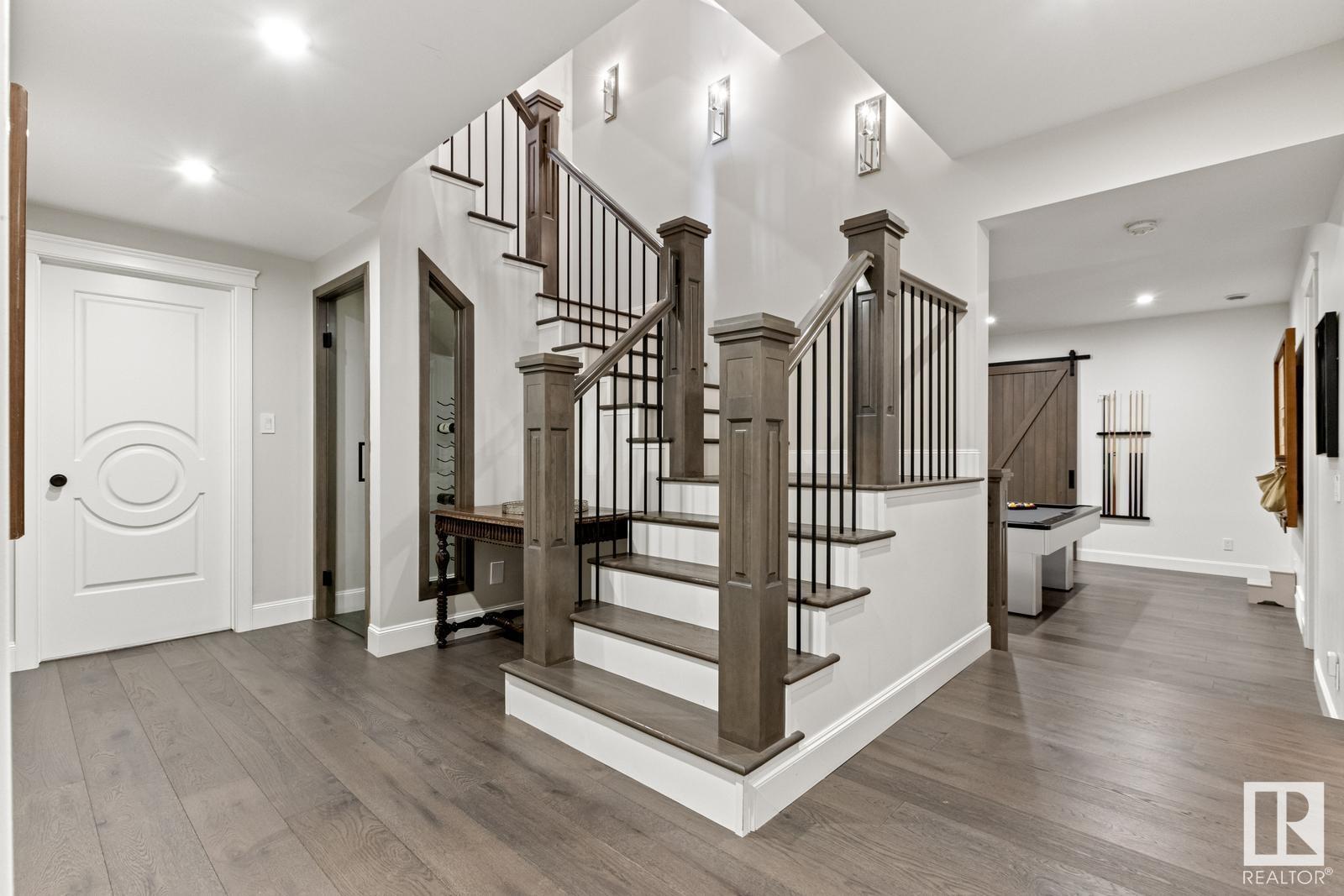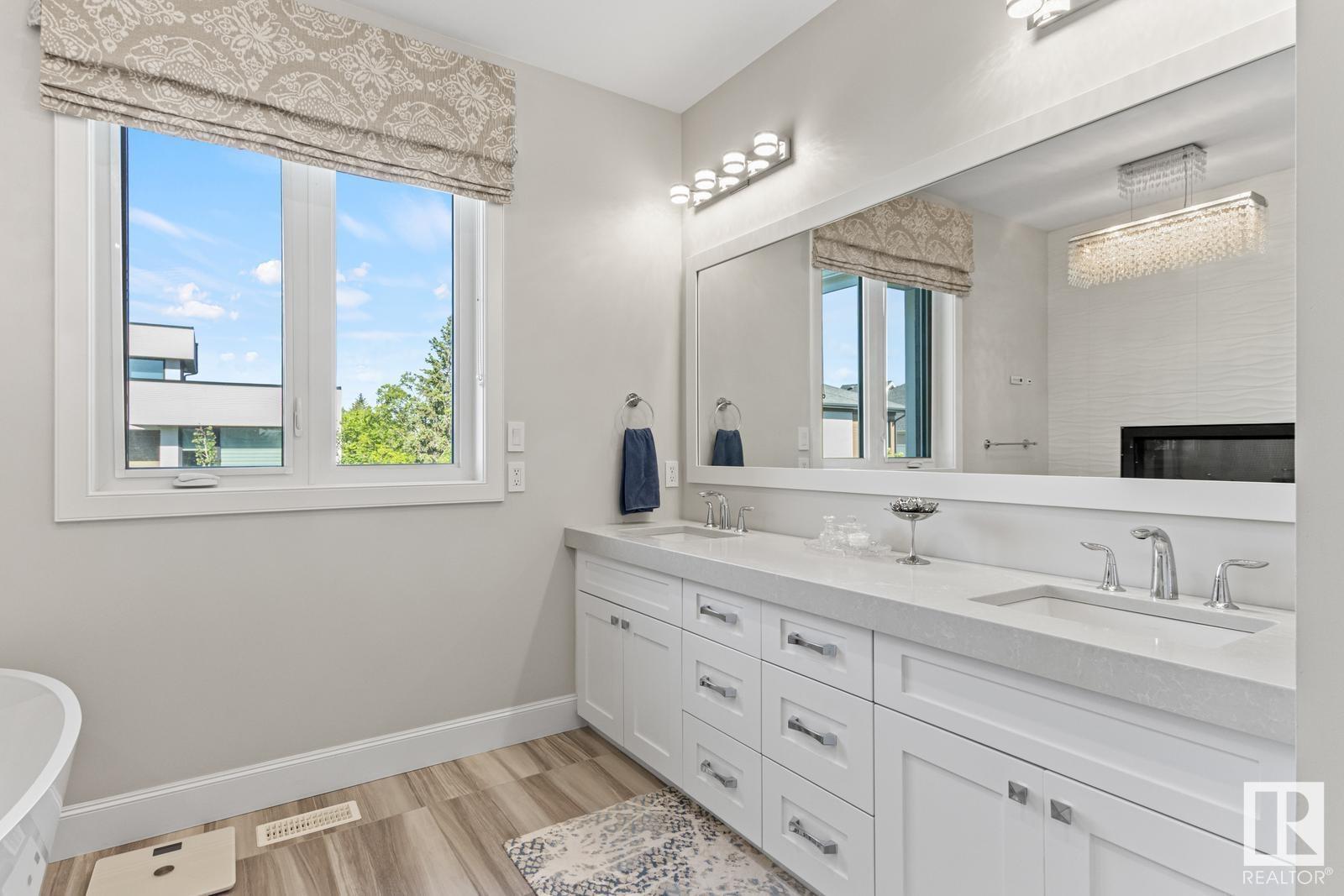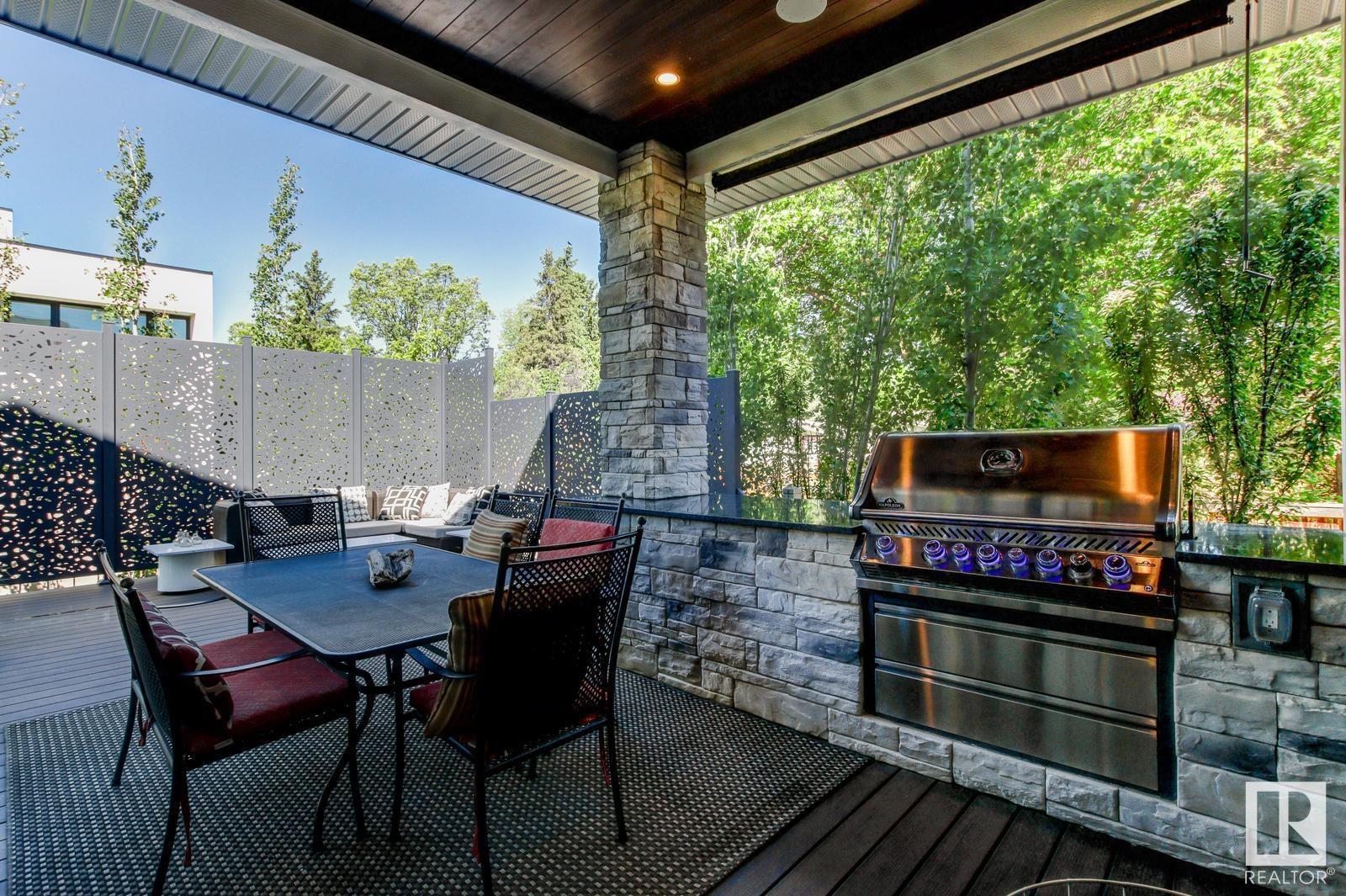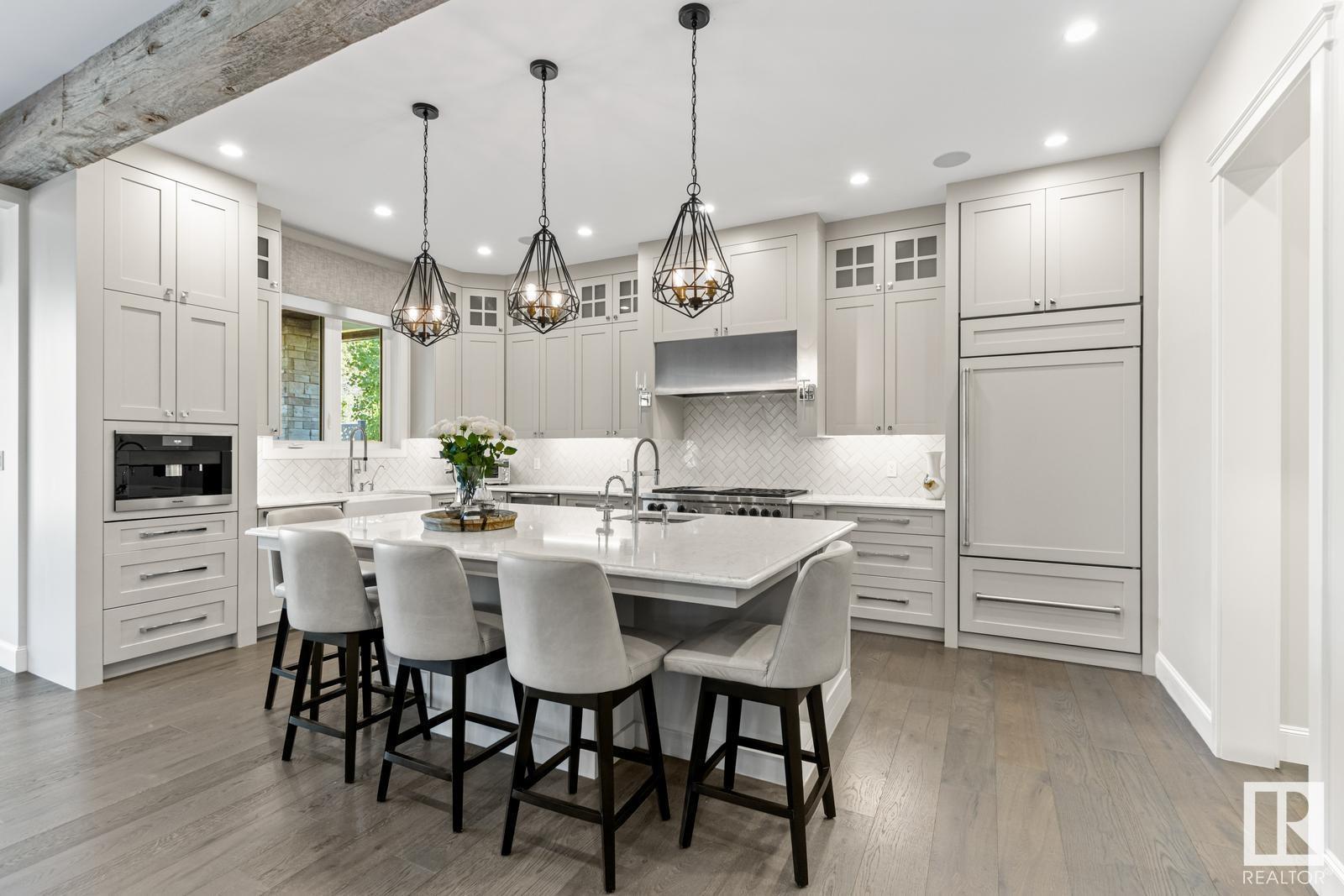 Imagine a place… a beautiful home nestled in one of edmonton’s most peaceful exclusive areas hillcrest point! a modern tight knit community of 15 stunning homes rests on top of the river valley in the mature family neighbourhood of patricia heights. this masterfully crafted home offers over 5300 sq ft of impeccably curated living space. 4 beds(could be 6) - 5 baths. soaring grand foyer greets you! a walk-through closet to a triple over sized dream garage and dog run! heart of the home unfolds in an open-concept great room, brick-facing fireplace, 10 ft ceilings, chef inspired kitchen with built in miele coffee station, wolf gas range, subzero fridge-freezer, wine/beverage fridges, 2 miele dishwashers, butlers & walk-in pantries! upper level offers 3 beds 3 baths incl. sprawling primary with spa-inspired ensuite - his & hers walk-in closets! laundry room, home office, family room with hobby alcove. downstairs bed/bath, recroom with wet bar, gym. out back to your private landscaped oasis…and more! (id:62933)