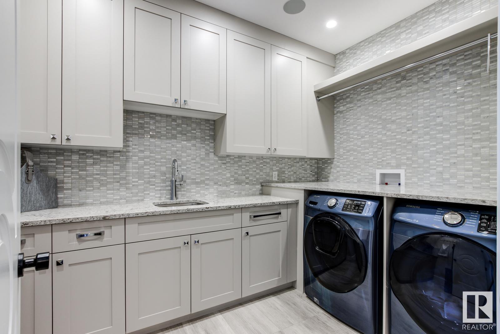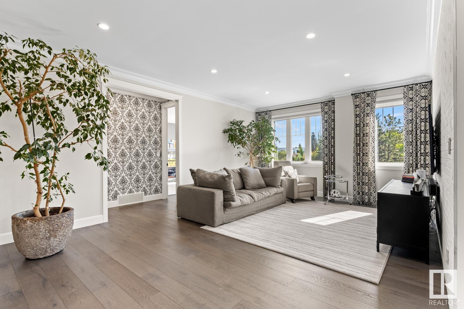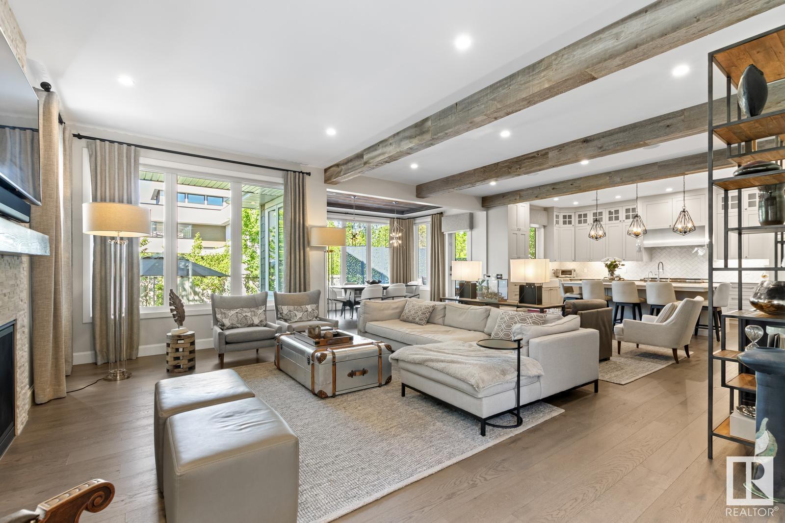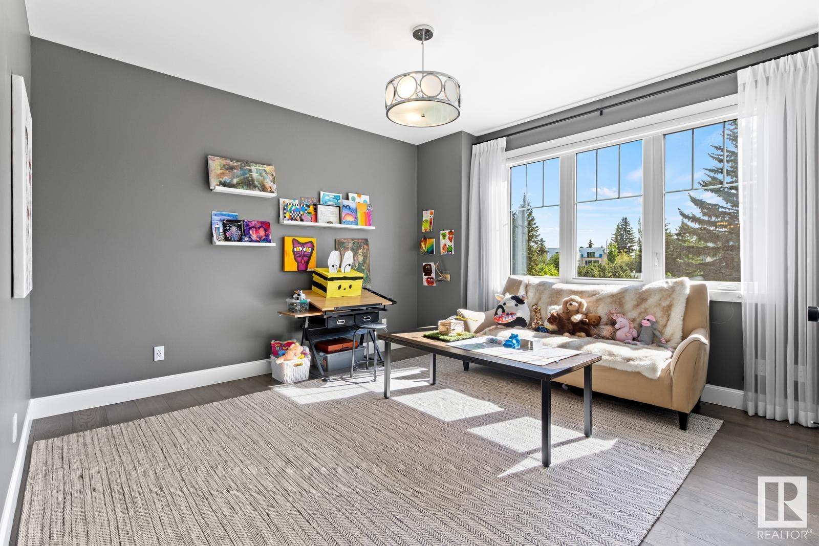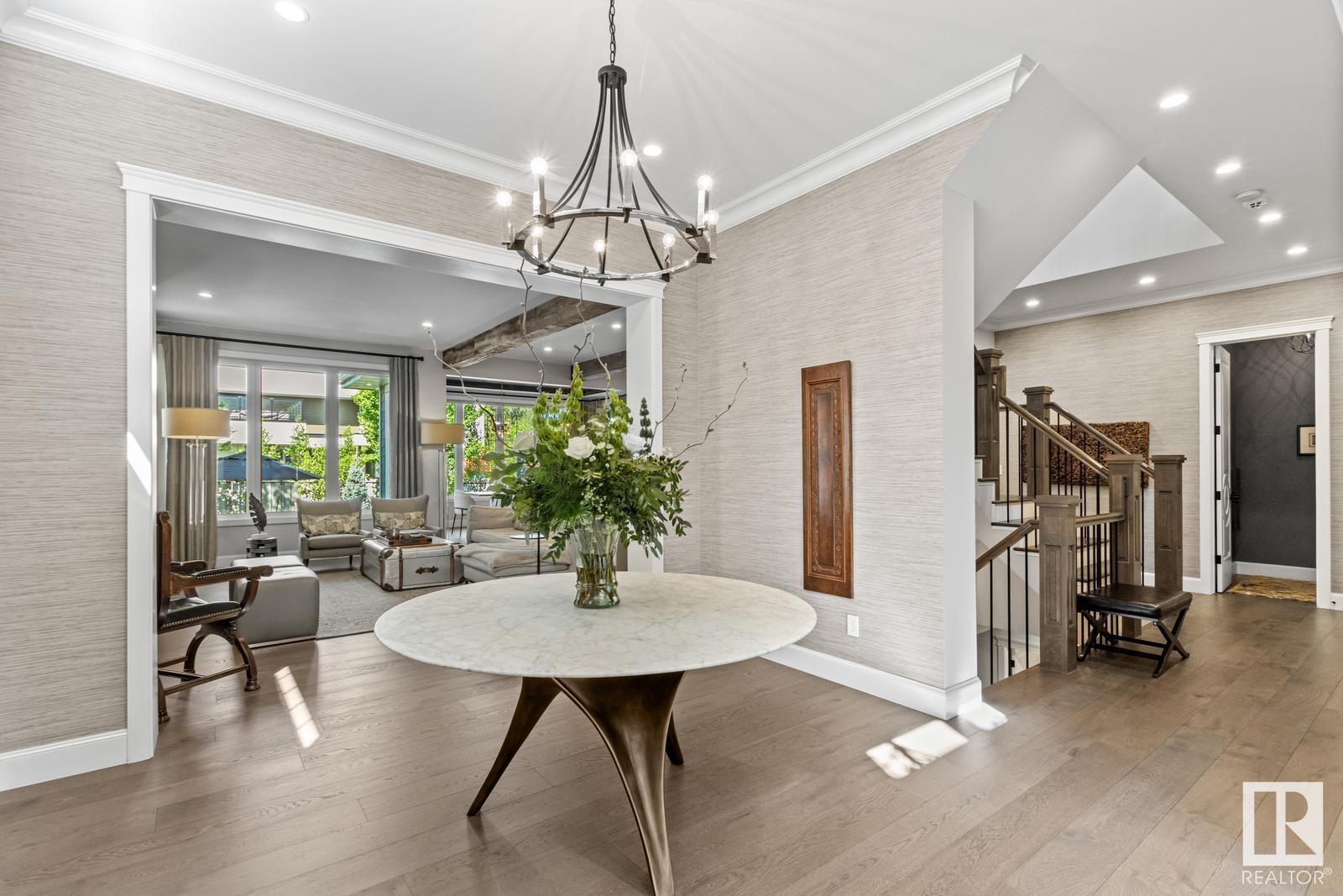 Imagine a place… a beautiful home nestled in one of edmonton’s most peaceful exclusive areas hillcrest point! a modern tight knit community of 15 stunning homes rests on top of the river valley in the mature family neighbourhood of patricia heights. this masterfully crafted home offers over 5300 sq ft of impeccably curated living space. 4 beds(could be 6) - 5 baths. soaring grand foyer greets you! a walk-through closet to a triple over sized dream garage and dog run! heart of the home unfolds in an open-concept great room, brick-facing fireplace, 10 ft ceilings, chef inspired kitchen with built in miele coffee station, wolf gas range, subzero fridge-freezer, wine/beverage fridges, 2 miele dishwashers, butlers & walk-in pantries! upper level offers 3 beds 3 baths incl. sprawling primary with spa-inspired ensuite - his & hers walk-in closets! laundry room, home office, family room with hobby alcove. downstairs bed/bath, recroom with wet bar, gym. out back to your private landscaped oasis…and more! (id:62933)
