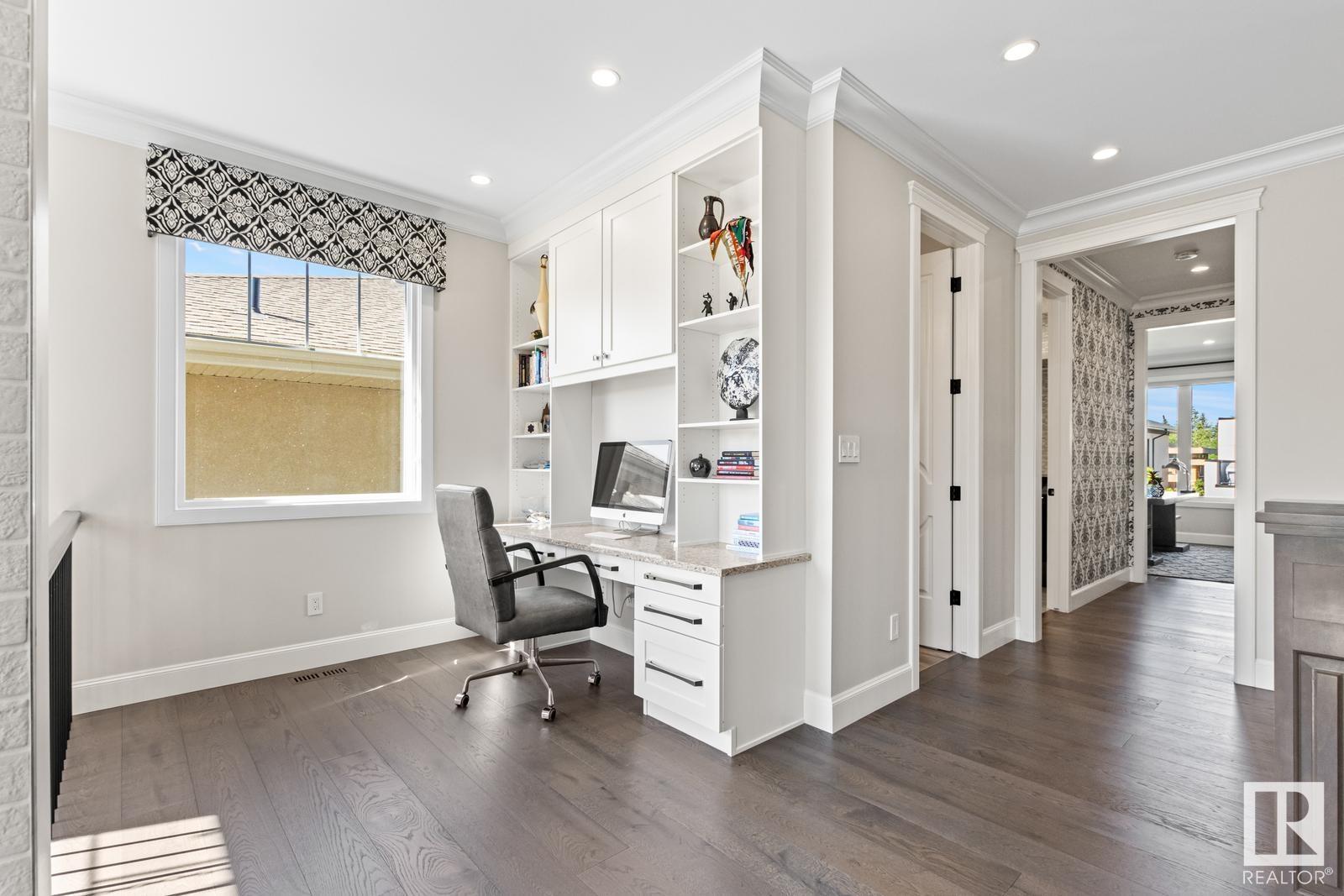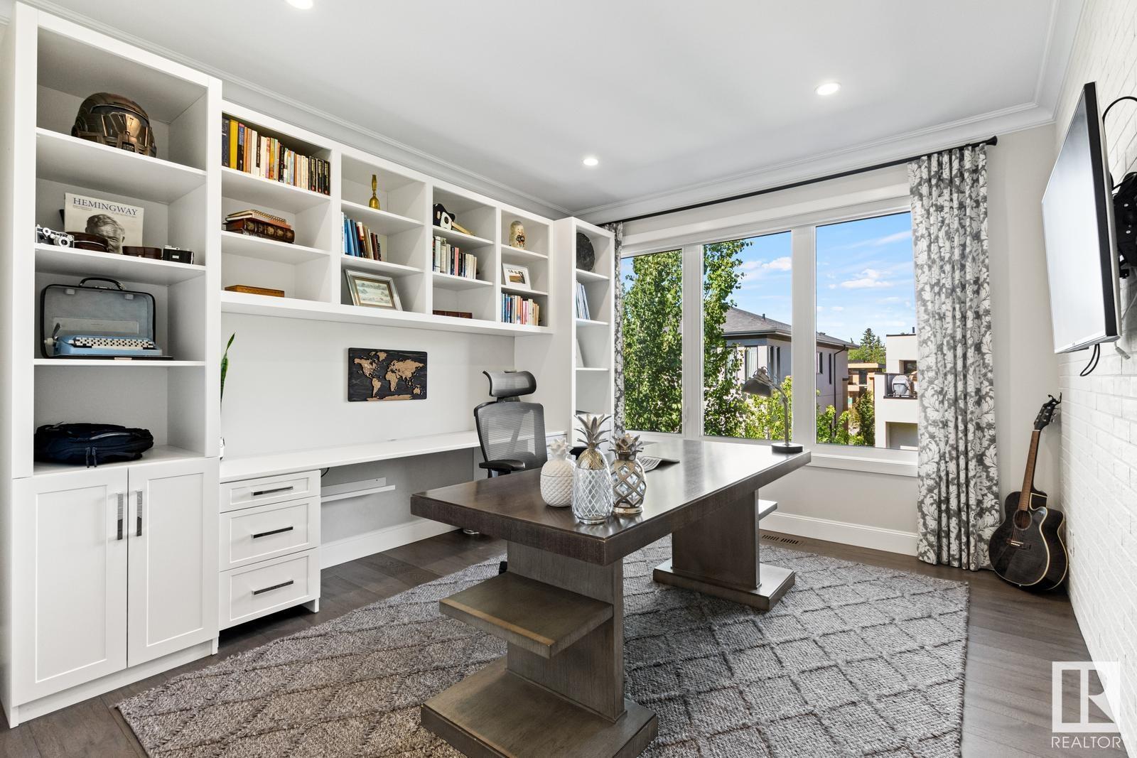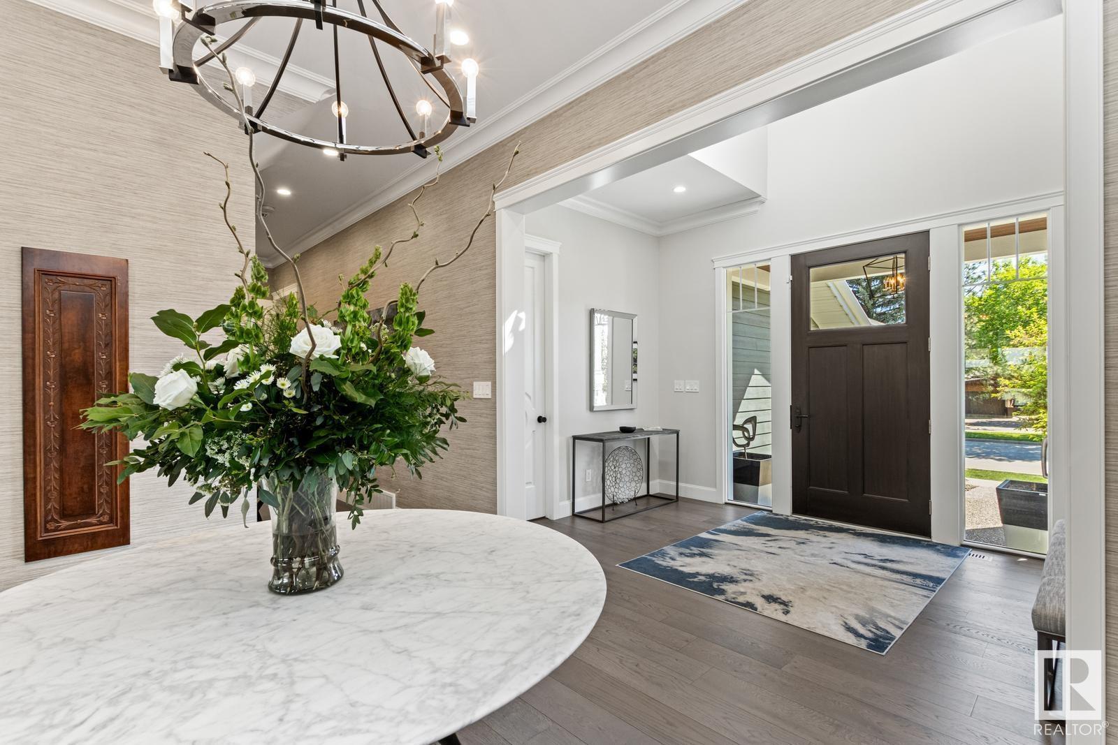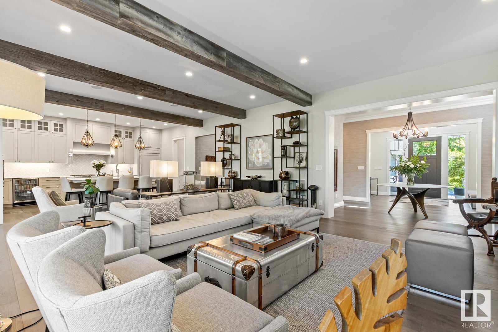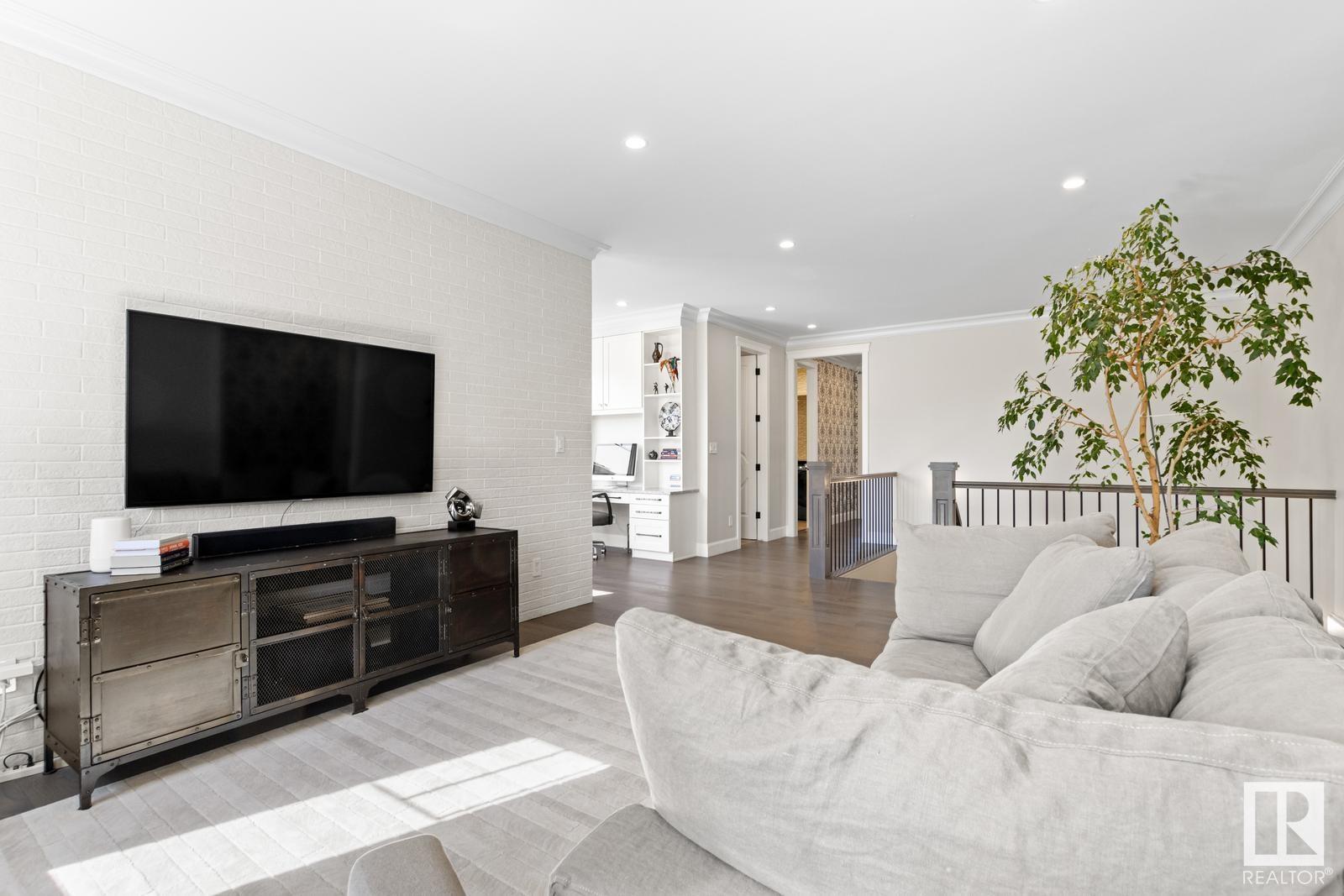 Imagine a place… a beautiful home nestled in one of edmonton’s most peaceful exclusive areas hillcrest point! a modern tight knit community of 15 stunning homes rests on top of the river valley in the mature family neighbourhood of patricia heights. this masterfully crafted home offers over 5300 sq ft of impeccably curated living space. 4 beds(could be 6) - 5 baths. soaring grand foyer greets you! a walk-through closet to a triple over sized dream garage and dog run! heart of the home unfolds in an open-concept great room, brick-facing fireplace, 10 ft ceilings, chef inspired kitchen with built in miele coffee station, wolf gas range, subzero fridge-freezer, wine/beverage fridges, 2 miele dishwashers, butlers & walk-in pantries! upper level offers 3 beds 3 baths incl. sprawling primary with spa-inspired ensuite - his & hers walk-in closets! laundry room, home office, family room with hobby alcove. downstairs bed/bath, recroom with wet bar, gym. out back to your private landscaped oasis…and more! (id:62933)