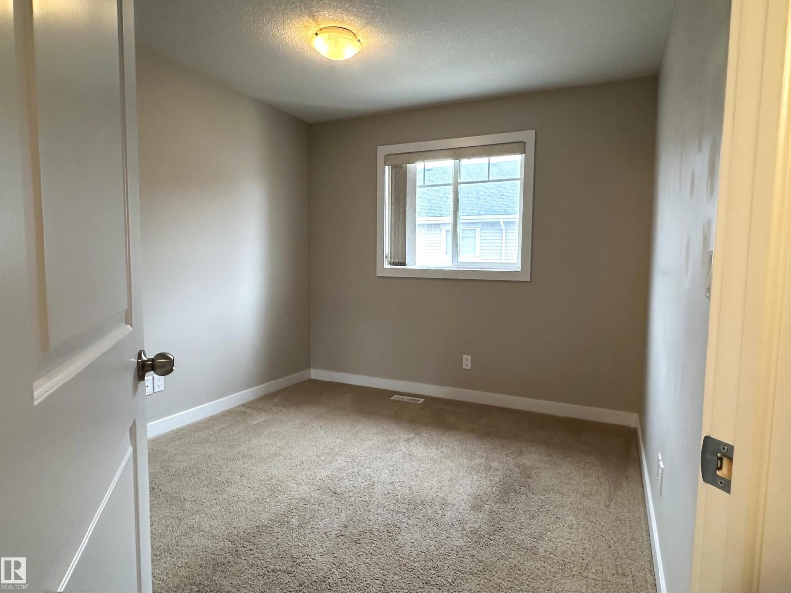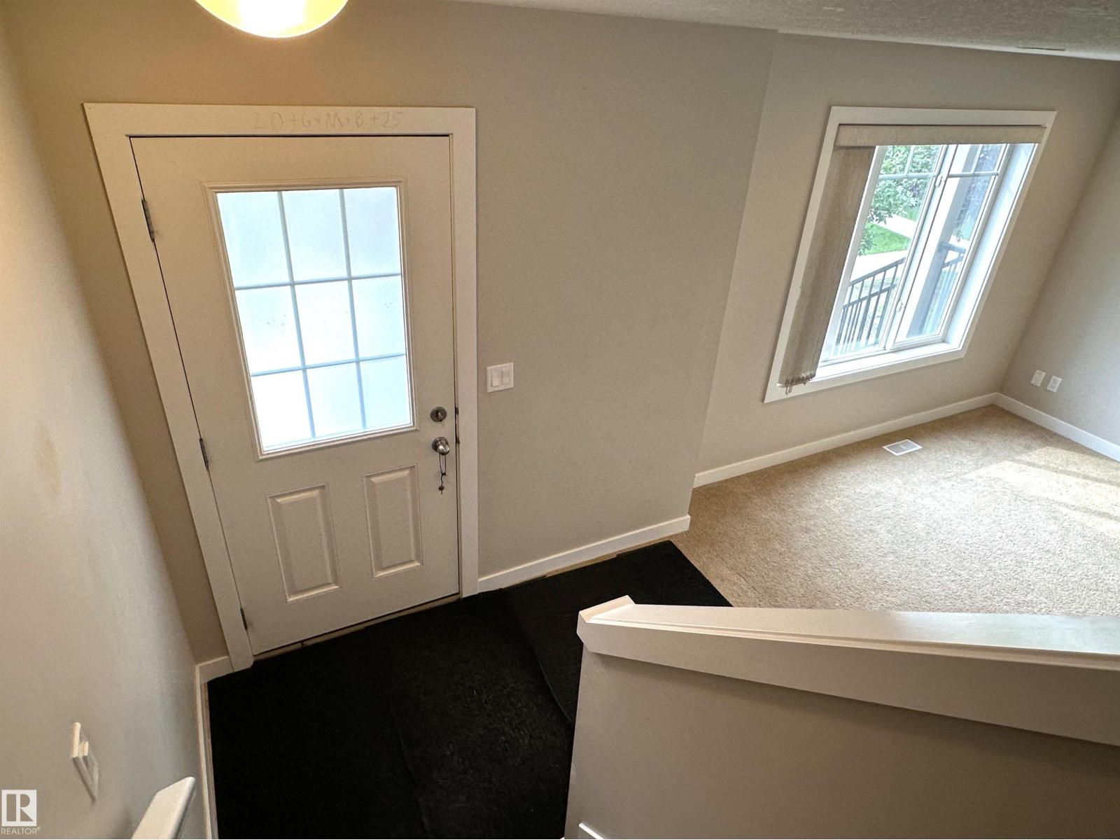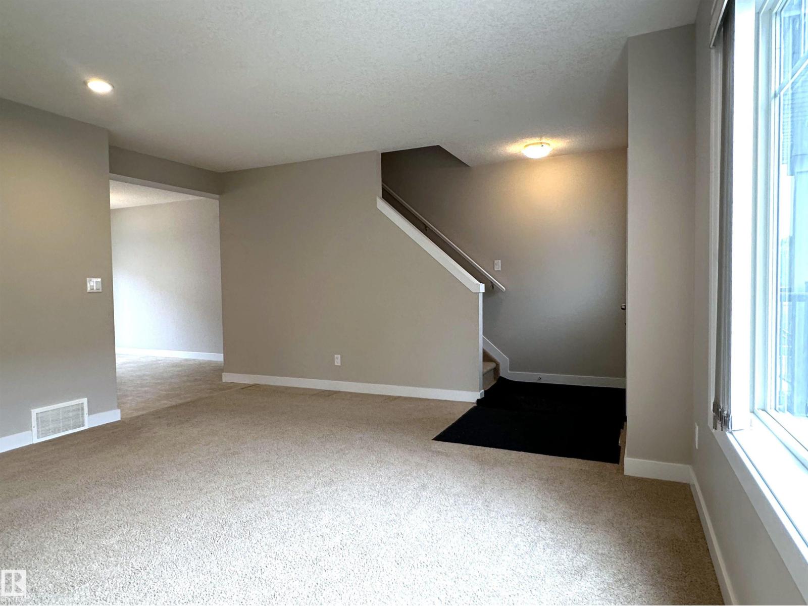 Bright, spacious 2-storey townhome in family-friendly secord! featuring an oversized 19x25 double attached garage (rare for these styles of townhomes!), there’s plenty of room for vehicles, toys, or a workshop. the main floor is filled with natural light and features a south-facing living room, a 2-piece bath, and a smartly designed kitchen with ample cabinet space and breakfast bar. step past the dining area to a 7x20 north-facing balcony with natural gas bbq hook up - perfect for shady summer afternoons. upstairs, the roomy and bright primary bedroom offers a walk-in closet and 3-piece ensuite with step-in shower, along with 2 more spacious bedrooms and a full 4-piece bath. downstairs you will find your own separate furnace and hot water tank, stacked washer and dryer, all in a flexible space that can serve as a large foyer, storage area, or whatever fits your lifestyle. conveniently located just minutes from schools, parks, and the anthony henday, this home is ideal for first-time buyers or investors. (id:62933)