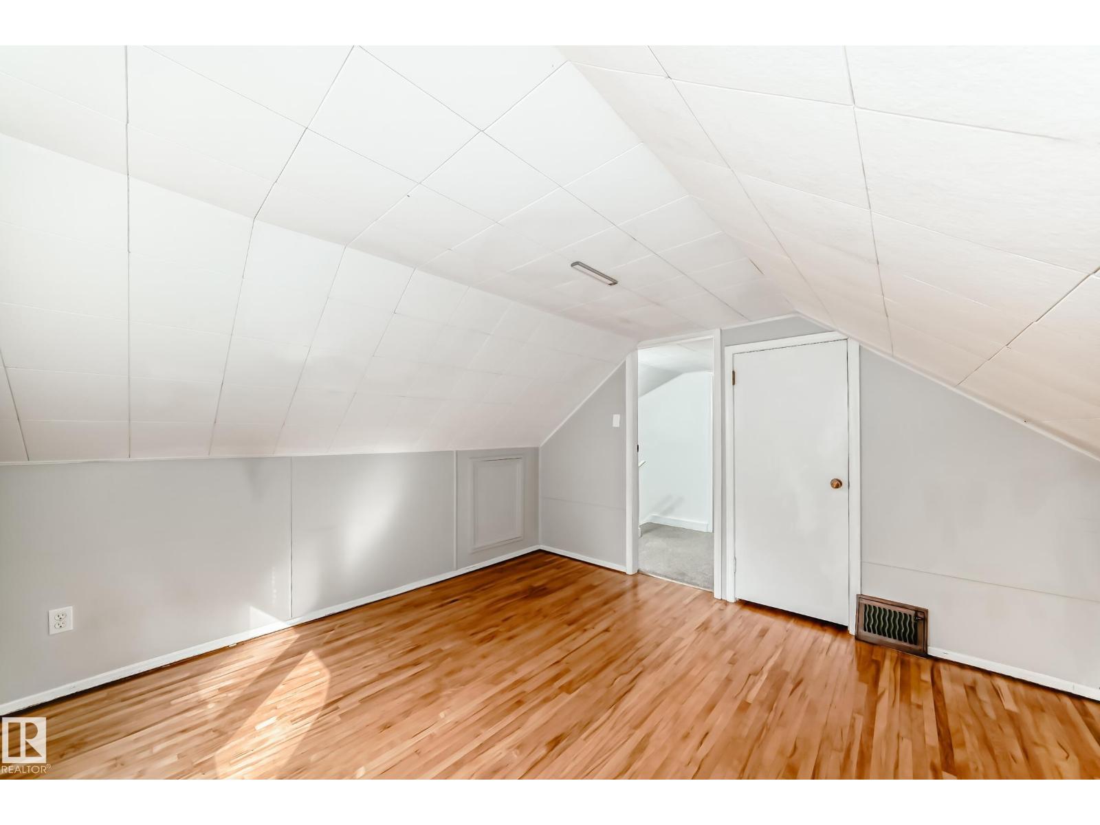 Welcome to this charming home with original hardwood floors and a fantastic westmount location! it features 2 bedrooms, a living room, kitchen and 4 piece bath on the main floor, and 2 more bedrooms upstairs (plenty of room for your family!). in the back there is a large south facing yard for relaxing, gardening or playing, a shed, and lots of room for parking. there is also potential for building a new 2 car garage with a garden suite for future needs. in the basement of the home is a (non legal) 2 bedroom rental suite with 1 full bathroom. the location is very central, with quick access to macewan, downtown, u of a, transit stop (and future lrt), restaurants, shops, cafes, and so many conveniences within walking distance. a terrific family home or investment property. you could also re-develop this property in the future to increase your rental income! welcome home! (id:62933)