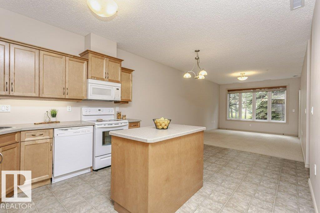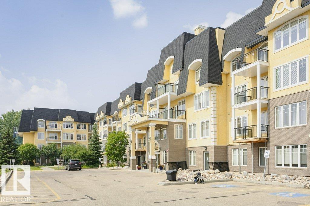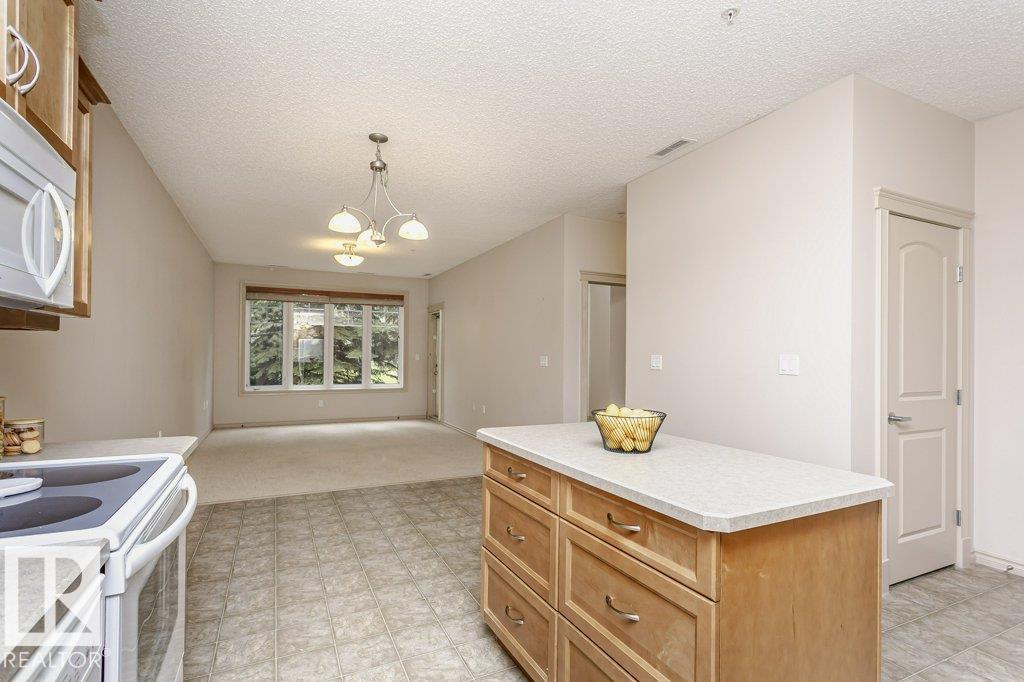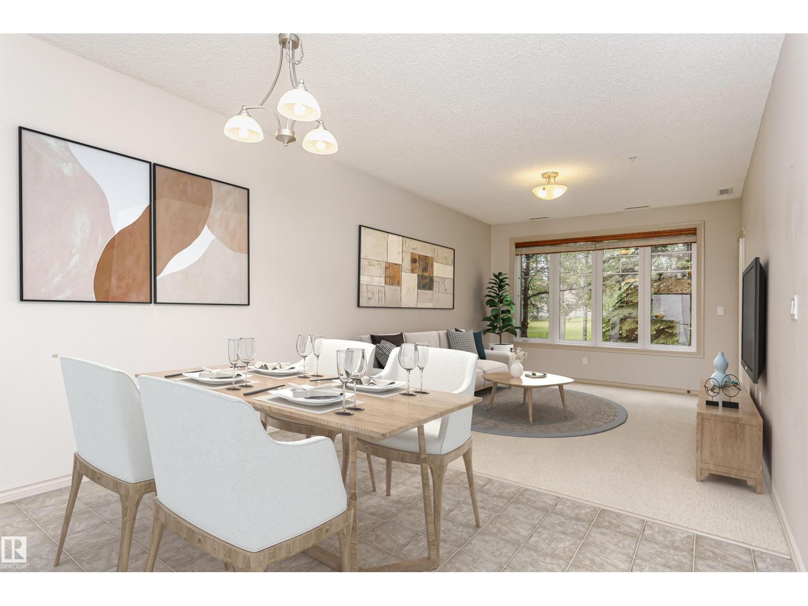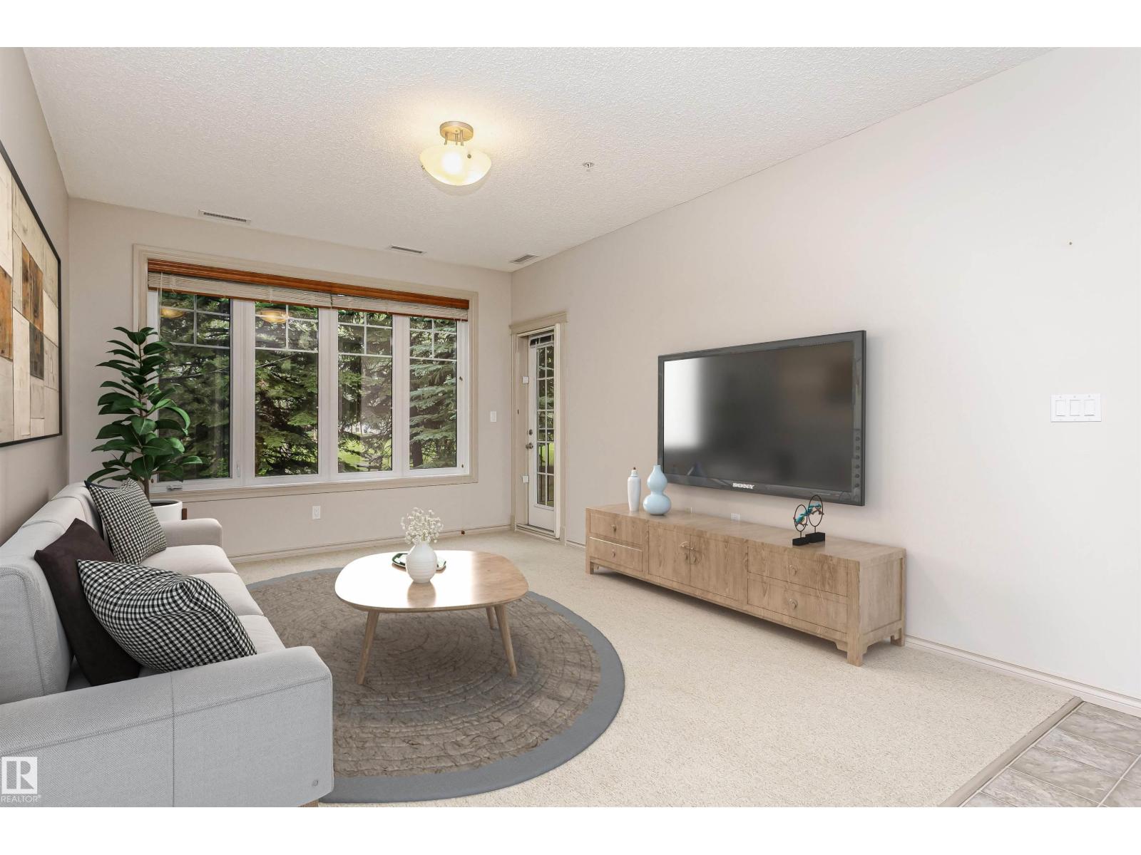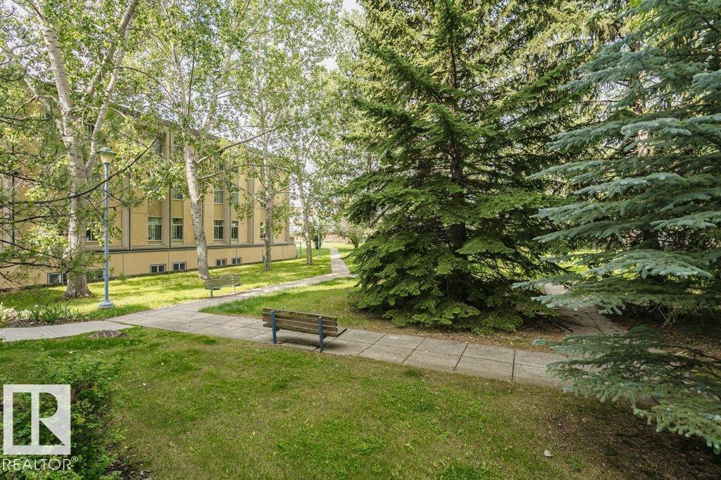 Welcome to the vanier where a vibrant 55+ community and comfort thrive in west edmonton. this bright main-floor garden- facing condo offers 2 bedrooms, 2 baths, and convenient heated underground parking with storage cage (just steps away). highlights include - 9’ ceilings, open-concept layout, park views & abundant natural light throughout. the kitchen has expansive cabinetry, a dedicated pantry, under cabinet lighting, garburator and center island. dedicated dining space and functional living space. the king sized primary suite can accomodate larger furnishings & offers flexibilty of space + a walk-in closet and 3pc ensuite. a second bedroom/den/office and 4pc guest bath. extras include in-suite laundry/ storage room and a private deck overlooking the mature trees. this building offers outstanding amenities: library, exercise room, party room, guest suite, car wash, social areas, shuffleboard and pool tables. located on transit routes and within walking distance to groceries, shops, and medical services. (id:62933)