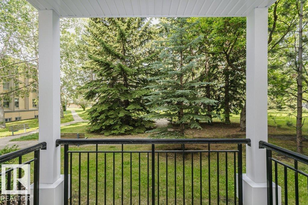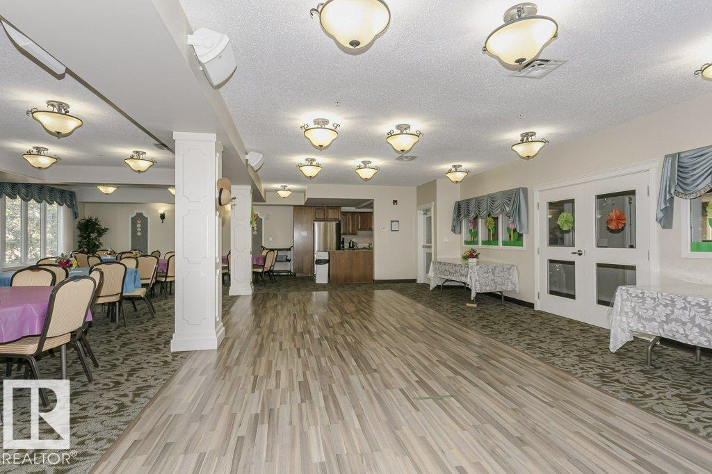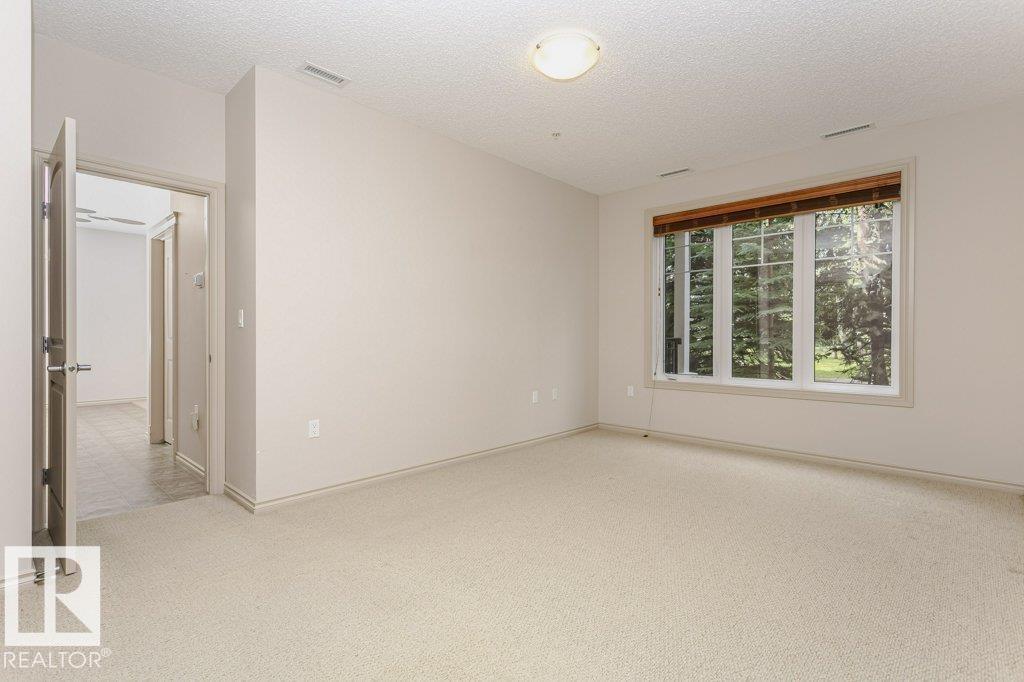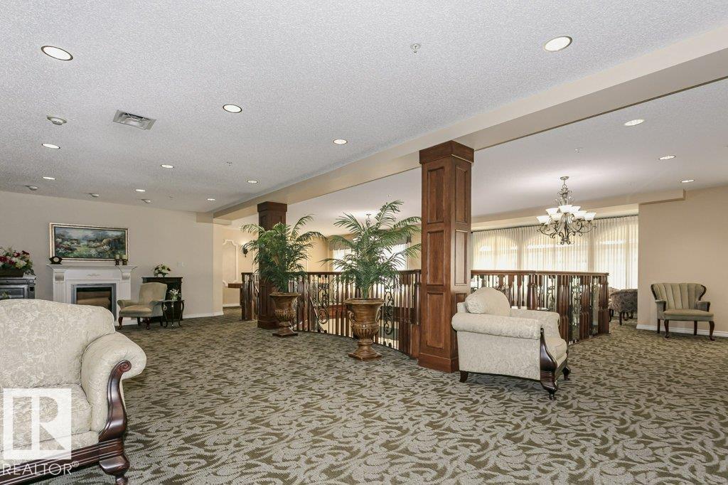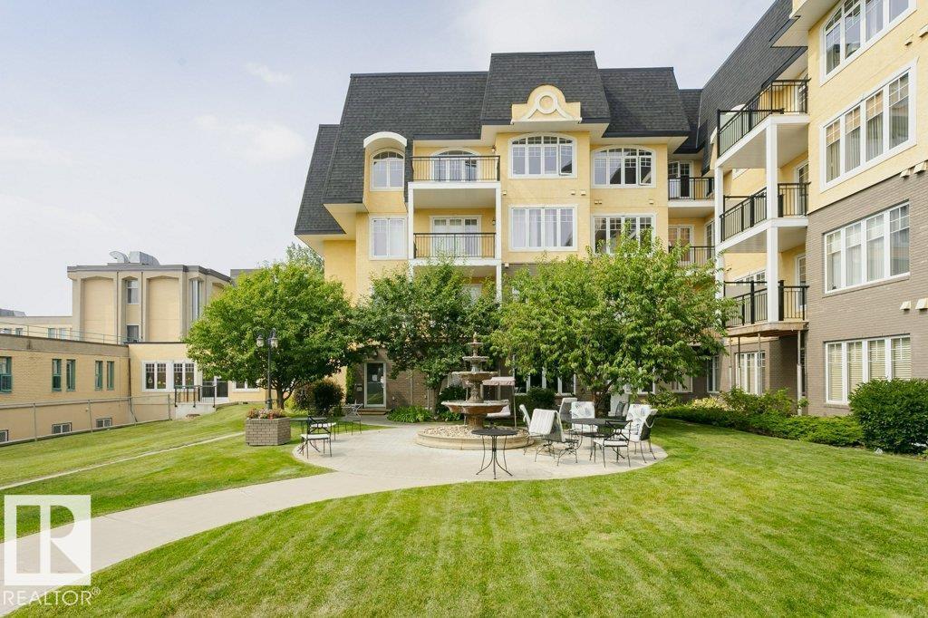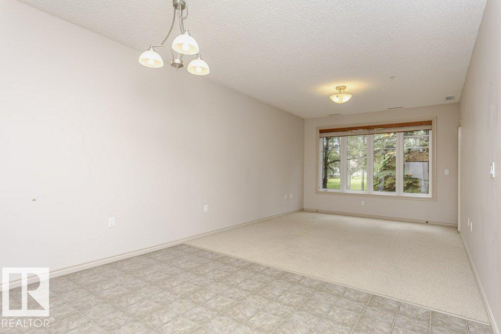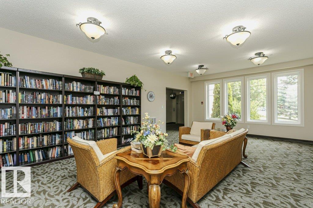 Welcome to the vanier where a vibrant 55+ community and comfort thrive in west edmonton. this bright main-floor garden- facing condo offers 2 bedrooms, 2 baths, and convenient heated underground parking with storage cage (just steps away). highlights include - 9’ ceilings, open-concept layout, park views & abundant natural light throughout. the kitchen has expansive cabinetry, a dedicated pantry, under cabinet lighting, garburator and center island. dedicated dining space and functional living space. the king sized primary suite can accomodate larger furnishings & offers flexibilty of space + a walk-in closet and 3pc ensuite. a second bedroom/den/office and 4pc guest bath. extras include in-suite laundry/ storage room and a private deck overlooking the mature trees. this building offers outstanding amenities: library, exercise room, party room, guest suite, car wash, social areas, shuffleboard and pool tables. located on transit routes and within walking distance to groceries, shops, and medical services. (id:62933)