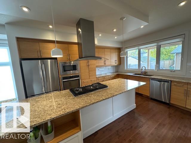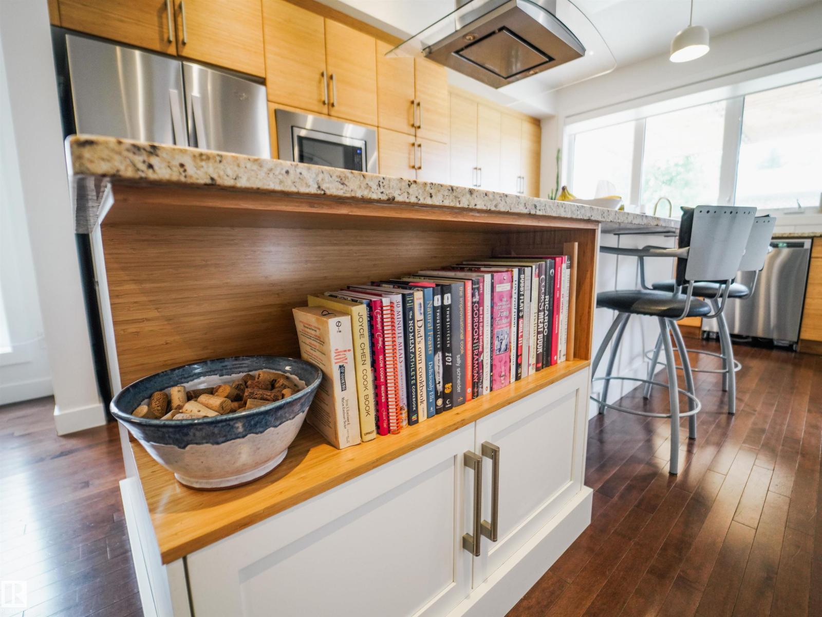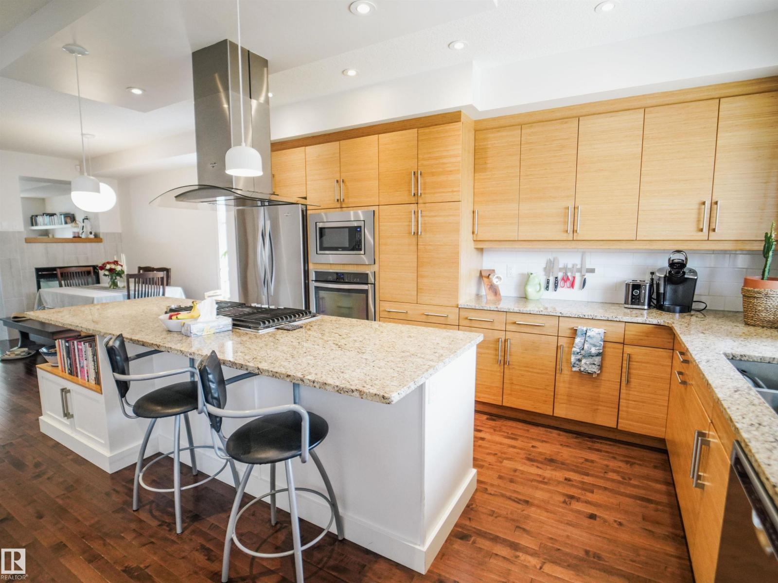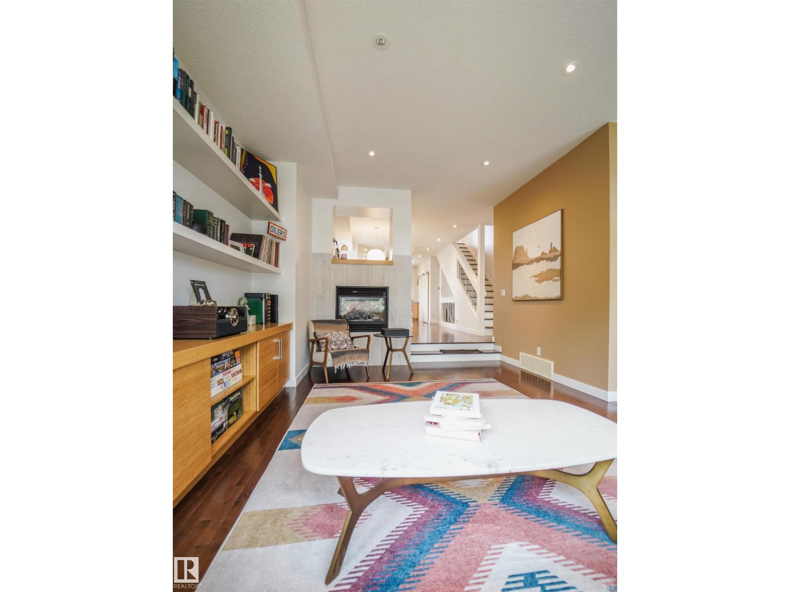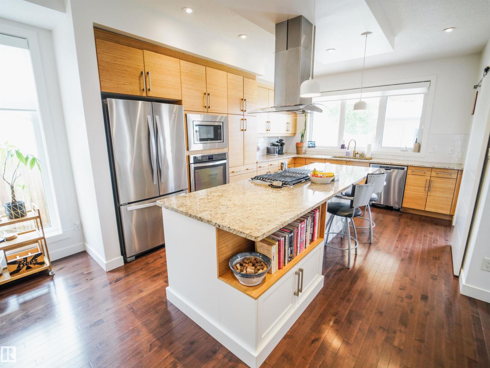 Beautiful home in westmount welcomes you! this custom-built executive home offers over 2,800 sq. feet of luxurious living space. with a total of 4 specious bedrooms and 3.5 bathrooms, this home is designed for comfort and elegance. the main floor boasts a bright, open, layout with soaring 10ft ceilings throughout, rich hardwood floors, and a modern bamboo chef's kitchen, featuring a gas range stove, quartz countertops, and ample cabinetry. a cozy fireplace anchors the living and dining rooms, along with a well placed half-bath. upstairs you will find 3 large bedrooms and two full bathrooms. the master bedroom has a spa-like ensuite and walk-through closet. on top of the home is patio with nice view.the professionally fully finished basement offers an additional bedroom, full bath, and large rec room. the west-facing backyard is complete with a covered deck, and lush greenery, perfect for relaxing with family. located on a tree-lined street in sought-after westmount, close to schools, shopping, parks. (id:62933)