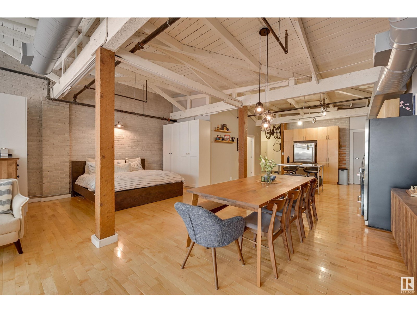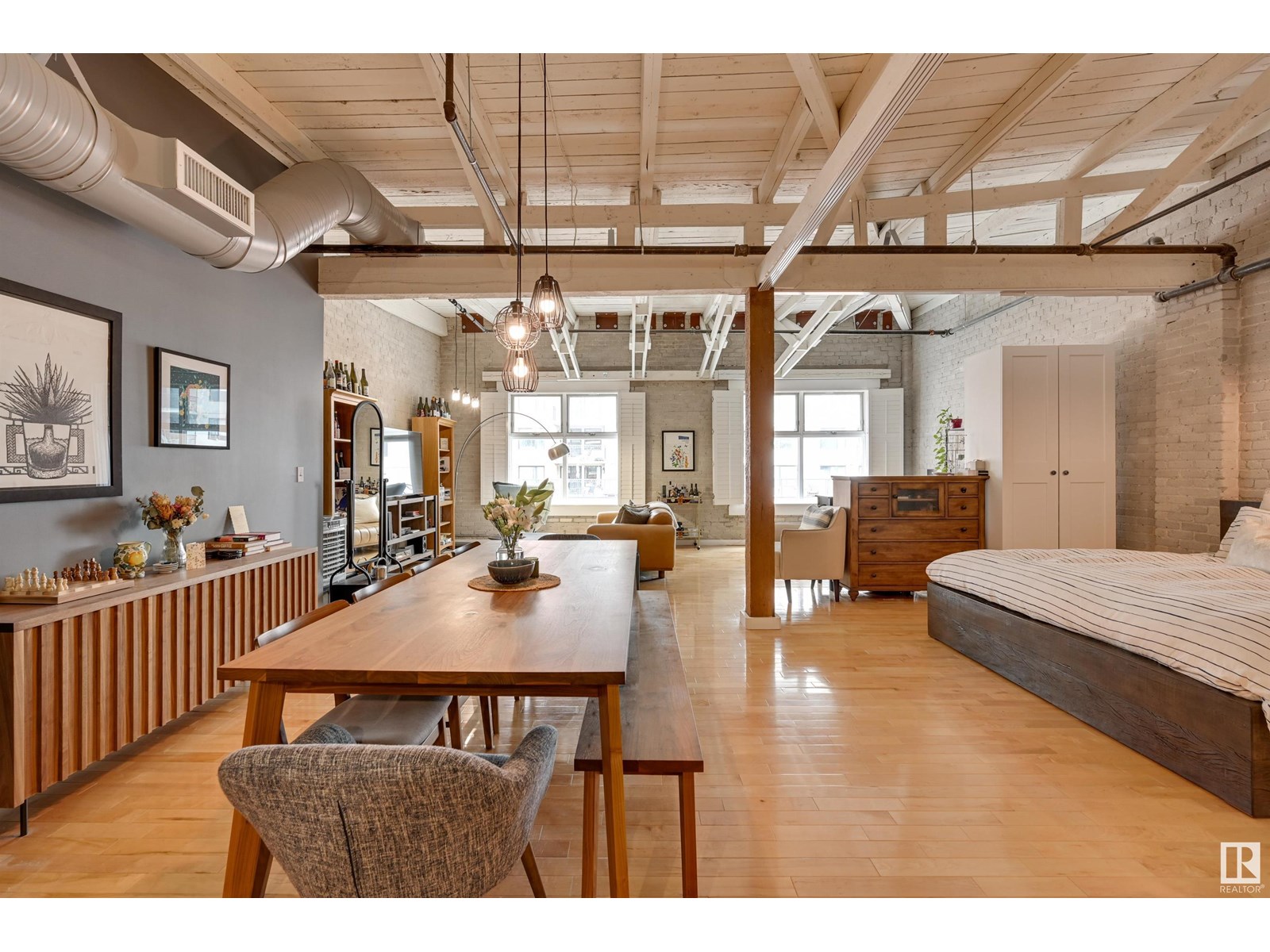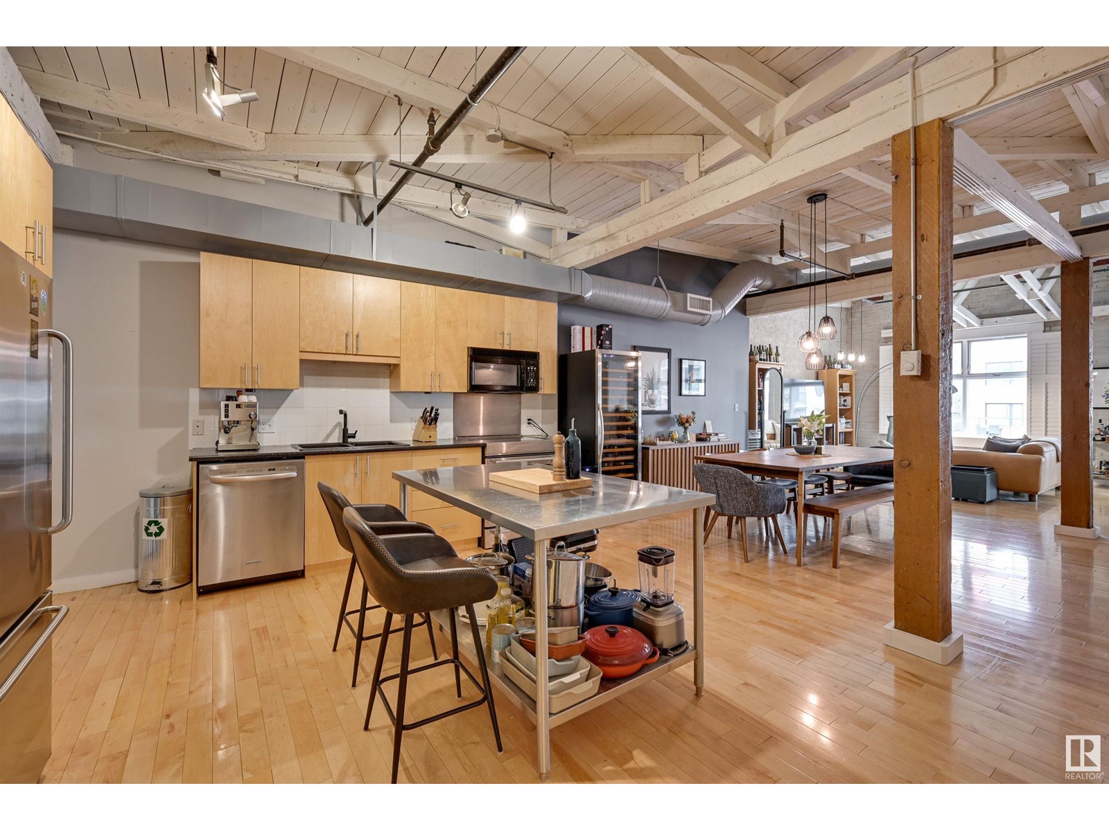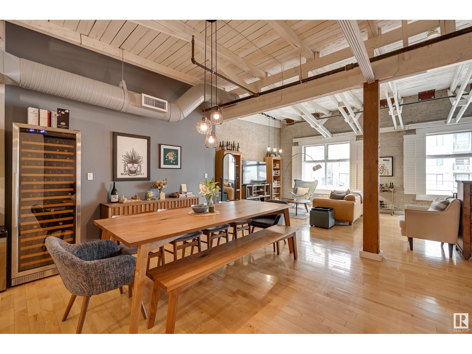 Penthouse unit in one of edmonton’s most iconic buildings: phillips lofts! located in the heart of downtown on the always-vibrant 104th street promenade, this loft delivers the ultimate urban lifestyle—just steps from trendy bars, top restaurants, local markets, and the ice district. this one-of-a-kind space features a private elevator entrance, open beam raised ceilings, and huge west-facing windows offering views of 104th and beyond. the expansive open-concept layout is perfect for entertaining, and the updated bathroom adds a touch of modern luxury. the open concept kitchen features a large stainless steel island, a generous amount of cabinetry and is open to a spacious dining area. the sprawling living room is a great place to curl up and watch a move - with space left over for an office! stylish, spacious, and set in one of edmonton’s most desirable downtown locations—this loft is not to be missed. in-suite laundry, roof top patio access with sweeping downtown view and underground parking included! (id:62933)