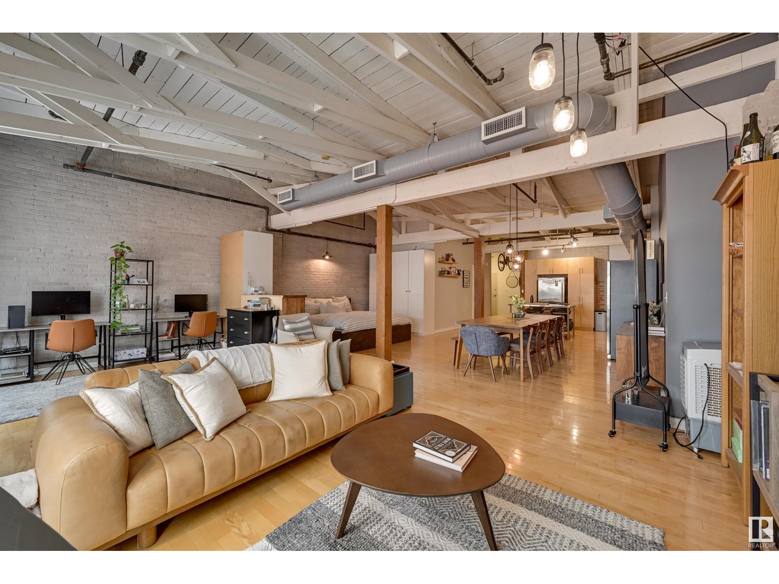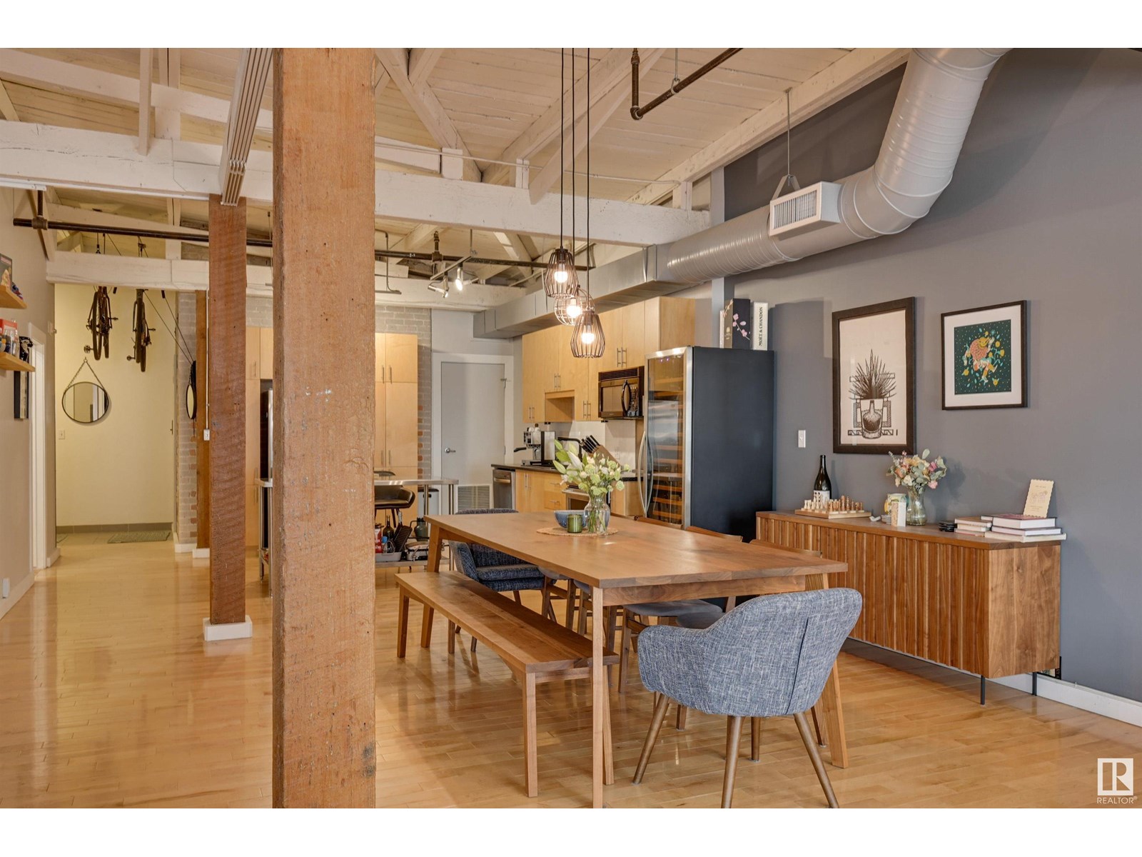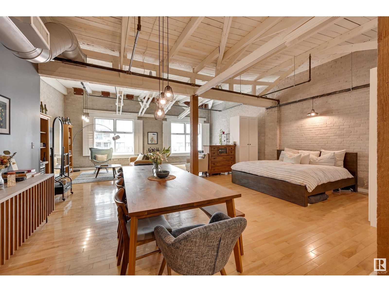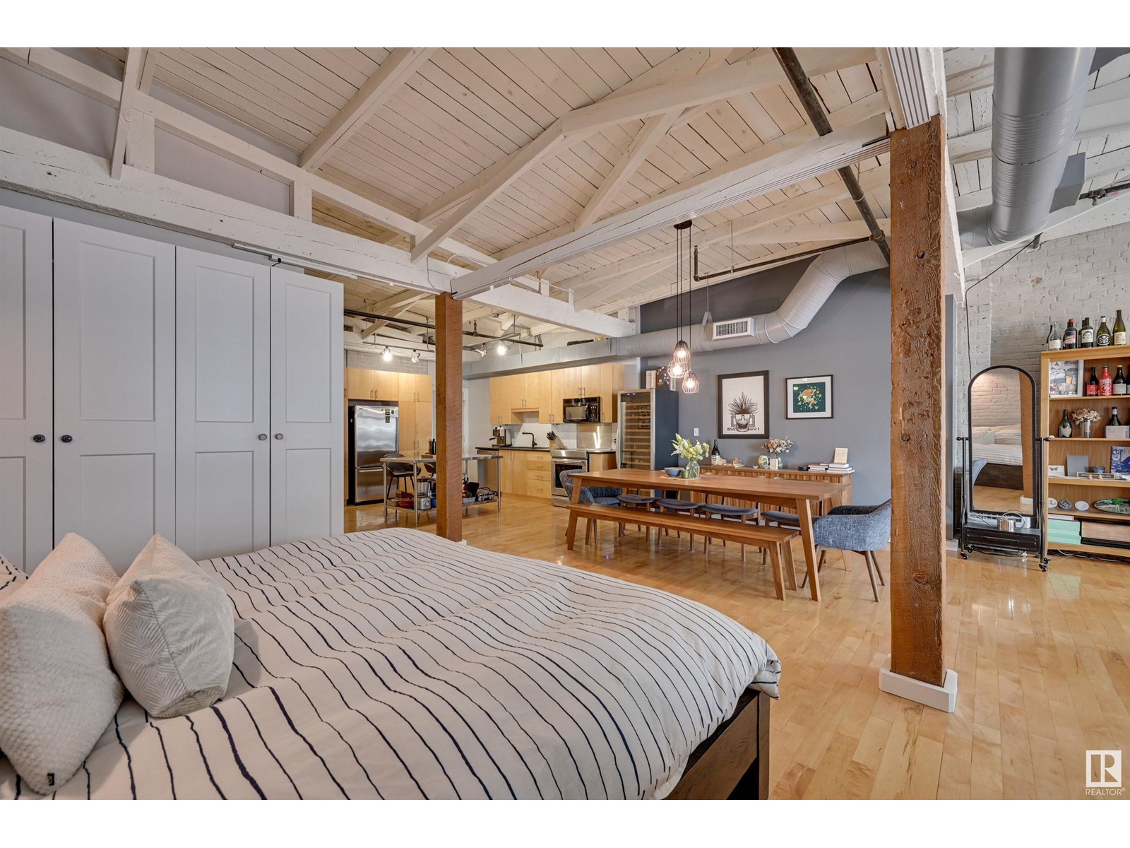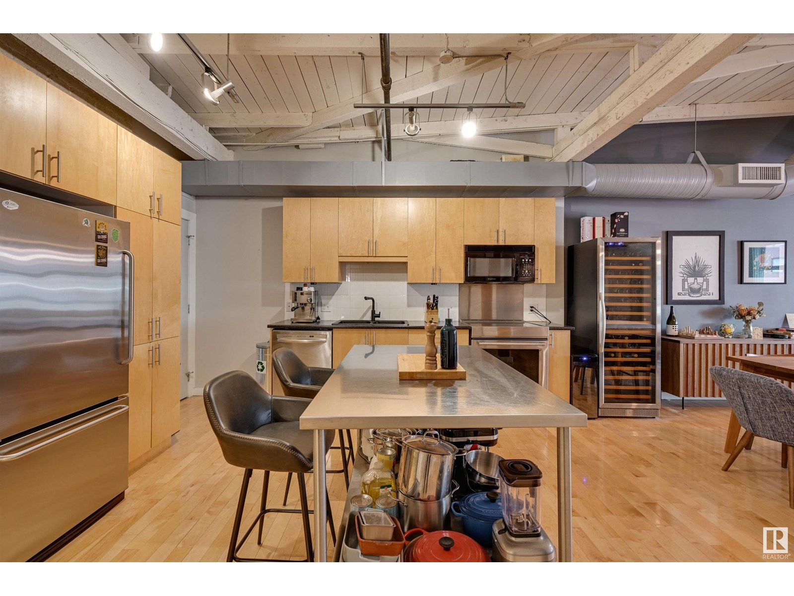 Penthouse unit in one of edmonton’s most iconic buildings: phillips lofts! located in the heart of downtown on the always-vibrant 104th street promenade, this loft delivers the ultimate urban lifestyle—just steps from trendy bars, top restaurants, local markets, and the ice district. this one-of-a-kind space features a private elevator entrance, open beam raised ceilings, and huge west-facing windows offering views of 104th and beyond. the expansive open-concept layout is perfect for entertaining, and the updated bathroom adds a touch of modern luxury. the open concept kitchen features a large stainless steel island, a generous amount of cabinetry and is open to a spacious dining area. the sprawling living room is a great place to curl up and watch a move - with space left over for an office! stylish, spacious, and set in one of edmonton’s most desirable downtown locations—this loft is not to be missed. in-suite laundry, roof top patio access with sweeping downtown view and underground parking included! (id:62933)