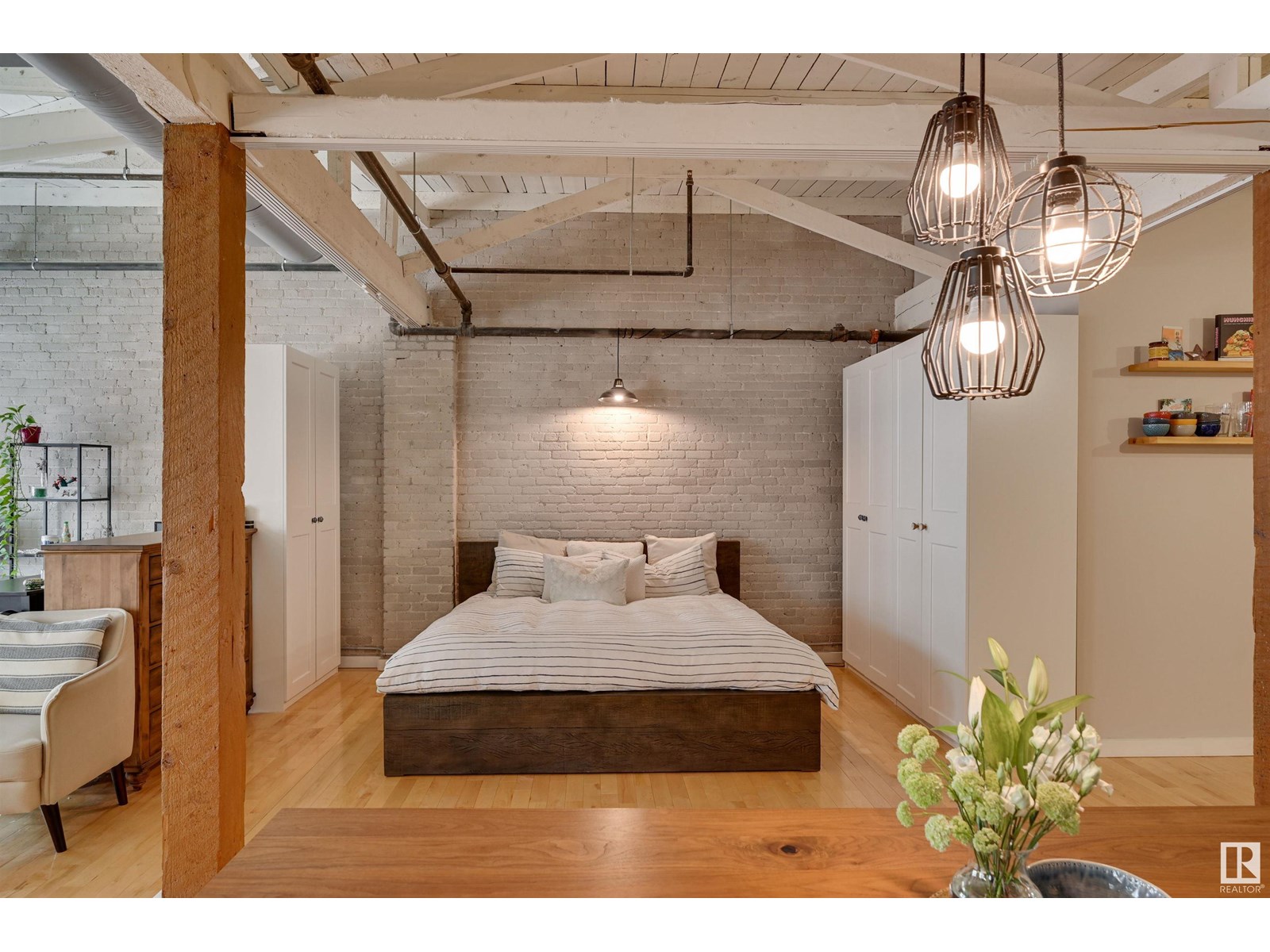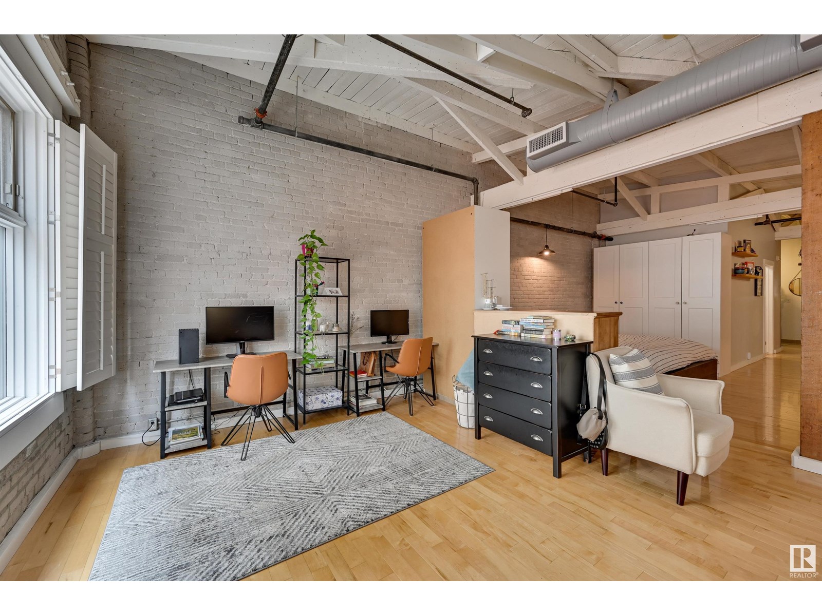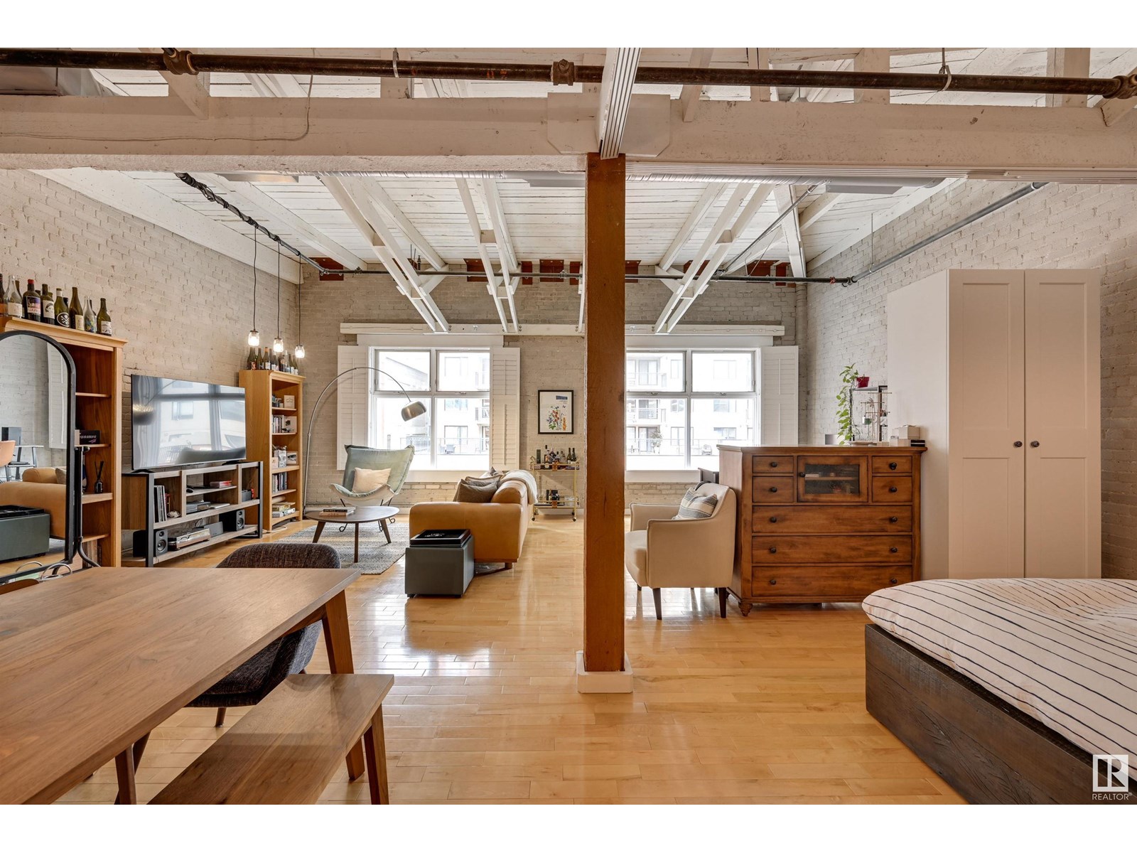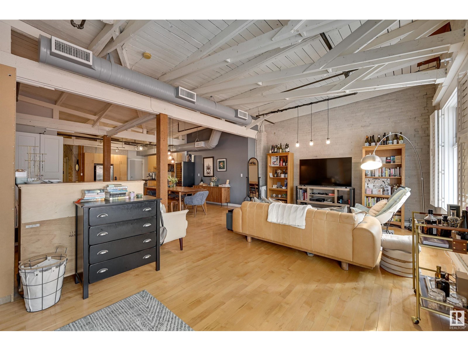 Penthouse unit in one of edmonton’s most iconic buildings: phillips lofts! located in the heart of downtown on the always-vibrant 104th street promenade, this loft delivers the ultimate urban lifestyle—just steps from trendy bars, top restaurants, local markets, and the ice district. this one-of-a-kind space features a private elevator entrance, open beam raised ceilings, and huge west-facing windows offering views of 104th and beyond. the expansive open-concept layout is perfect for entertaining, and the updated bathroom adds a touch of modern luxury. the open concept kitchen features a large stainless steel island, a generous amount of cabinetry and is open to a spacious dining area. the sprawling living room is a great place to curl up and watch a move - with space left over for an office! stylish, spacious, and set in one of edmonton’s most desirable downtown locations—this loft is not to be missed. in-suite laundry, roof top patio access with sweeping downtown view and underground parking included! (id:62933)