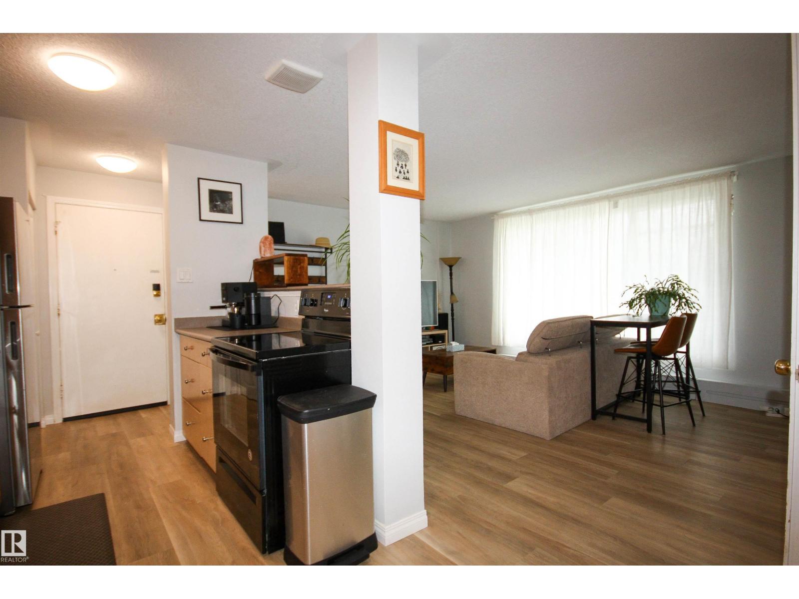 Unbeatable location in this 2-bdrm, 1-bath condo in the vibrant community of 124 st, near nait, royal alex hospital, and macewan university. excellent layout: the open gallery-style kitchen connects to a spacious living room with brand new laminate flooring, complemented by extra-large windows that flood the space with natural light. the second bdrm has french doors, enhancing versatility for entertaining or relaxation. brand new plush carpet in the master, strategically located next to the upgraded bath for ultimate privacy. the entire unit is freshly painted in modern neutral hues with all appliances < 1 yr old. in-suite laundry and a large storage room for a clutter free lifestyle. with no pet restrictions and main-floor covered patio access, outdoor enjoyment is a breeze. the exterior has new balconies, windows, patio doors, siding, roof, and weeping tile. steps away from art galleries, indie coffee houses, and fabulous eateries, here is your chance at affordable urban living or a rental investment! (id:62933)