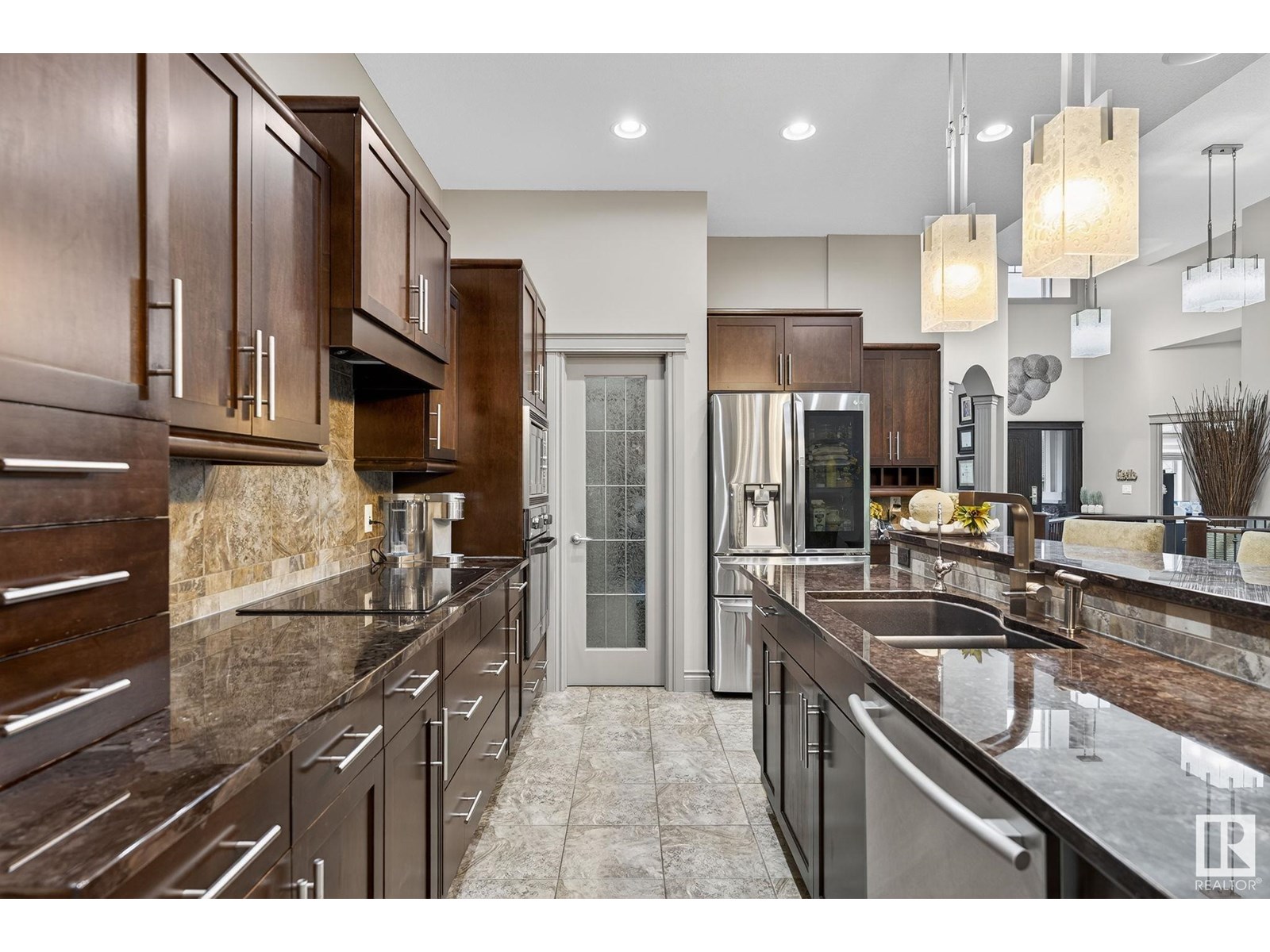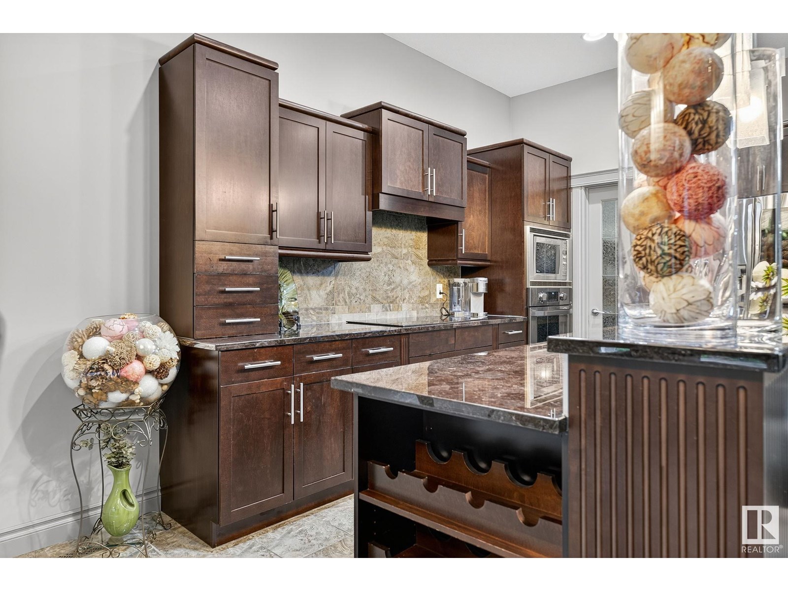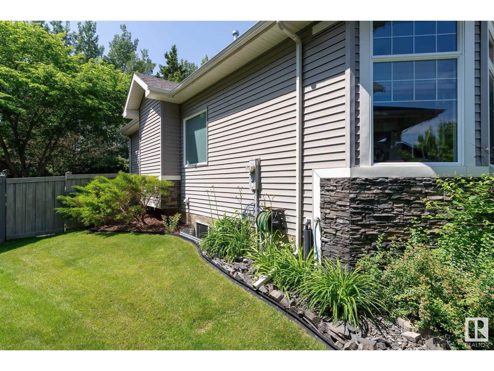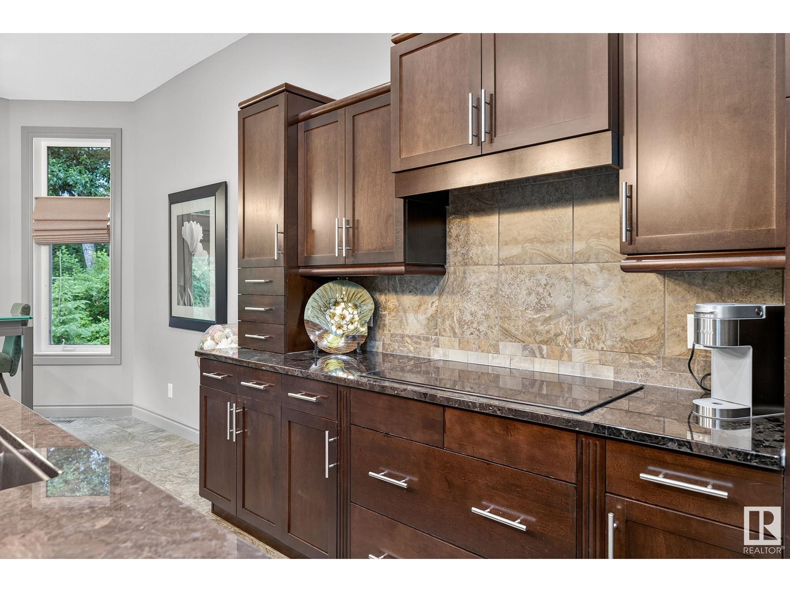 Rare executive bungalow backing a densely treed walking path in prestigious copperwood! this immaculate home boasts over 3200 sq ft of living space with 3 bedrooms & 2.5 baths. the upgraded finishes include a custom 42” wide oak front door, rich cappuccino cabinets, gleaming espresso hardwood floors, granite counters, 9 & 14 ft ceilings, gas fireplace,& california custom closet in the primary bedroom. the kitchen has extra deep sink, filtered drinking tap, stainless steel appliances & walk through pantry. you’ll enjoy the deep soaker tub in the primary bedroom and all bedrooms have walk in closets. the basement features 2 bedrooms, wet bar, bathroom and a large hobby room that could be used as a 4th bedroom. the back yard is a private oasis backing onto a treed pathway with composite deck & underground sprinklers. the garage is oversized, drywalled and insulated with epoxy floors and gas line plumbed in. great location close to walking trails, good schools and retail, don’t’ miss out on this elegant home! (id:62933)