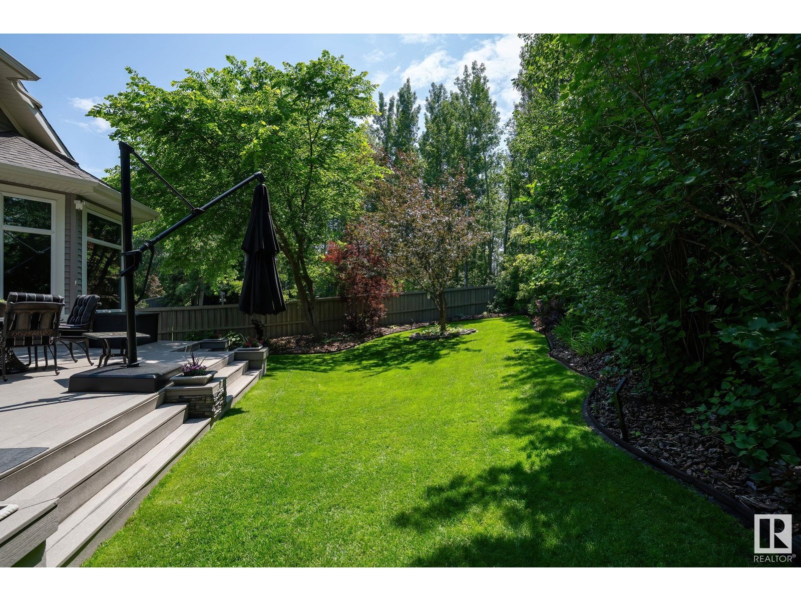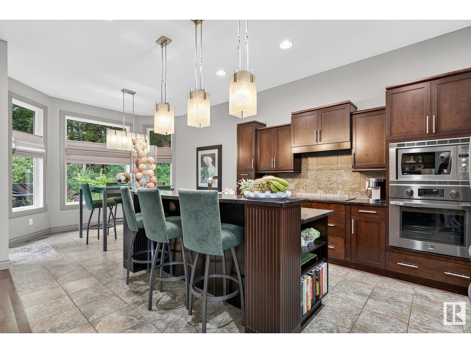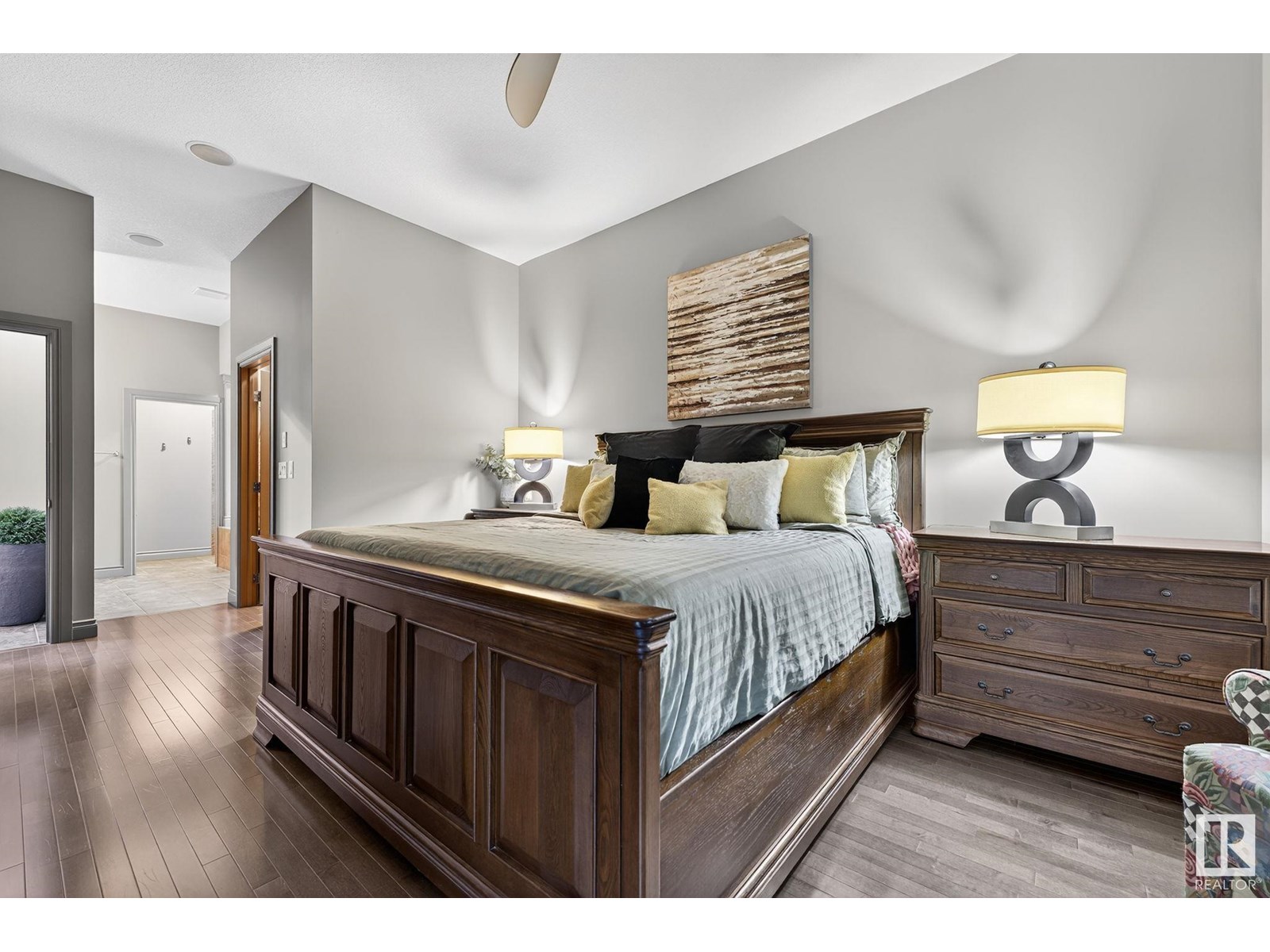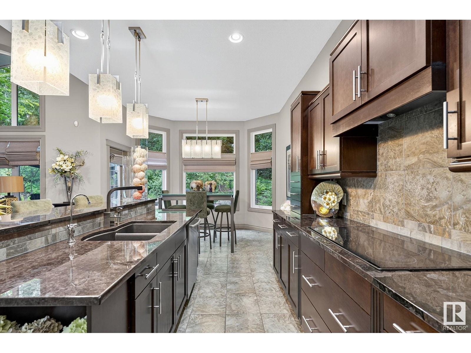 Rare executive bungalow backing a densely treed walking path in prestigious copperwood! this immaculate home boasts over 3200 sq ft of living space with 3 bedrooms & 2.5 baths. the upgraded finishes include a custom 42” wide oak front door, rich cappuccino cabinets, gleaming espresso hardwood floors, granite counters, 9 & 14 ft ceilings, gas fireplace,& california custom closet in the primary bedroom. the kitchen has extra deep sink, filtered drinking tap, stainless steel appliances & walk through pantry. you’ll enjoy the deep soaker tub in the primary bedroom and all bedrooms have walk in closets. the basement features 2 bedrooms, wet bar, bathroom and a large hobby room that could be used as a 4th bedroom. the back yard is a private oasis backing onto a treed pathway with composite deck & underground sprinklers. the garage is oversized, drywalled and insulated with epoxy floors and gas line plumbed in. great location close to walking trails, good schools and retail, don’t’ miss out on this elegant home! (id:62933)