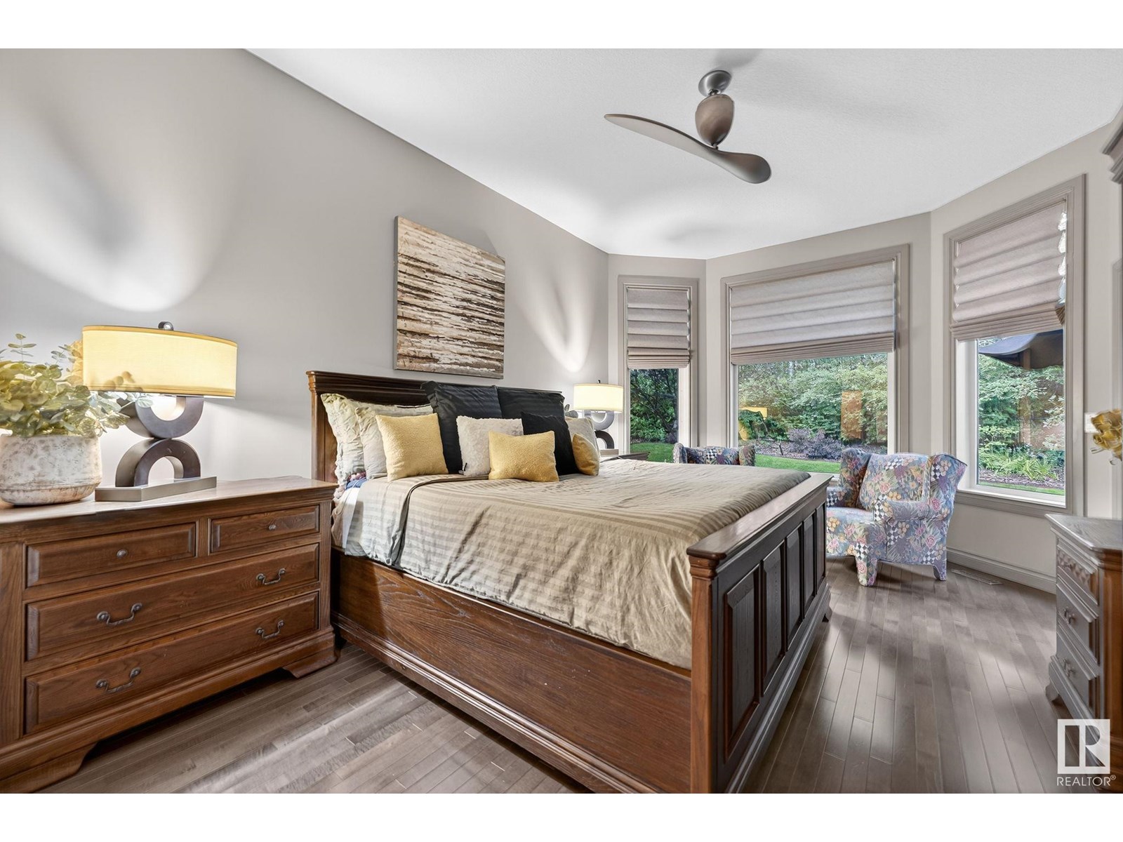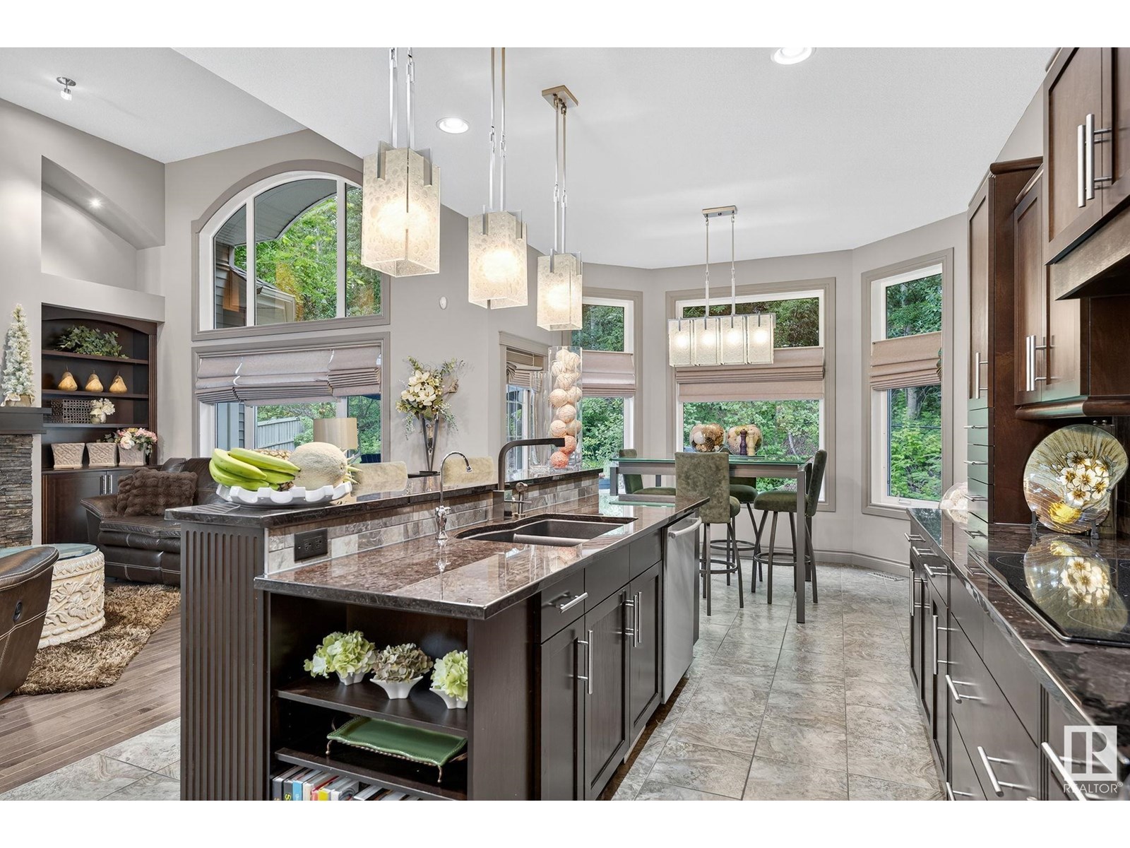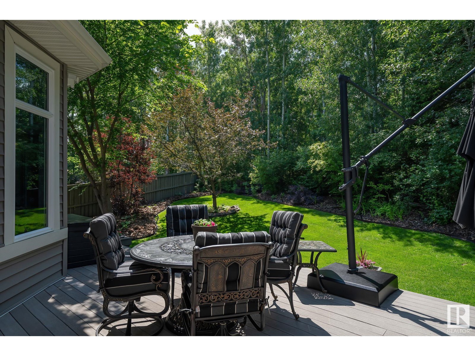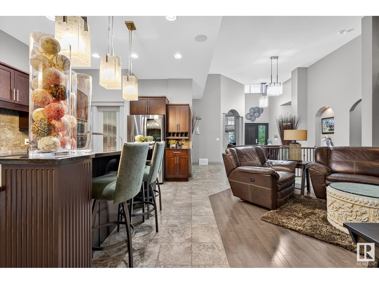 Rare executive bungalow backing a densely treed walking path in prestigious copperwood! this immaculate home boasts over 3200 sq ft of living space with 3 bedrooms & 2.5 baths. the upgraded finishes include a custom 42” wide oak front door, rich cappuccino cabinets, gleaming espresso hardwood floors, granite counters, 9 & 14 ft ceilings, gas fireplace,& california custom closet in the primary bedroom. the kitchen has extra deep sink, filtered drinking tap, stainless steel appliances & walk through pantry. you’ll enjoy the deep soaker tub in the primary bedroom and all bedrooms have walk in closets. the basement features 2 bedrooms, wet bar, bathroom and a large hobby room that could be used as a 4th bedroom. the back yard is a private oasis backing onto a treed pathway with composite deck & underground sprinklers. the garage is oversized, drywalled and insulated with epoxy floors and gas line plumbed in. great location close to walking trails, good schools and retail, don’t’ miss out on this elegant home! (id:62933)