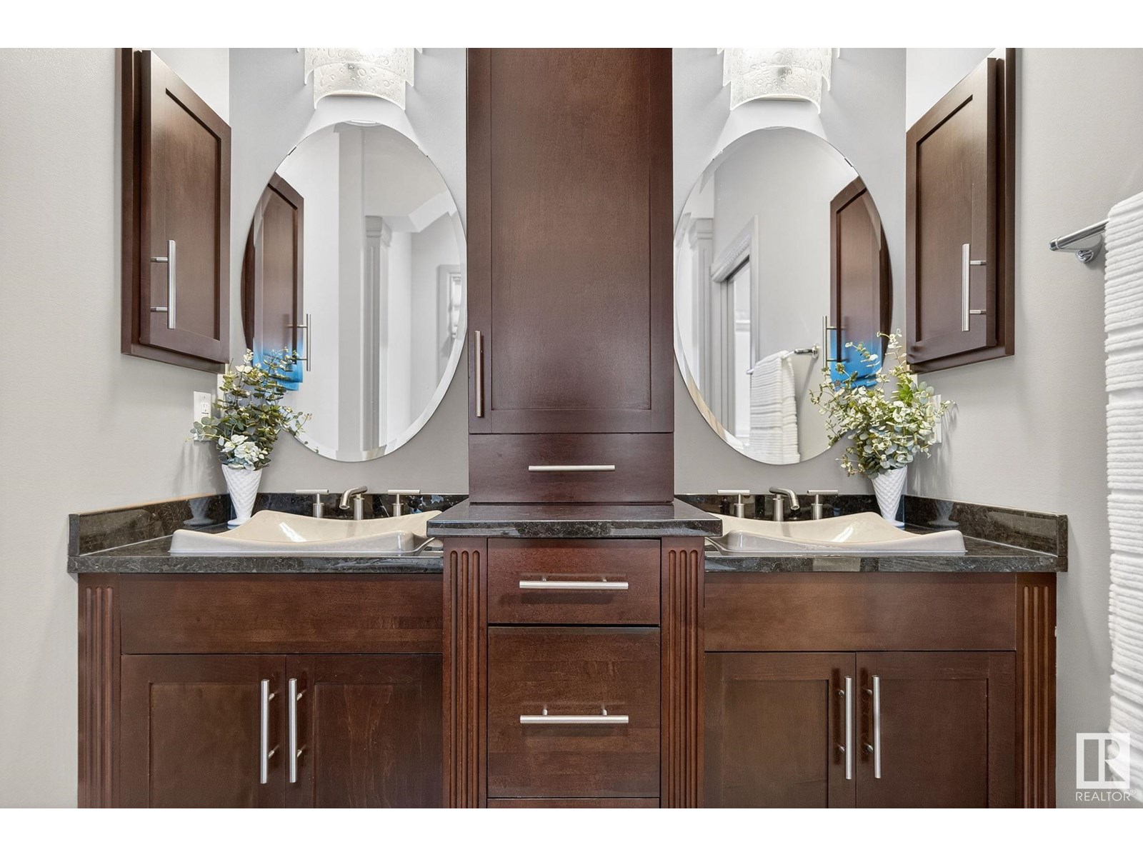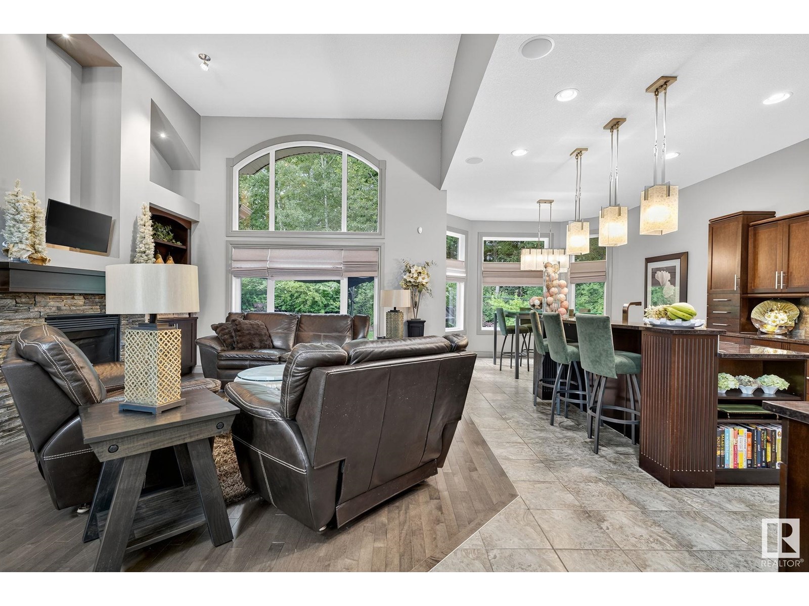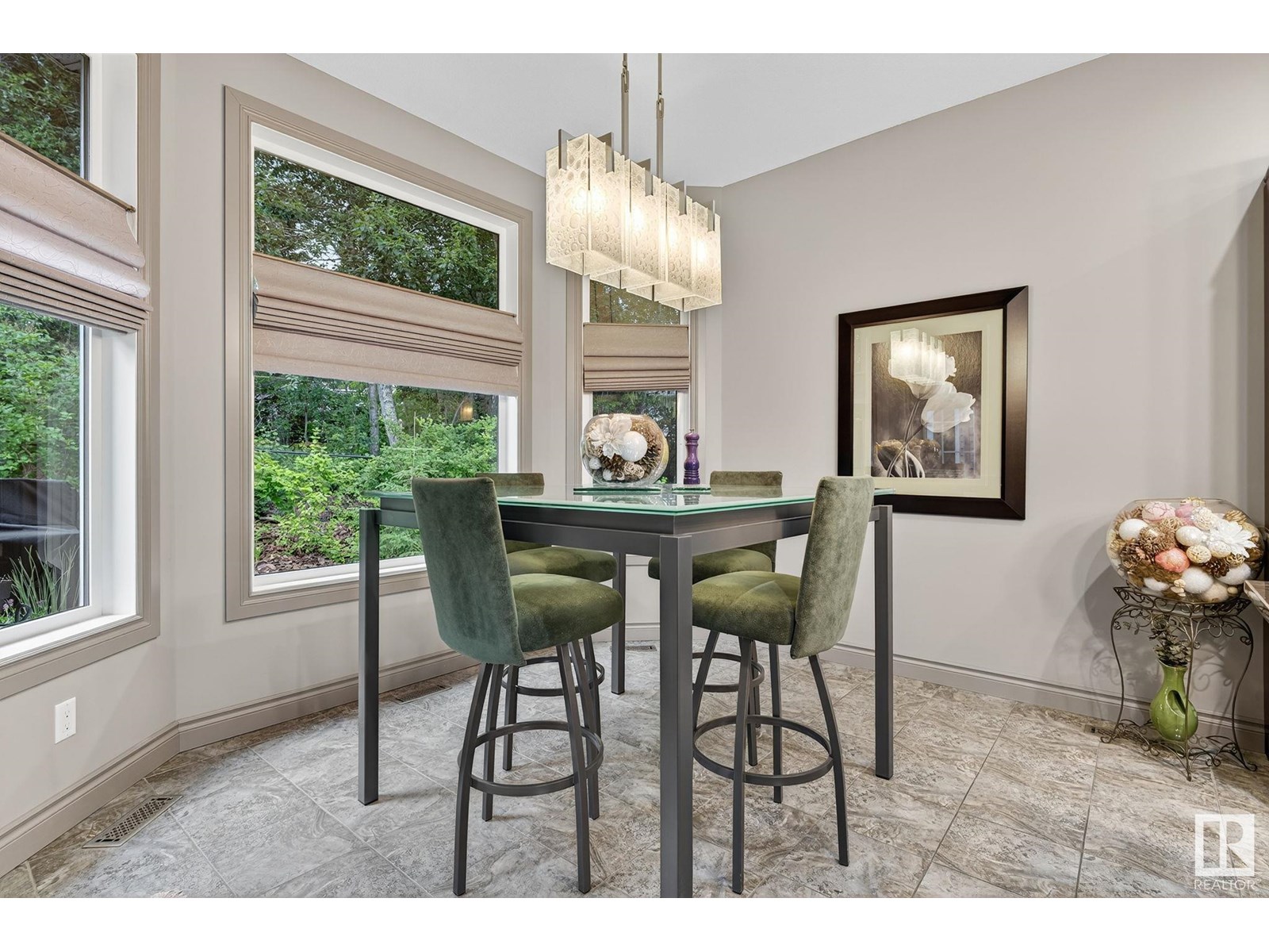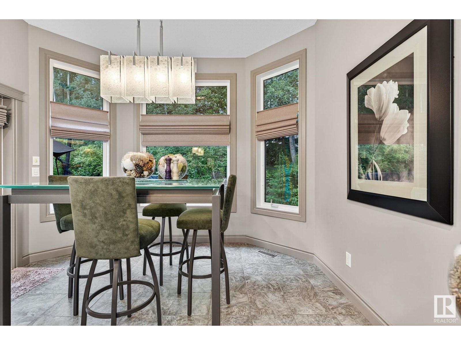 Rare executive bungalow backing a densely treed walking path in prestigious copperwood! this immaculate home boasts over 3200 sq ft of living space with 3 bedrooms & 2.5 baths. the upgraded finishes include a custom 42” wide oak front door, rich cappuccino cabinets, gleaming espresso hardwood floors, granite counters, 9 & 14 ft ceilings, gas fireplace,& california custom closet in the primary bedroom. the kitchen has extra deep sink, filtered drinking tap, stainless steel appliances & walk through pantry. you’ll enjoy the deep soaker tub in the primary bedroom and all bedrooms have walk in closets. the basement features 2 bedrooms, wet bar, bathroom and a large hobby room that could be used as a 4th bedroom. the back yard is a private oasis backing onto a treed pathway with composite deck & underground sprinklers. the garage is oversized, drywalled and insulated with epoxy floors and gas line plumbed in. great location close to walking trails, good schools and retail, don’t’ miss out on this elegant home! (id:62933)