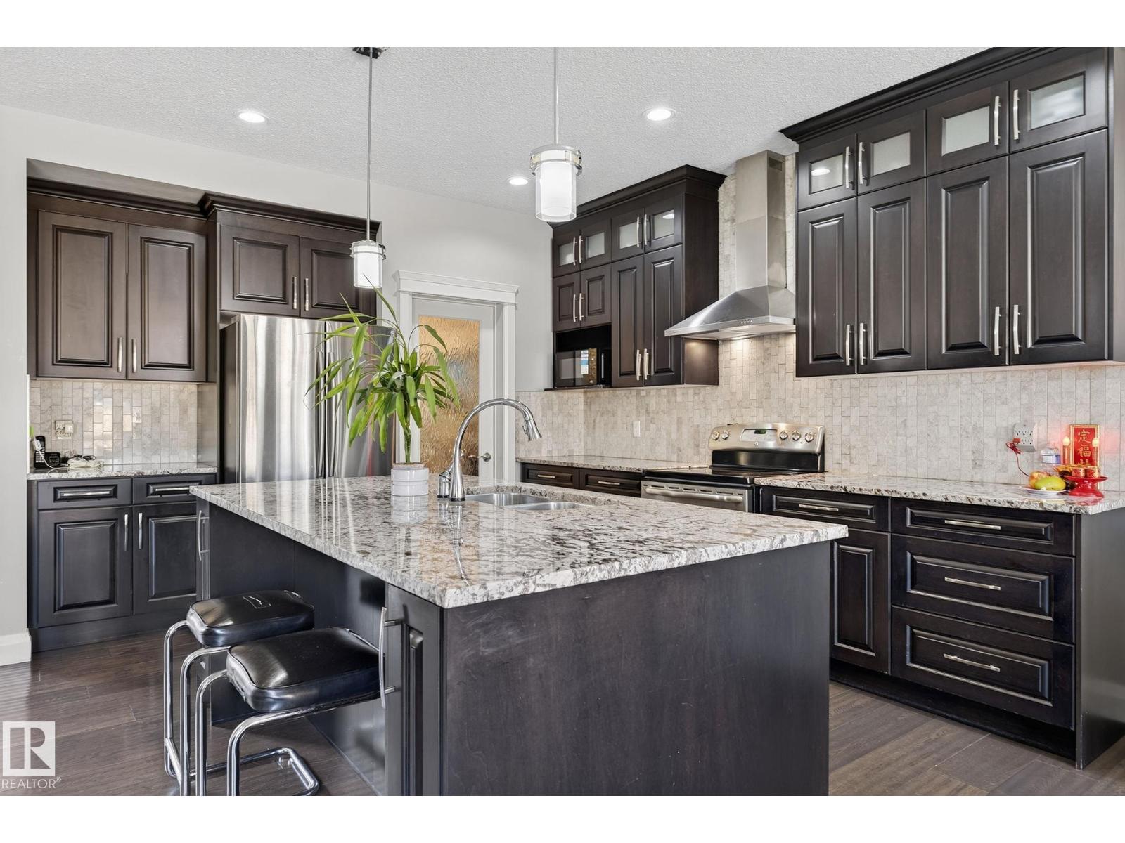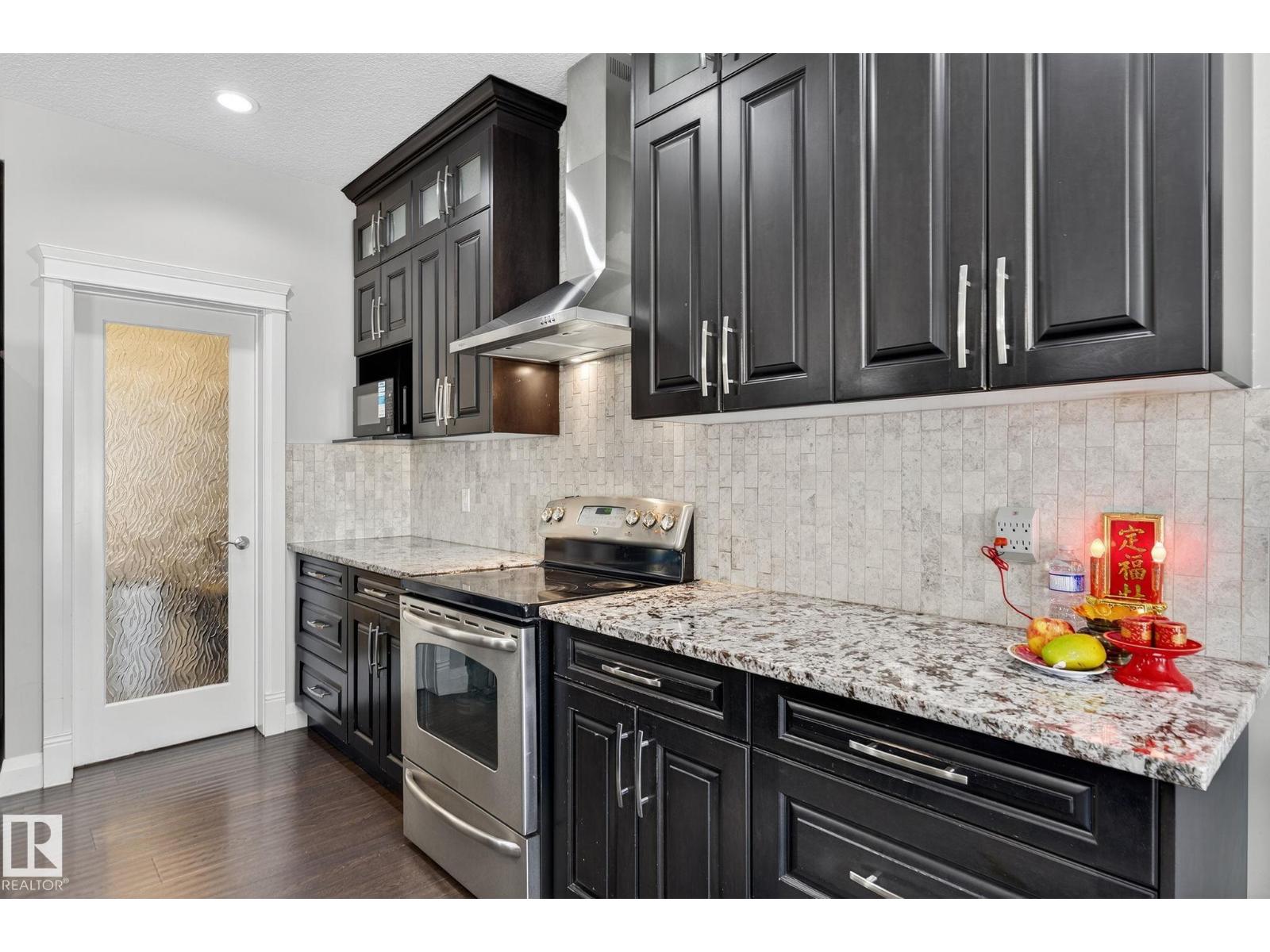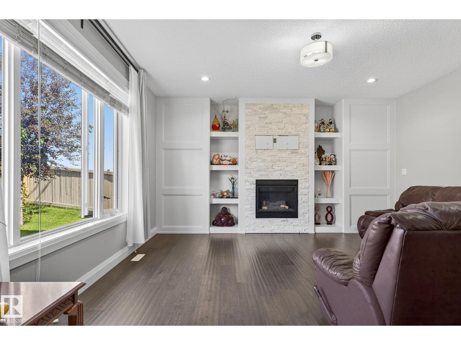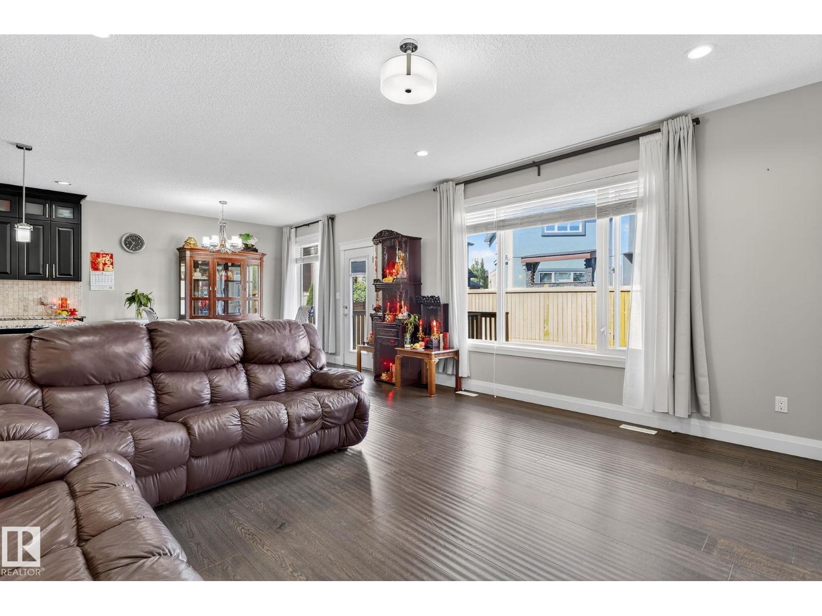 Absolutely stunning 2622 sf 2 storey home situated in the desirable community of carlton, next onto beautiful green space! features 4 bedrooms/den room/2.5 bathrooms/kitchen/living rm/family rm & a double attached garage. main floor greets you with open to below high ceilings foyer. living room boasts cozy fireplace & hardwood floorings throughout enhance the sophistication & elevate the allure of this home. dining area overlooking to lovely yard & nice green space. chef-inspired kitchen w high-end kitchen cabinets/nice backsplash tiles/large centre kitchen island/granite kitchen counter tops & walk-in pantry. convenient main floor bathroom/laundry area & den room (can be function as 5th bedroom). gorgeous staircase w unique textured stone leads you to a large & bright family room & four sizable bedrooms. king-sized master bedroom offers walk-in closet and a 5 piece ensuite w double sinks & jacuzzi. easy access to public transp/henday dr/schools/park/playground/shopping & all amenities. don't miss! (id:62933)