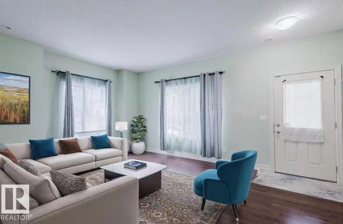 Gorgeous and spacious end-unit 3-bedroom, 2.5-bath townhome in magrath heights. with a larger floor plan than most units, this home is filled with natural light from south- and west-facing windows and offers peaceful green space views. the main floor features 9’ ceilings, granite counters, and a modern kitchen with stainless steel appliances, island, and walk-in pantry. the bright living room opens to a private west-facing yard—perfect for morning coffee, summer evenings, or bbqs. upstairs, the primary suite includes a walk-in closet and 4-piece ensuite, plus two additional bedrooms and a full bath. highlights include a double attached garage, good storage, and energy-efficient systems with tankless hot water to lower utilities. updates include washer (2020), garage opener (2023), and fresh paint. this well-managed complex offers visitor parking and a quiet setting near shopping, schools, transit, trails, with quick access to whitemud and anthony henday. a perfect mix of space, sunlight, and location! (id:62933)