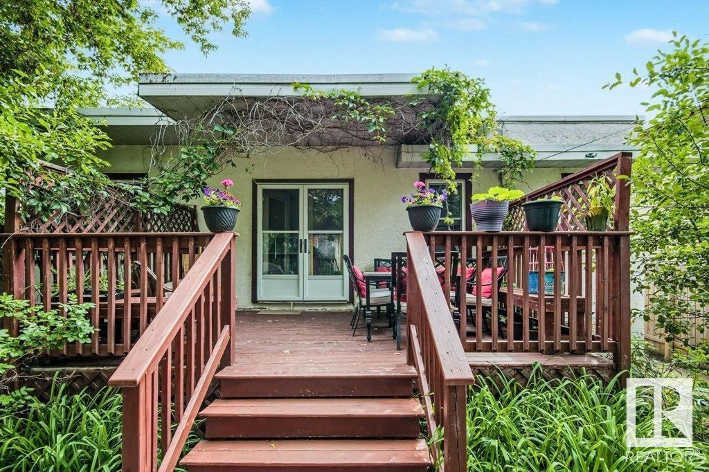 Nestled in the top infill community of grovenor—one of edmonton’s most desirable mature neighborhoods, located 15 min from down town and one block from mckinnon ravine, parks, and trails, this 1156 sqft bungalow offers 4 bedrooms, 2 bathrooms, large living room with cozy fireplace. two bedrooms on main floor . you’ll love the old-world charm, original detailing, built in china cabinets and bookshelves, skylights , original oak hardwood floors , cozy ambiance throughout. the fully developed basement adds 2 more bedrooms, 3pc bath, large family room , infrared sauna, ideal for family, guests, or rental potential. whether you’re drawn by the lifestyle of a walkable, nature-rich community, , or seeking a home with versatile live-work options. the large 13.4 x 43.3 rf3 zoned lot is also perfect for future redevelopment. (id:62933)
