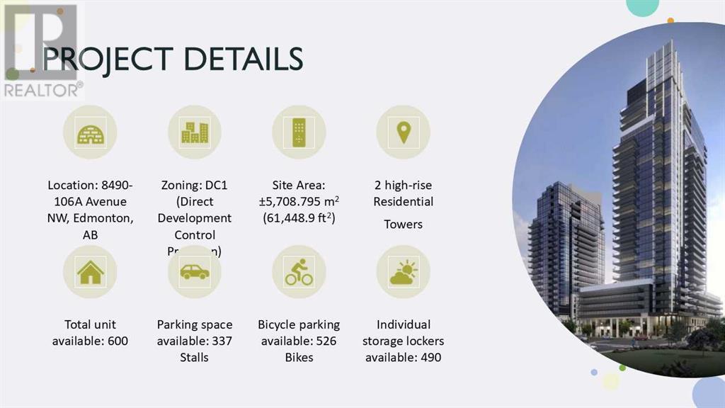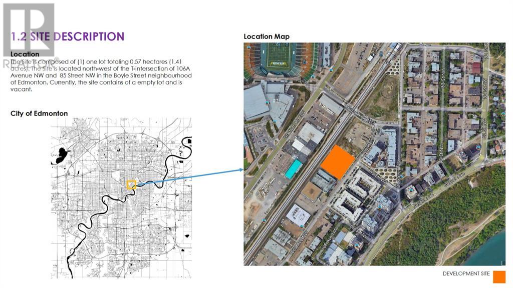 This is your rare development opportunity to build 2 high rise residential condo towers in a prime location in the core of edmonton in the heart of the master-planned muttart urban district of downtown edmonton, just steps to commonwealth stadium, edmonton river valley, jasper avenue and the lrt. this land is perfectly located with amazing city walkability steps from a bikers paradise pathway system, close to great city transit options, up the hill from dawson park with stunning river valley views, close to all amenities, shopping, jasper avenue, schools, recreation centers, shopping and much more. share of our vision of building a healthy, happy, high-end community. phase 1 condo tower is a 30 story, 366 units, 265,510ft gfa. phase 2 condo tower is a 22 story, 234 unit, 160928ft gfa. in total, the plans are to build over 600 units with 337 parking spots, 526 bicycle stalls and 490 storage lockers. units consist of studio, 1 bedroom, 1bedroom + den, 2 bedroom, 2 bedroom + den, 3 bedroom and townhomes. there will be units with amazing views of the river valley, city, golf course and stadium. planned amenities include a pool, gardens, yoga/exercise area, bbq station, picnic area. ideal location for young professionals, young families, empty nesters that are downsizing, athletes (we’re next to commonwealth stadium), post-secondary students from nearby universities looking to rent affordably and comfortably, and government employees, both short and long-term, seeking proximity to downtown. this is a rapidly developing and maturing neighbourhood with an influx of younger, wealthier buyers/renters, improved housing, new businesses, and increasing property values. luxurious, high-quality property with ample living space at an affordable price proximity to downtown/city conveniences and amenities ideal location for renters, close to the downtown core, with high earning potential. premier ranked investment opportunity in edmonton vs. toronto. alberta’s cost of livi ng is lower than ontario notable designer (tbd) multitude of amenities. more details available. contact us today if you are interested in this once in a lifetime opportunity! (id:62933)