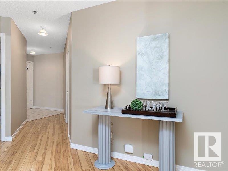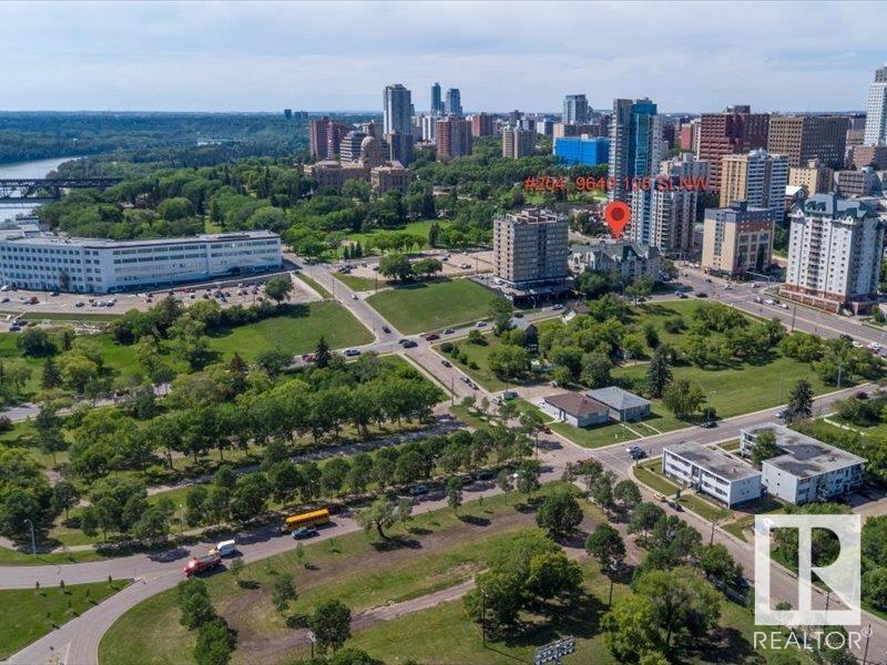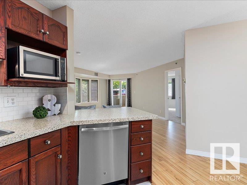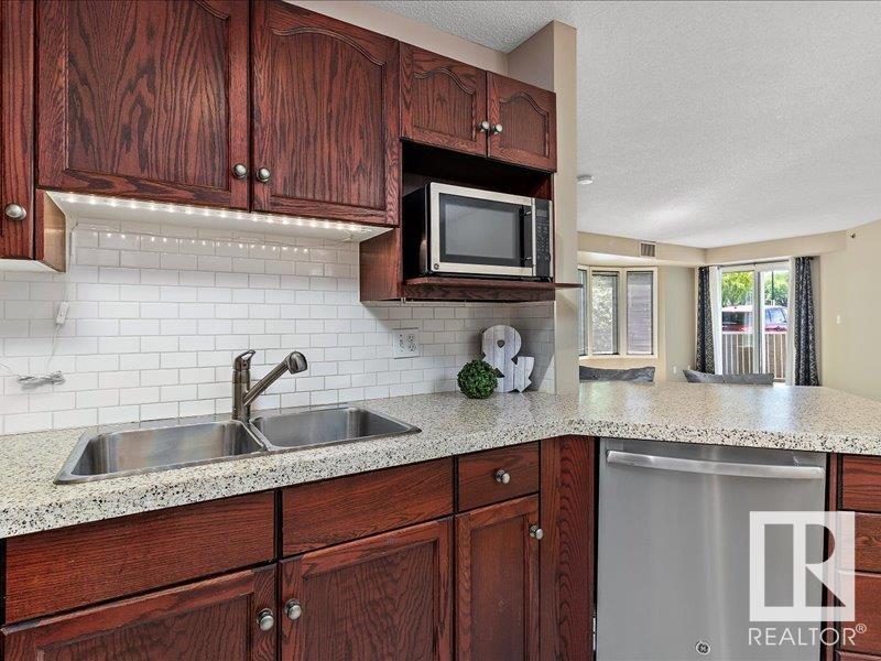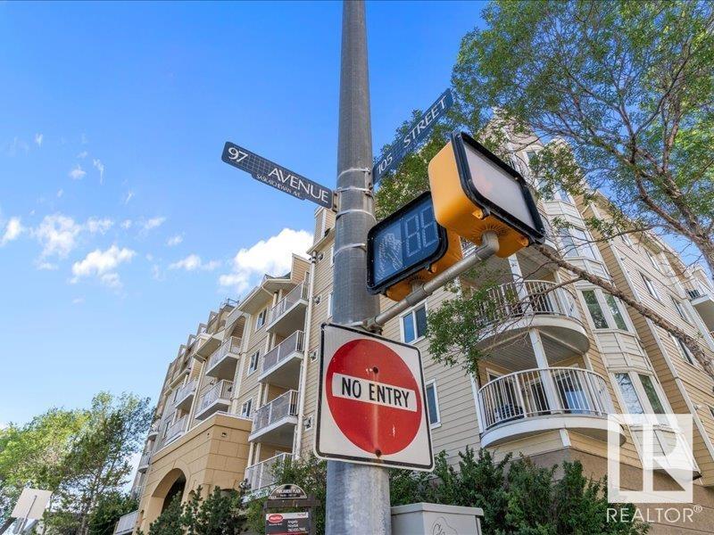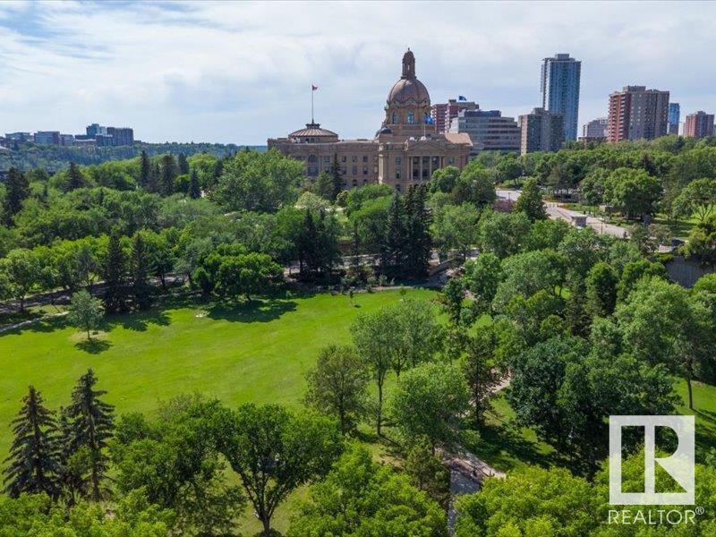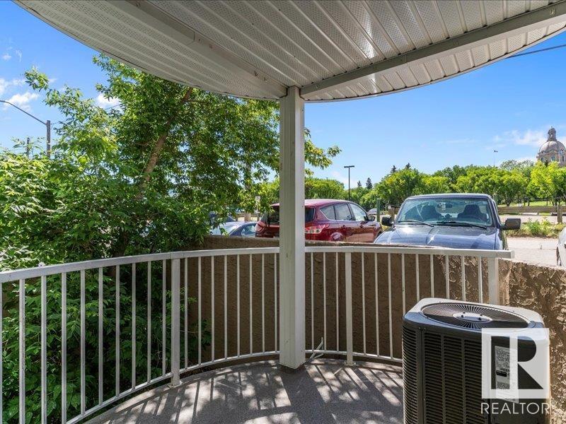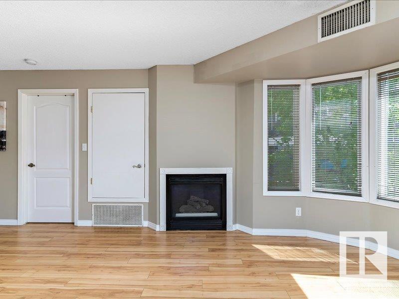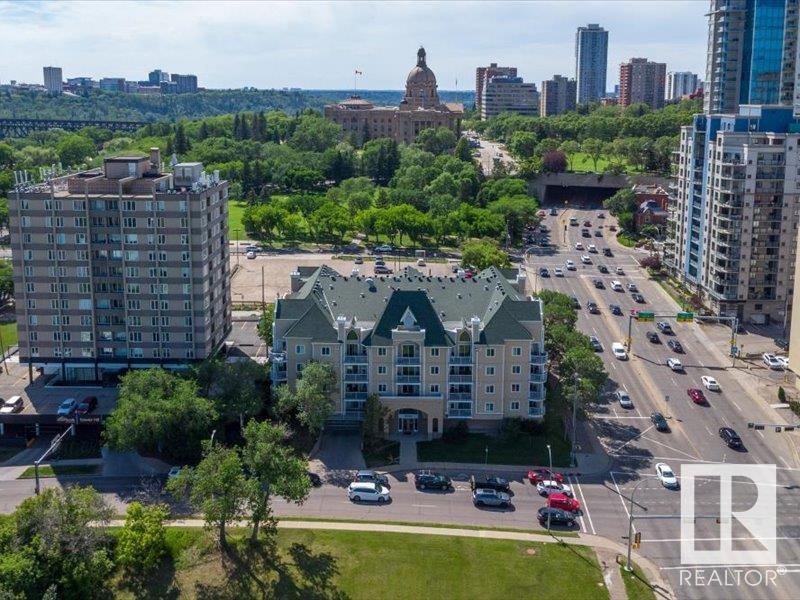 Located in the heart of rossdale, stones throw to our iconic river valley and legislative grounds you'll find this gorgeous condo. featuring 2 bedrooms , 2 full bathrooms, large peninsula style kitchen with loads of cabinets, breakfast bar, newer corian countertops (also done in both bathrooms), ceramic flooring & spacious dining area. the livingroom has a cozy gas fireplace, upgraded laminate flooring, numerous sw windows that provide much sunlight and access to spacious circular balcony. good sized bedrooms, ample storage , newer central air-conditioner/furnace, 6 appliances and 1 underground parking stall (53). just minutes to many of edmonton's finest attractions including rogers arena, folkfest, accidental beach, dining, grocery as well as the university & lrt system. in 2015 the building went through a major upgrade: stucco off to 40 year hardie plank board, roof, attic insulation, windows, balconies/railings & dura-decking. reasonable condo fee's incl heat and water. see today! (id:62933)