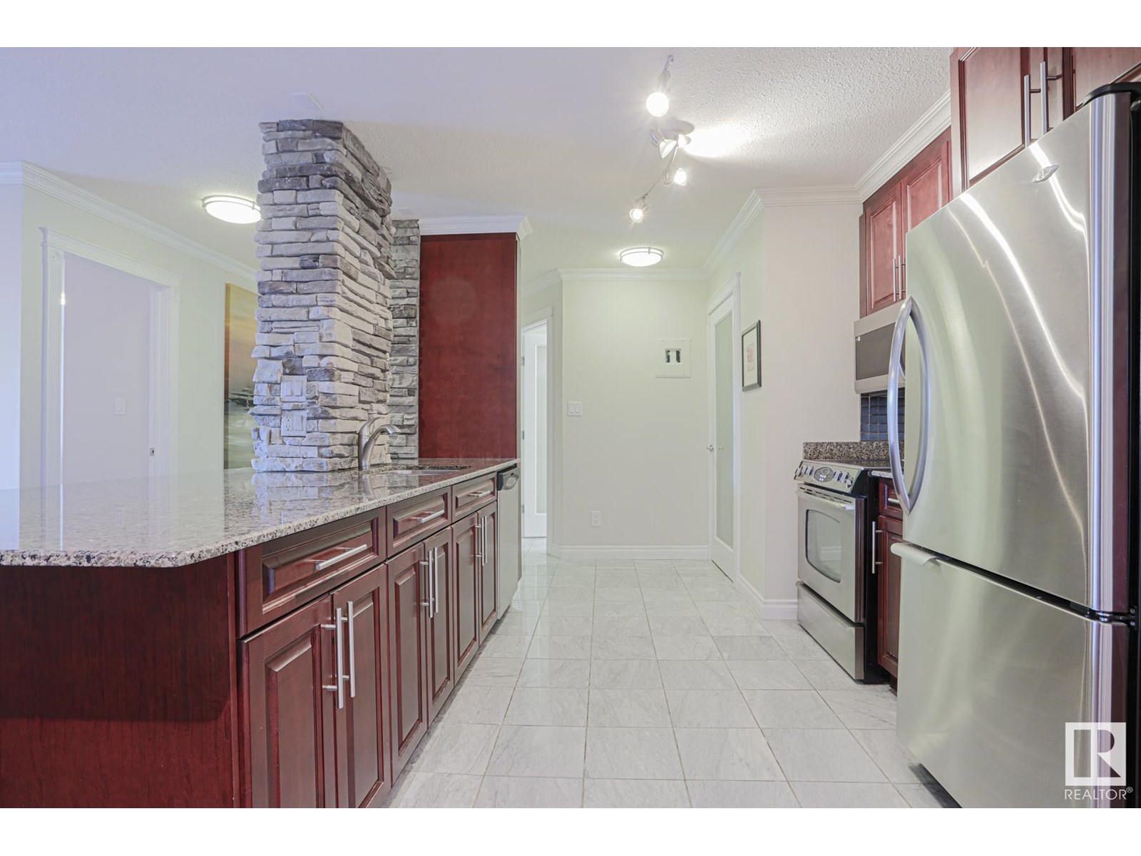 Penthouse! available immediately! quiet corner unit. concrete building. open concept layout offers flexible setup. stylish kitchen complete with granite countertops, elegant cabinetry, stainless steel appliances, and stone accents. living room features built in shelvings, brick facing wood burning fireplace and modern tv. large bedroom with two closets. in-suite washer and dryer. elegant bathroom featuring jacuzzi tub and more. large private balcony with access to storage space. underground heated parking with the stall conveniently located close to the elevators. the building also offers gym, recreation center and rooftop patio for a small annual membership. steps away from restaurants, shopping, lrt, hockey central and more. great place to call home! (id:62933)