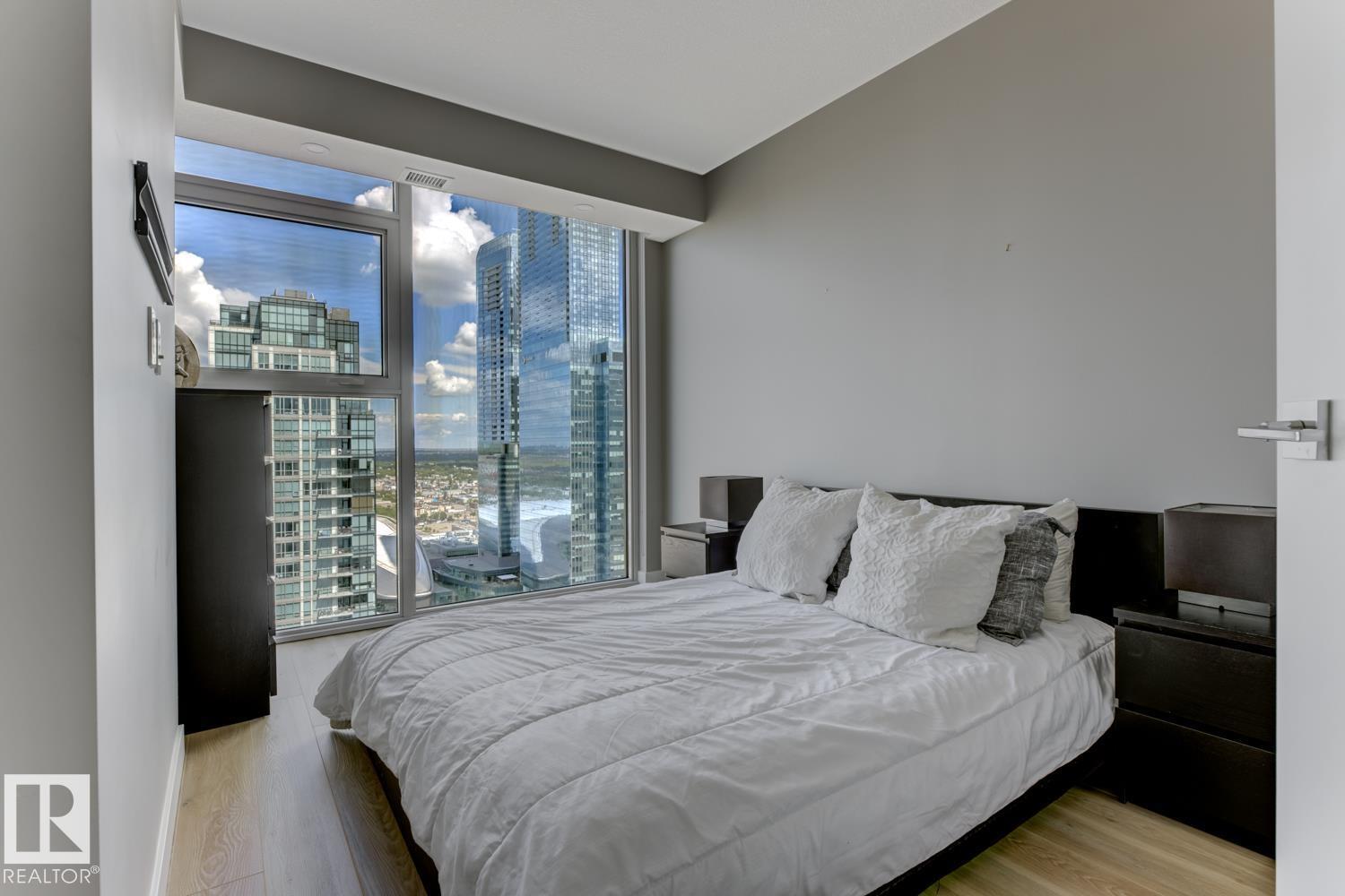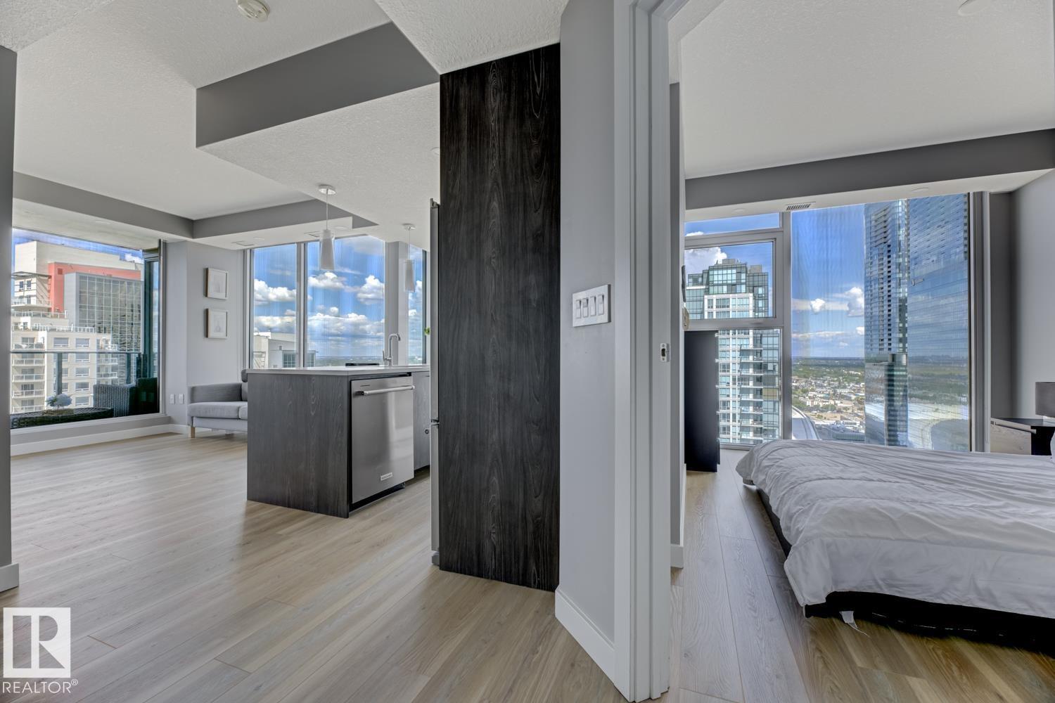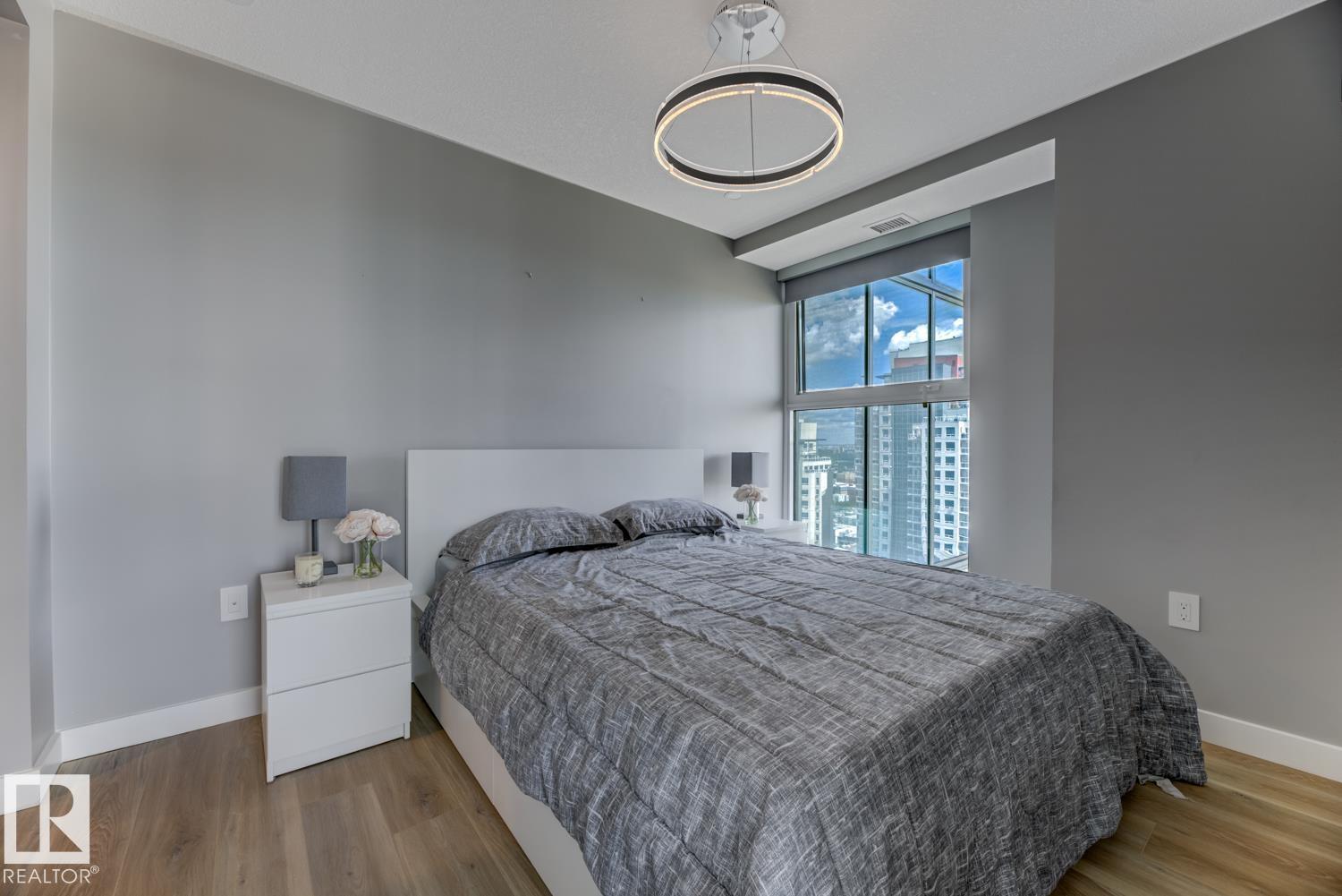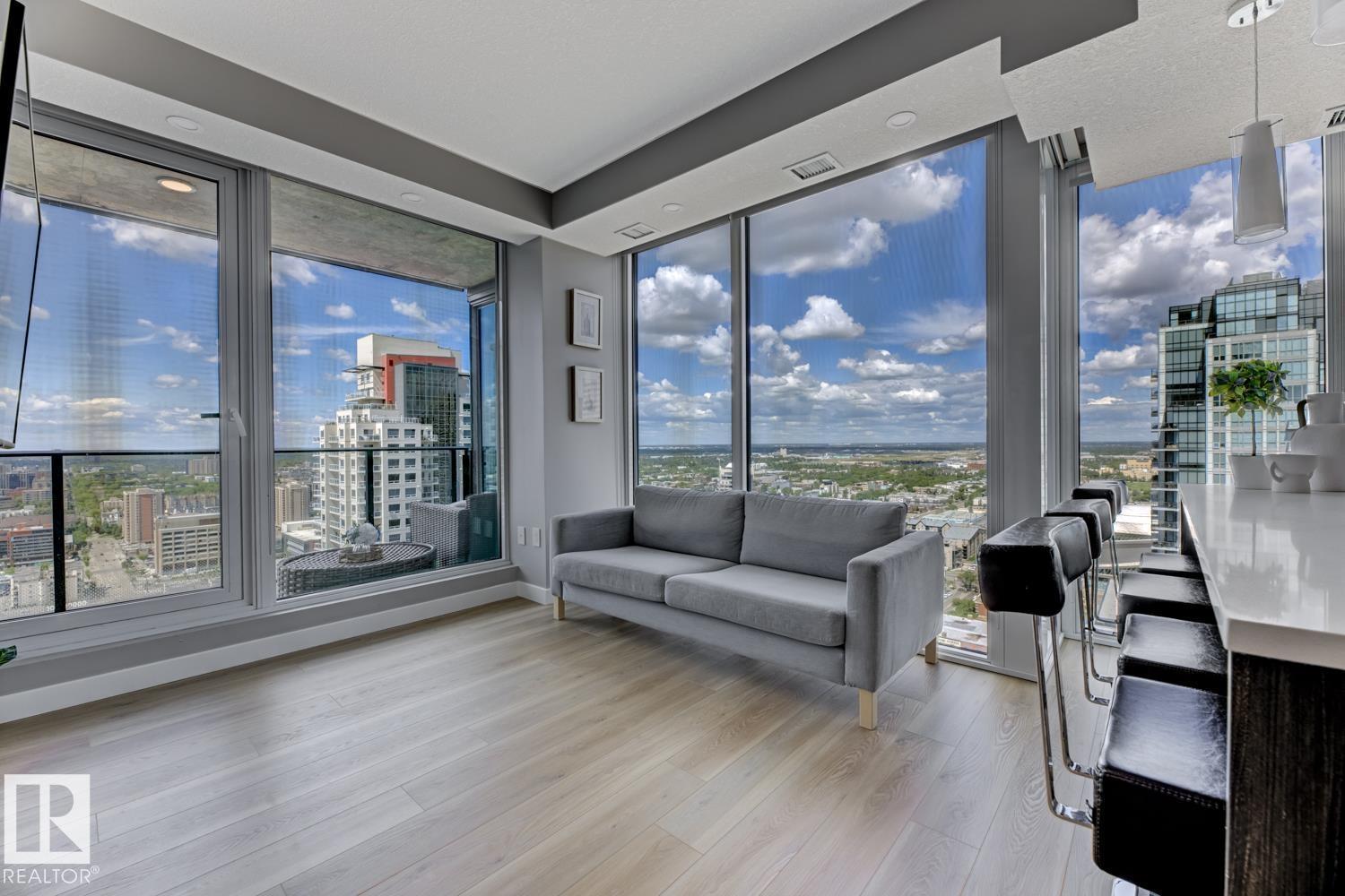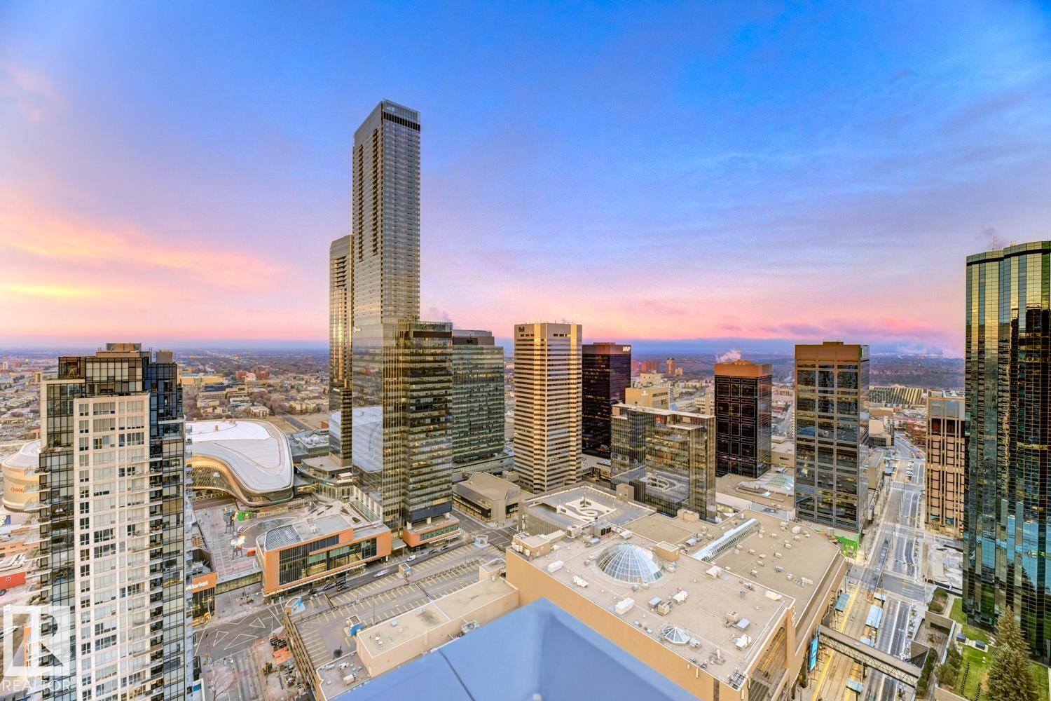 **upgraded**elevate your lifestyle in this stunning 29th-floor condo at encore tower, just steps from rogers place and edmonton's vibrant ice district. soak in breathtaking 180° downtown views through floor-to-ceiling windows and unwind by the striking marble fireplace. the modern chef’s kitchen featuring kitchenaid’s upgraded *red seal*stainless steel appliances and sleek quartz countertops. this 2-bedroom, 2-bath unit includes a luxurious primary suite with ensuite, walk in shower, and california closets. the private balcony is the perfect place for morning coffee or after-work refreshment, while building amenities include a fitness centre, social lounge, outdoor terrace, and titled underground parking with storage locker. live stylishly at the center of it all. (id:62933)