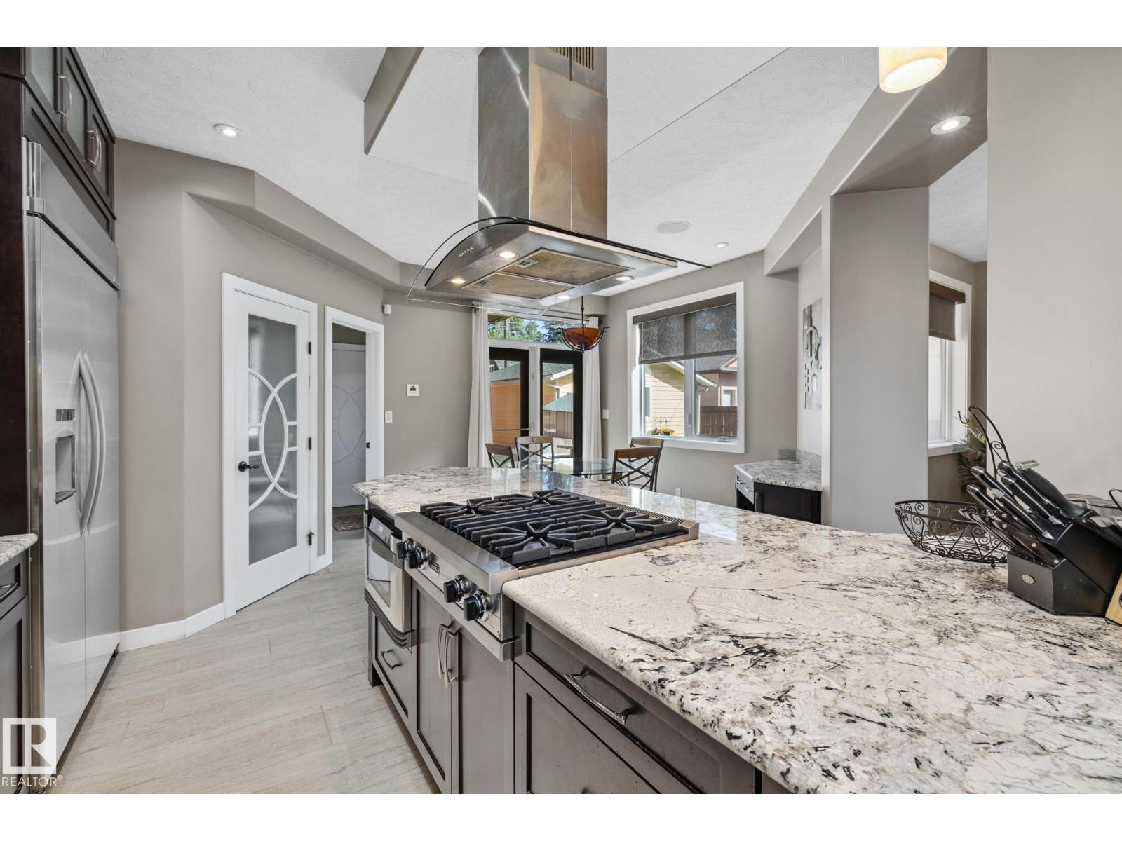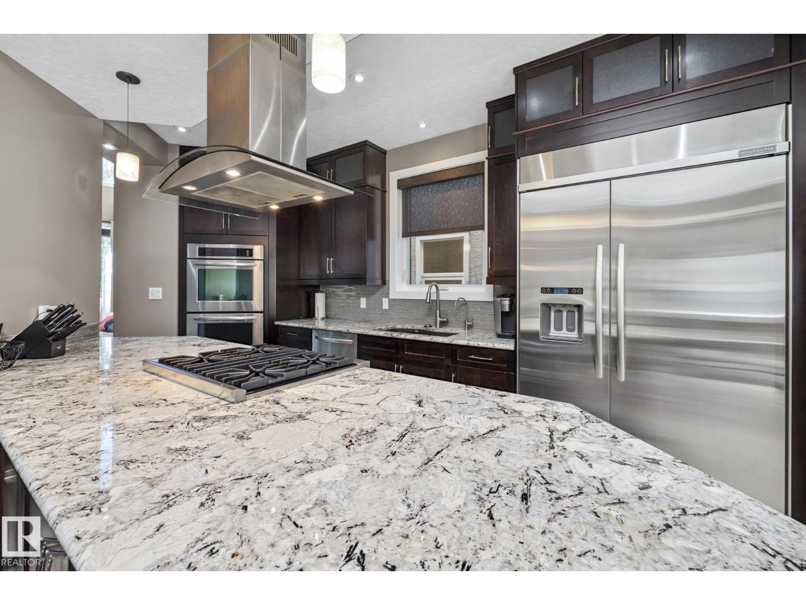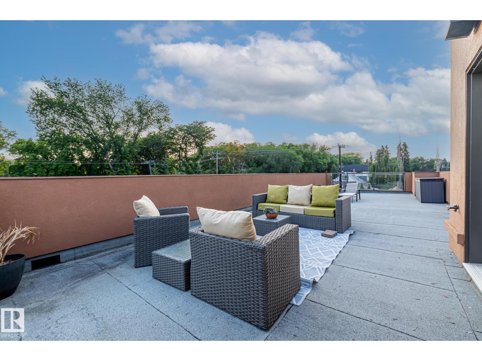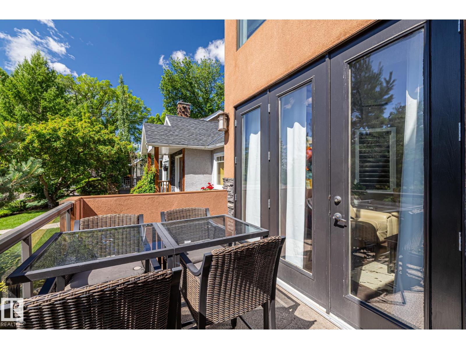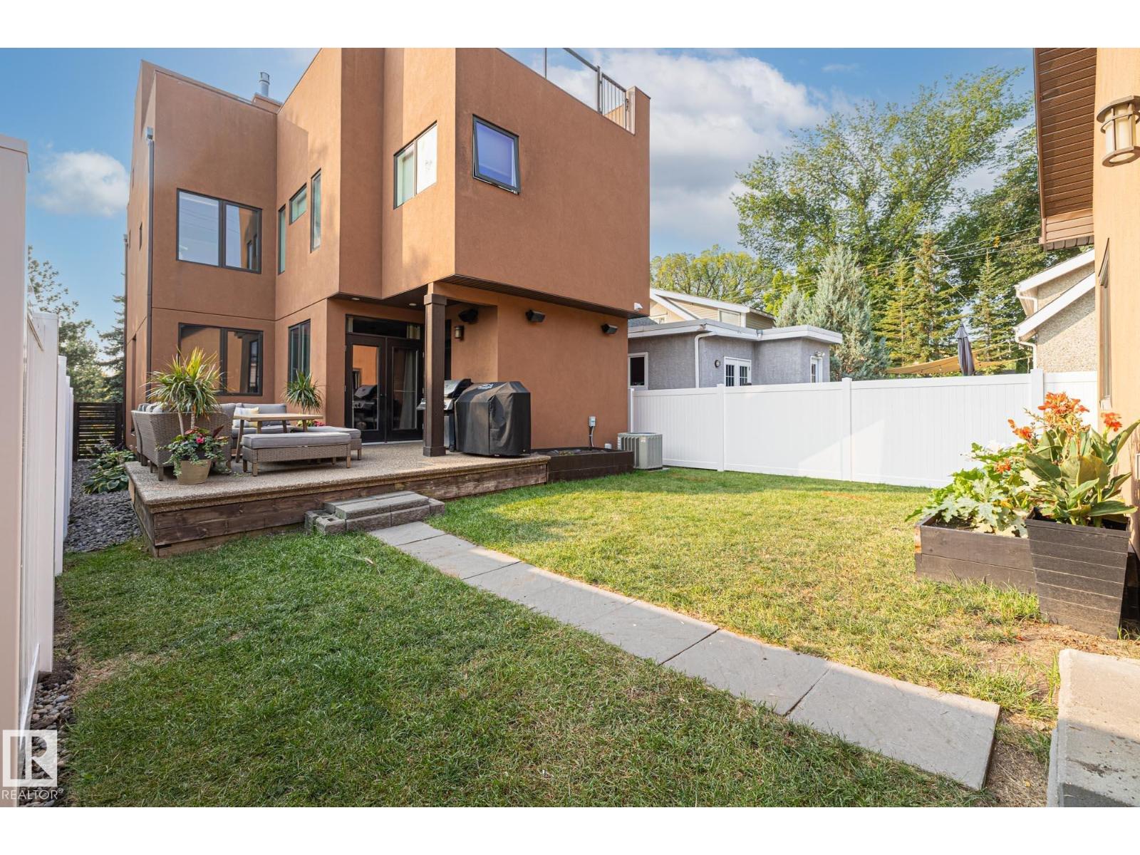 Imagine rooftop sunsets over the river valley from a patio nearly the size of your home. this stunning 4-bedroom 3.5-bath property sits across from highlands golf course, in edmonton’s coveted highlands community is a rare find. overlooking henry martell park and highlandia, you can walk to fox burger, bodega, kind ice cream and candid coffee then come home to floor-to-ceiling windows, a curved open staircase and a sleek 3-way fireplace. the chef’s kitchen is built for hosting with a viking double oven, granite counters, a large island and walk-in pantry. upstairs the private primary retreat features a walk-in closet and spa-inspired ensuite with steam shower. a sunny front patio is perfect for morning coffee while the rooftop patio sets the stage for unforgettable gatherings under the stars. the finished basement adds more bedrooms, a rec space and full bath. newly vinyl fenced yard, garden beds and a double garage with loft storage. an exquisite highlands lifestyle in a sought-after location. (id:62933)