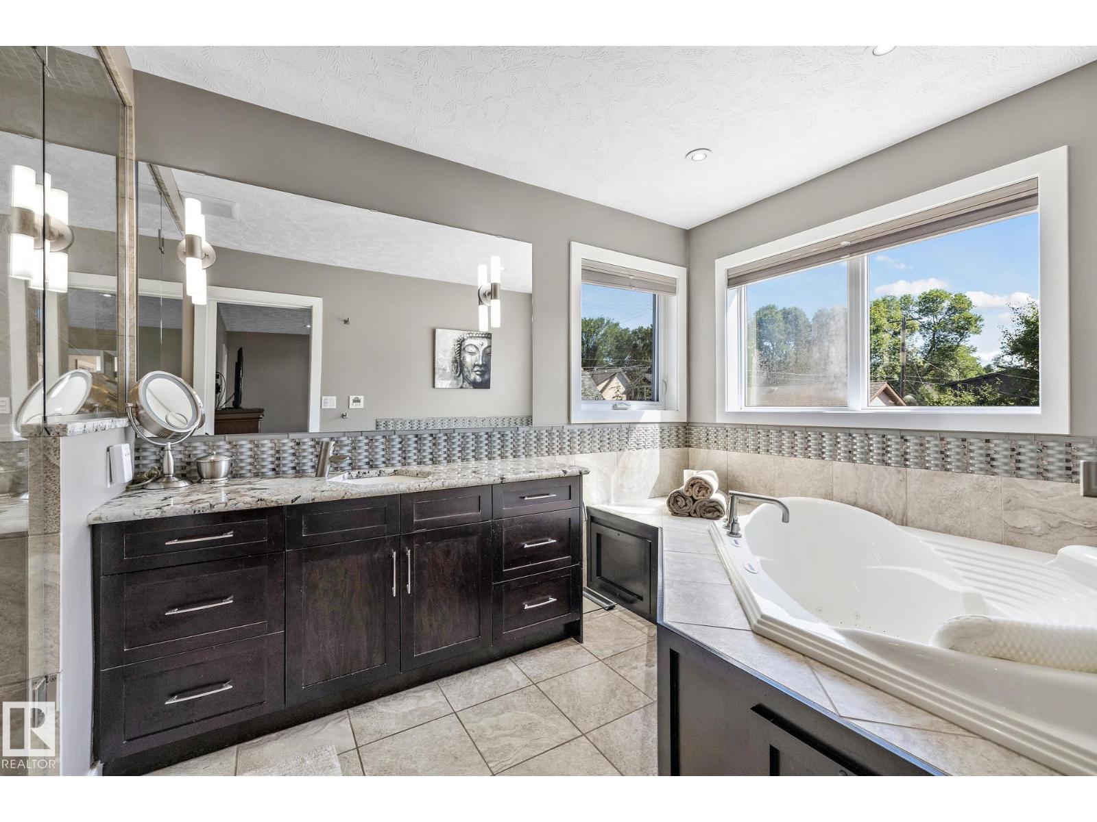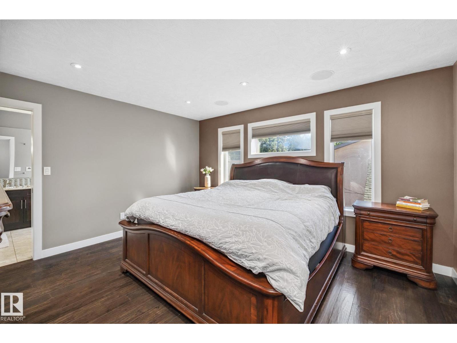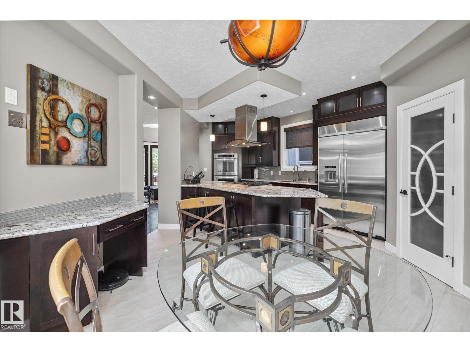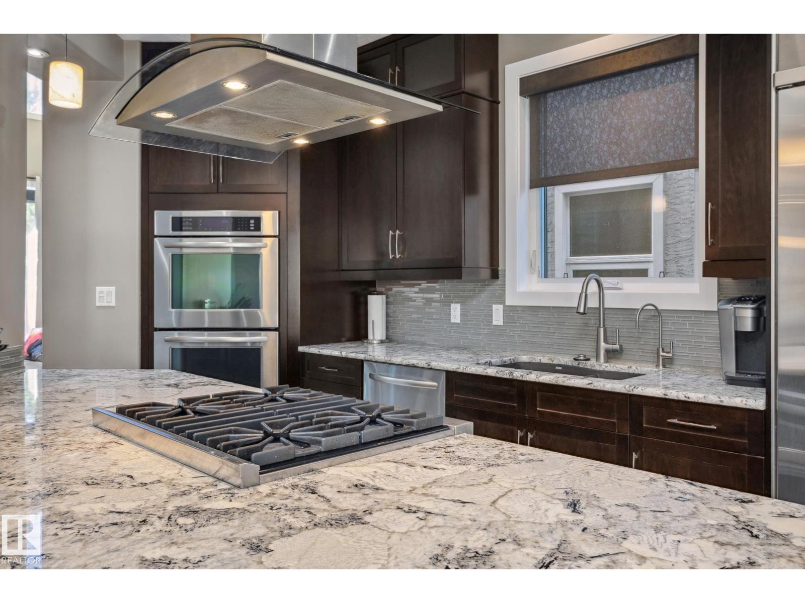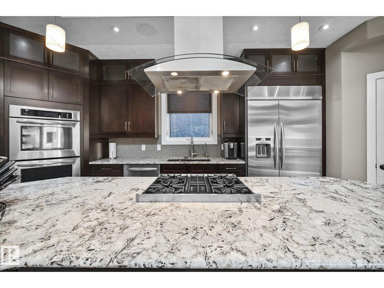 Imagine rooftop sunsets over the river valley from a patio nearly the size of your home. this stunning 4-bedroom 3.5-bath property sits across from highlands golf course, in edmonton’s coveted highlands community is a rare find. overlooking henry martell park and highlandia, you can walk to fox burger, bodega, kind ice cream and candid coffee then come home to floor-to-ceiling windows, a curved open staircase and a sleek 3-way fireplace. the chef’s kitchen is built for hosting with a viking double oven, granite counters, a large island and walk-in pantry. upstairs the private primary retreat features a walk-in closet and spa-inspired ensuite with steam shower. a sunny front patio is perfect for morning coffee while the rooftop patio sets the stage for unforgettable gatherings under the stars. the finished basement adds more bedrooms, a rec space and full bath. newly vinyl fenced yard, garden beds and a double garage with loft storage. an exquisite highlands lifestyle in a sought-after location. (id:62933)
