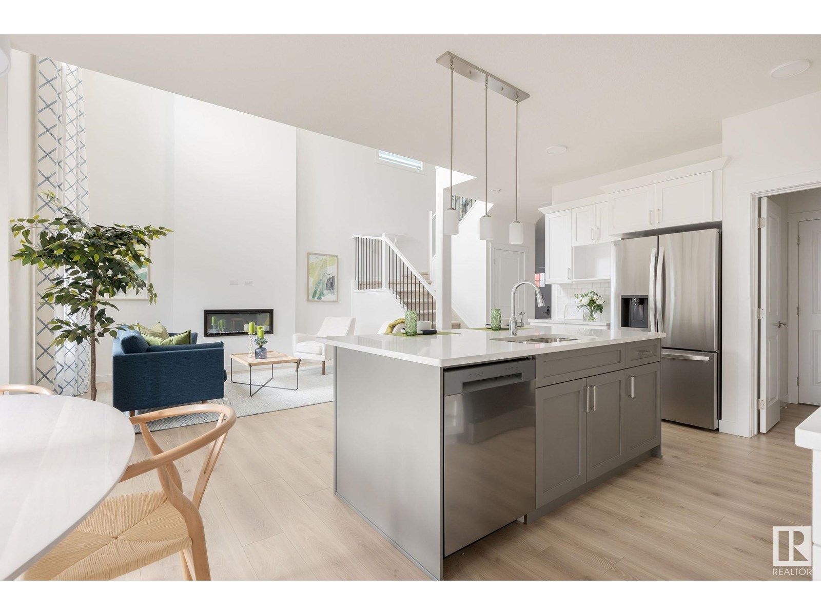 (not a zero lot!!) edgemont is an iconic community settled in the heart of west edmonton, a neighbourhood secluded from the noise, so you can focus on what matters most! with over 2100 sqft this single-family home the fulton features a saparate entrance, double car garage, 3 bedrooms, 2.5 bathrooms and chrome faucets throughout. enjoy extra living space on the main floor with the laundry room on the second floor. the 9-foot ceilings and quartz countertops throughout blends style and functionality for your family to build endless memories. **please note** pictures are of show home; actual home, plans, fixtures, and finishes may vary and are subject to availability/changes; home is under construction. completion est winter 2025/2026!! (id:62933)