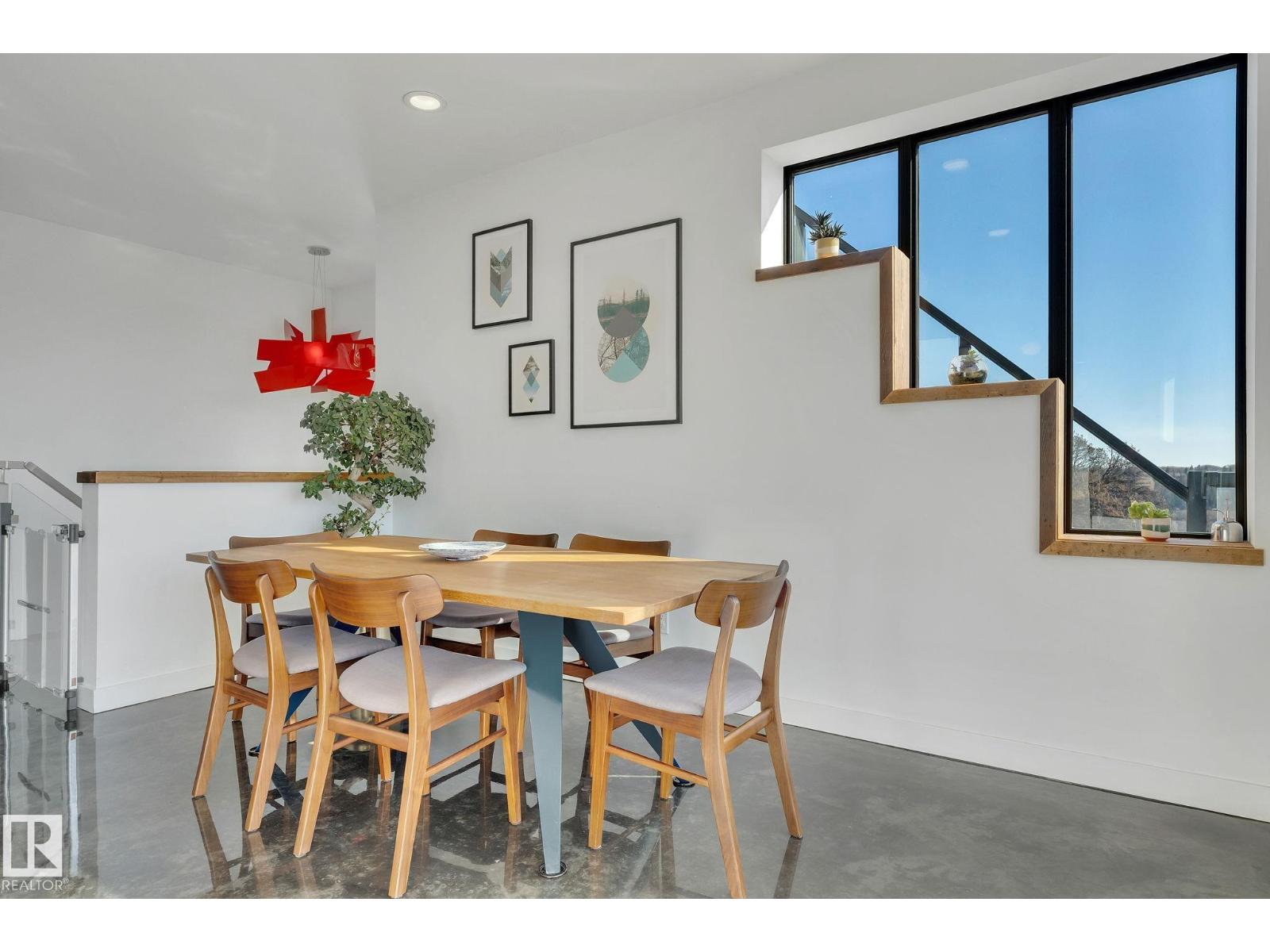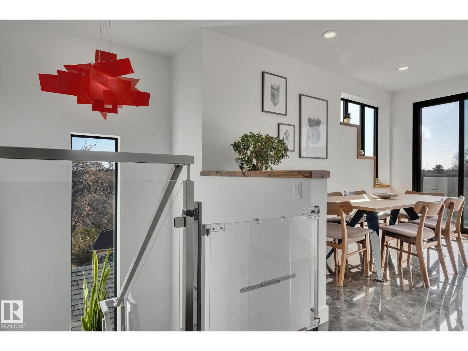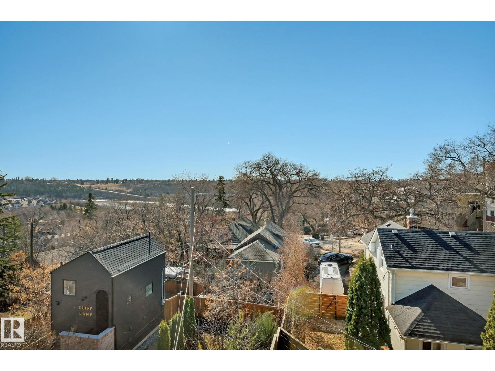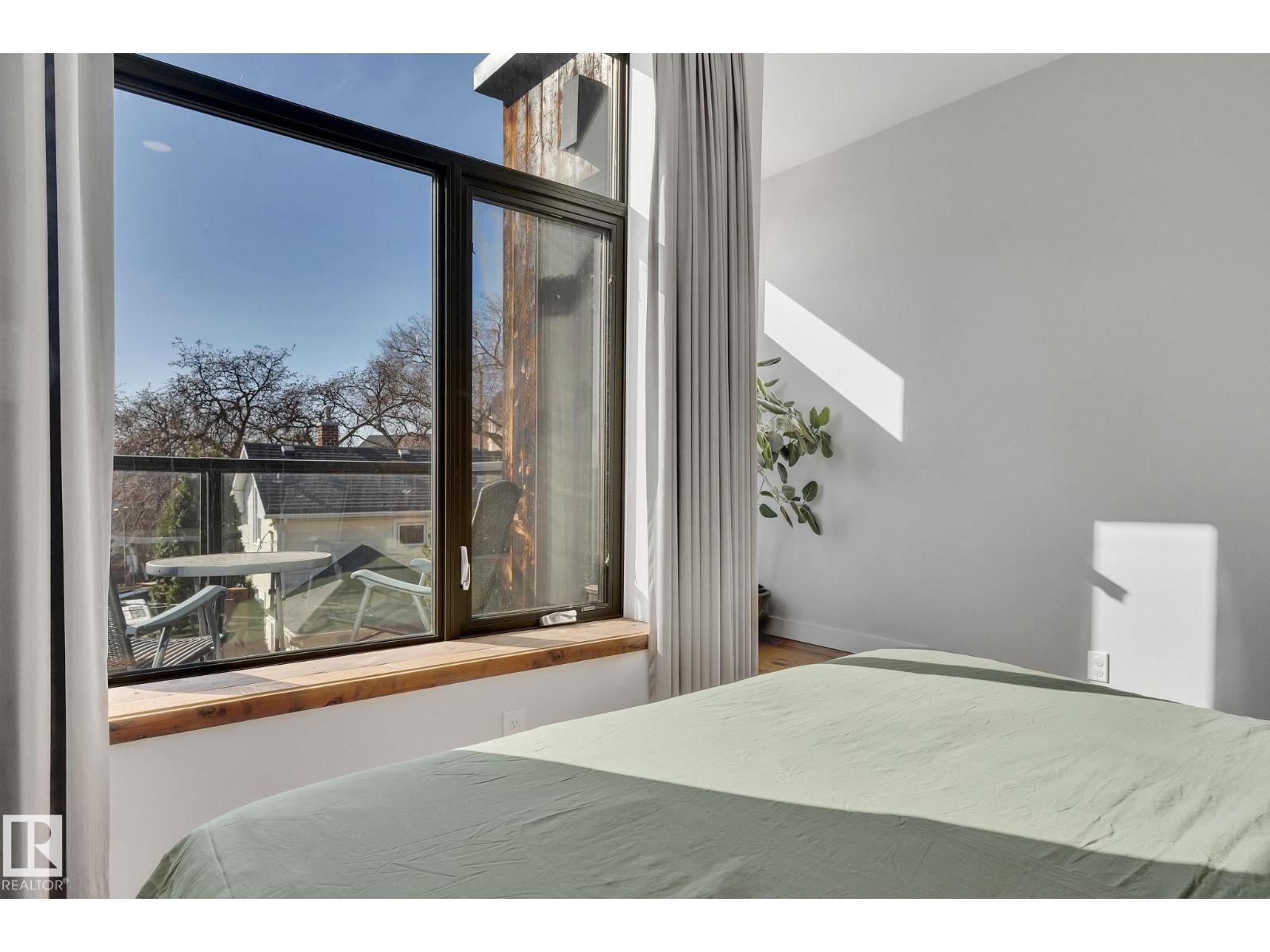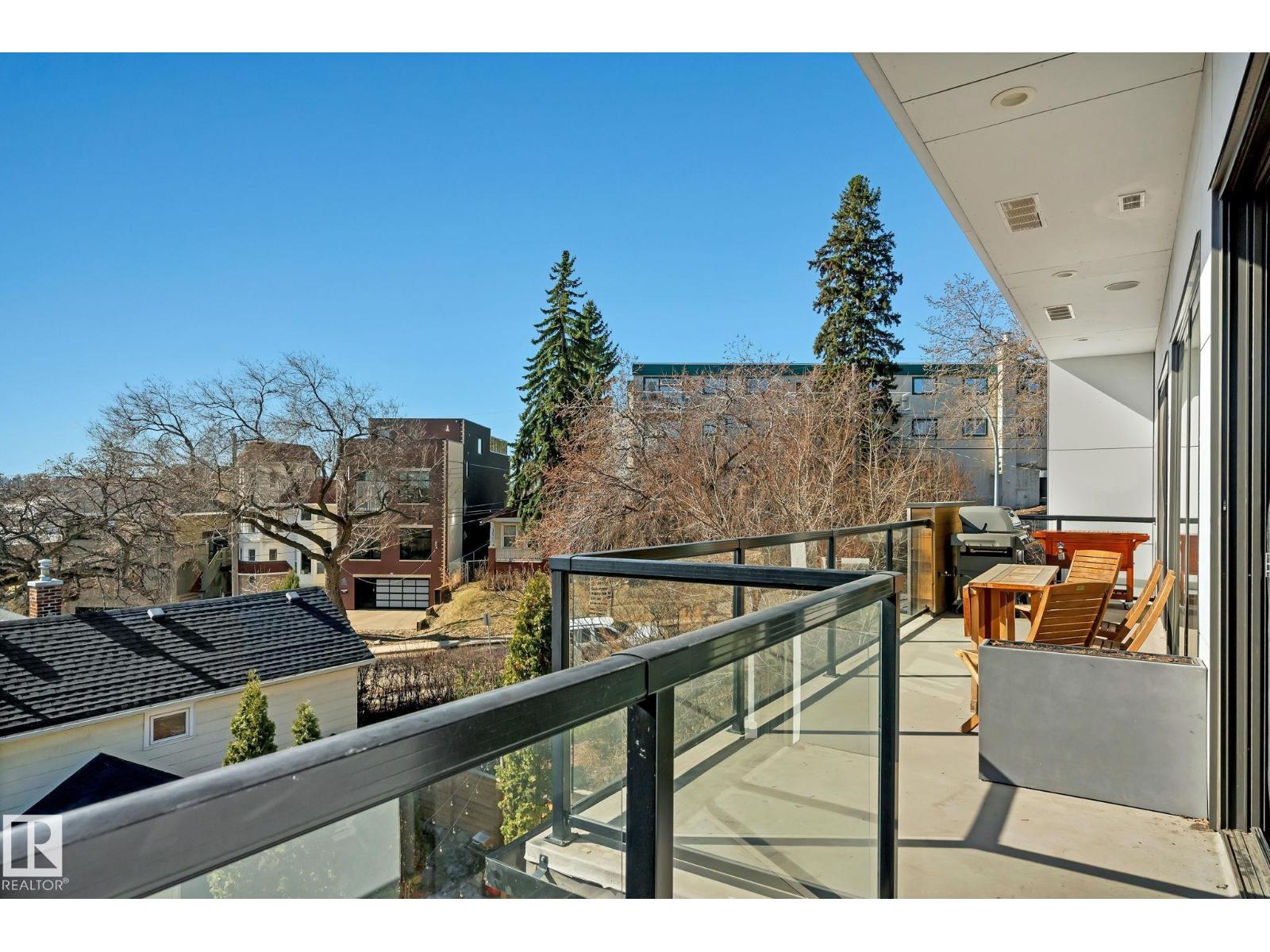 Steps from downtown and the river valley, this iconic modern home in edmonton’s riverdale offers unmatched access to trails, cafes, parks, and city life. enjoy stunning 270° views from the rooftop patio, overlooking lush river valley landscapes and skyline. architecturally striking, it features shou sugi ban cedar siding, polished concrete floors, built-in a/c, and a wired-in surround sound system. the open-concept main floor showcases glossy cabinetry and a dramatic 16-ft redwood island. the loft-inspired main-level primary suite offers reclaimed wood flooring, exposed brick, and a spa-like italian marble ensuite. three additional bedrooms, a stylish bath, and an office provide space for family or work. the walkout basement is made for entertaining, with a full bath, sauna, and custom bar. energy-efficient with green building touches and over 2,600 sqft of upscale living space, this home defines urban luxury steps from nature, and just minutes to downtown’s cafes, parks, trails, and river valley access. (id:62933)