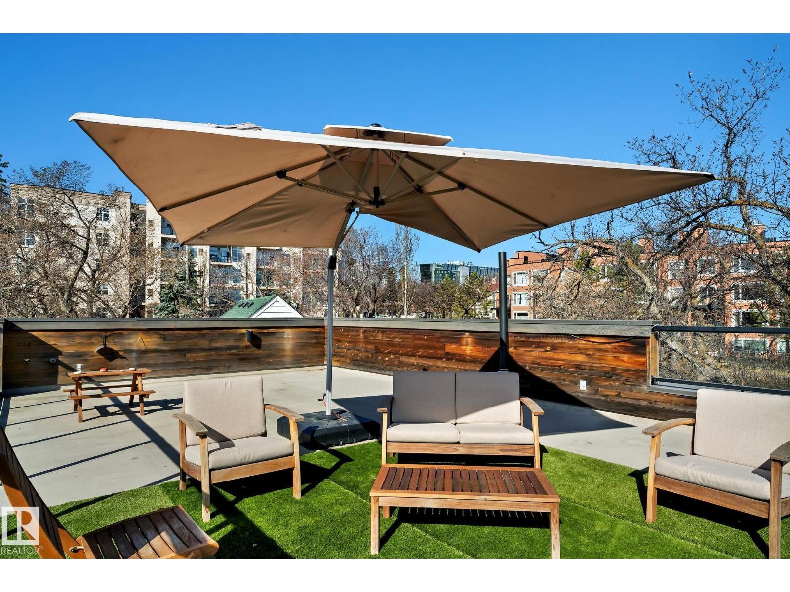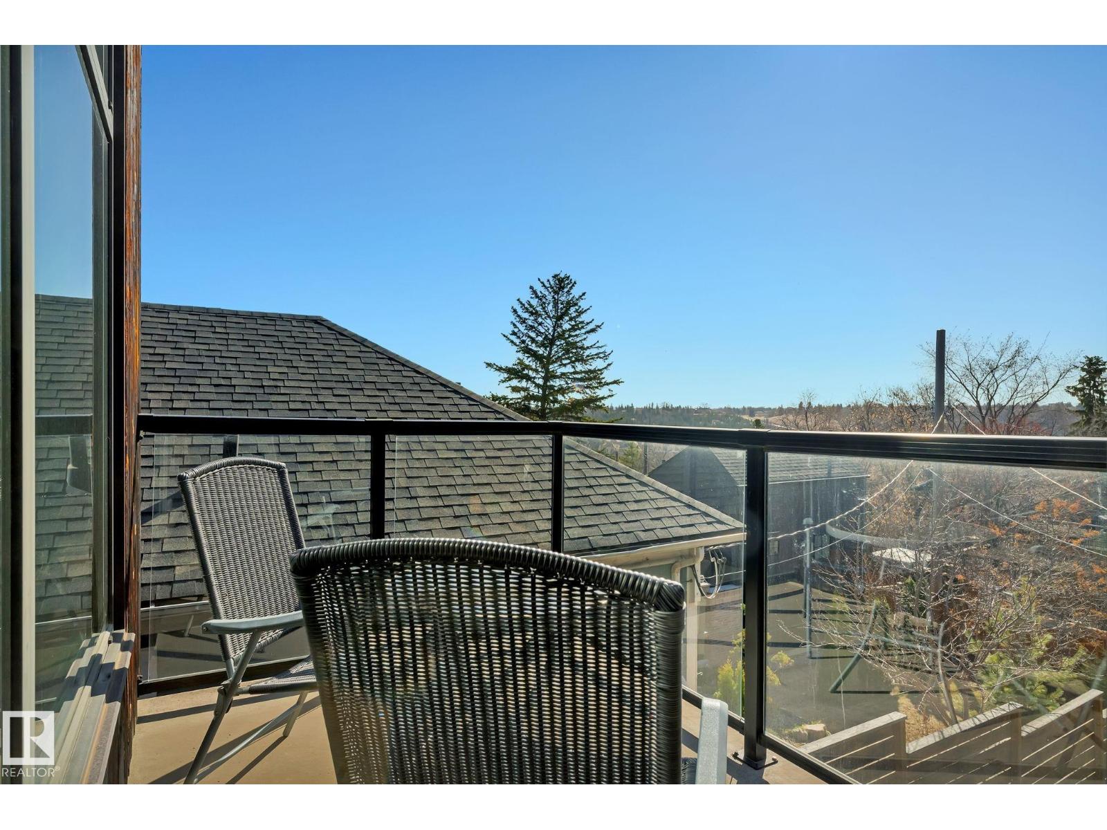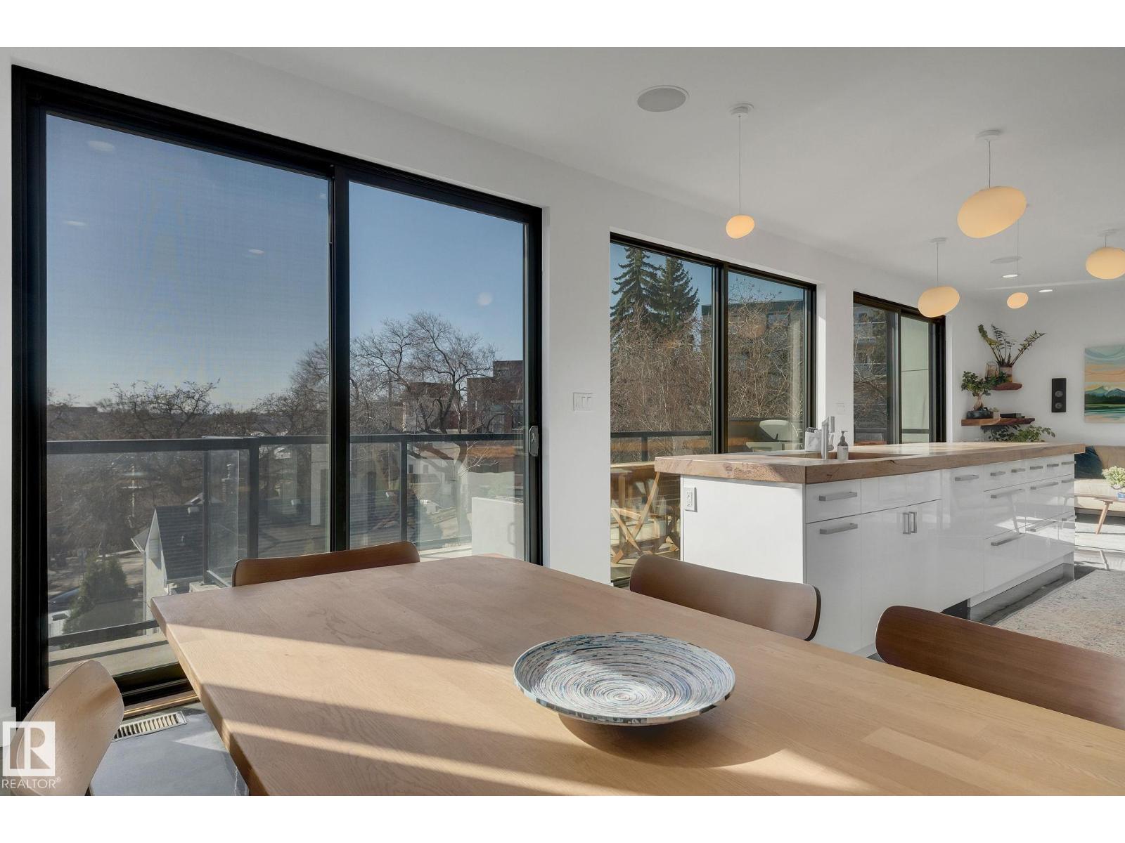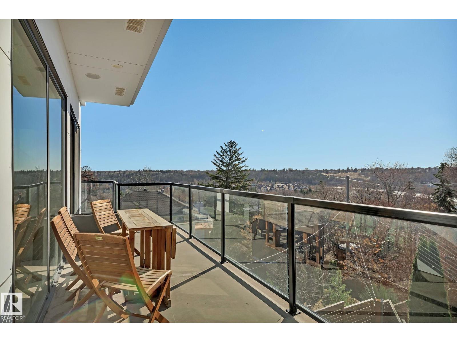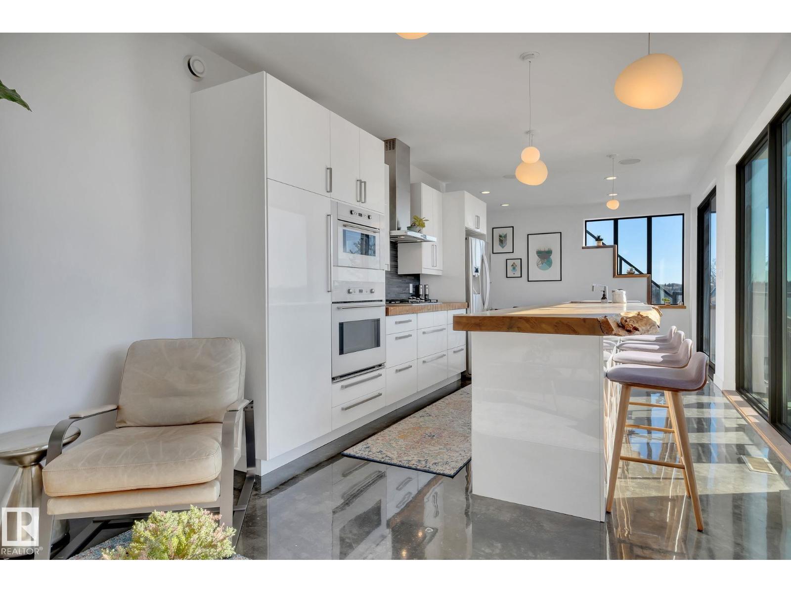 Steps from downtown and the river valley, this iconic modern home in edmonton’s riverdale offers unmatched access to trails, cafes, parks, and city life. enjoy stunning 270° views from the rooftop patio, overlooking lush river valley landscapes and skyline. architecturally striking, it features shou sugi ban cedar siding, polished concrete floors, built-in a/c, and a wired-in surround sound system. the open-concept main floor showcases glossy cabinetry and a dramatic 16-ft redwood island. the loft-inspired main-level primary suite offers reclaimed wood flooring, exposed brick, and a spa-like italian marble ensuite. three additional bedrooms, a stylish bath, and an office provide space for family or work. the walkout basement is made for entertaining, with a full bath, sauna, and custom bar. energy-efficient with green building touches and over 2,600 sqft of upscale living space, this home defines urban luxury steps from nature, and just minutes to downtown’s cafes, parks, trails, and river valley access. (id:62933)