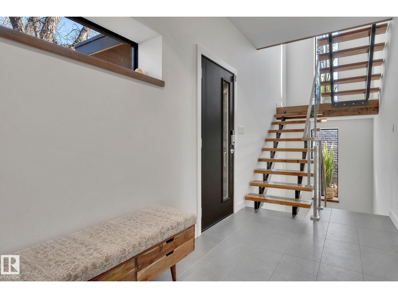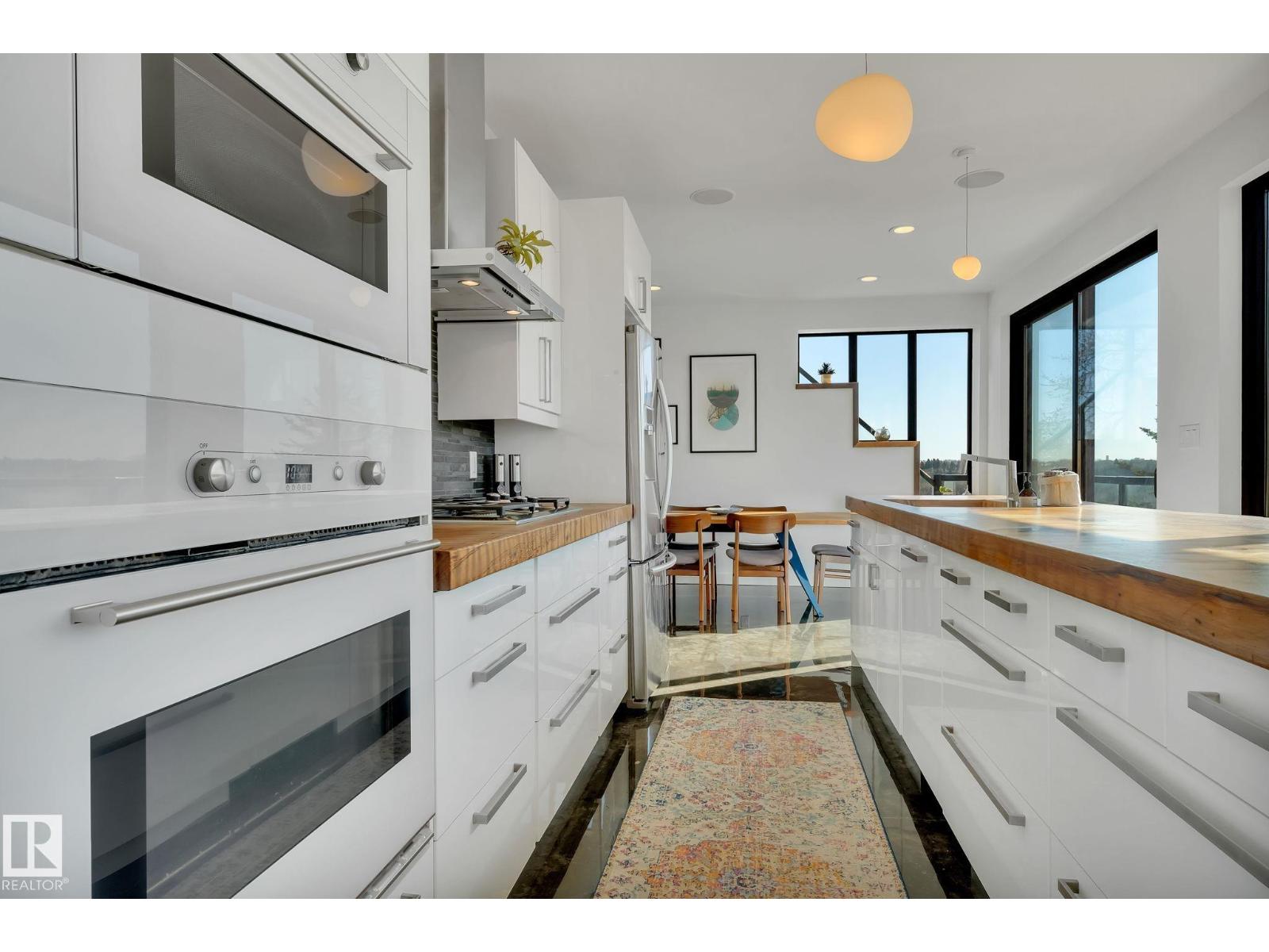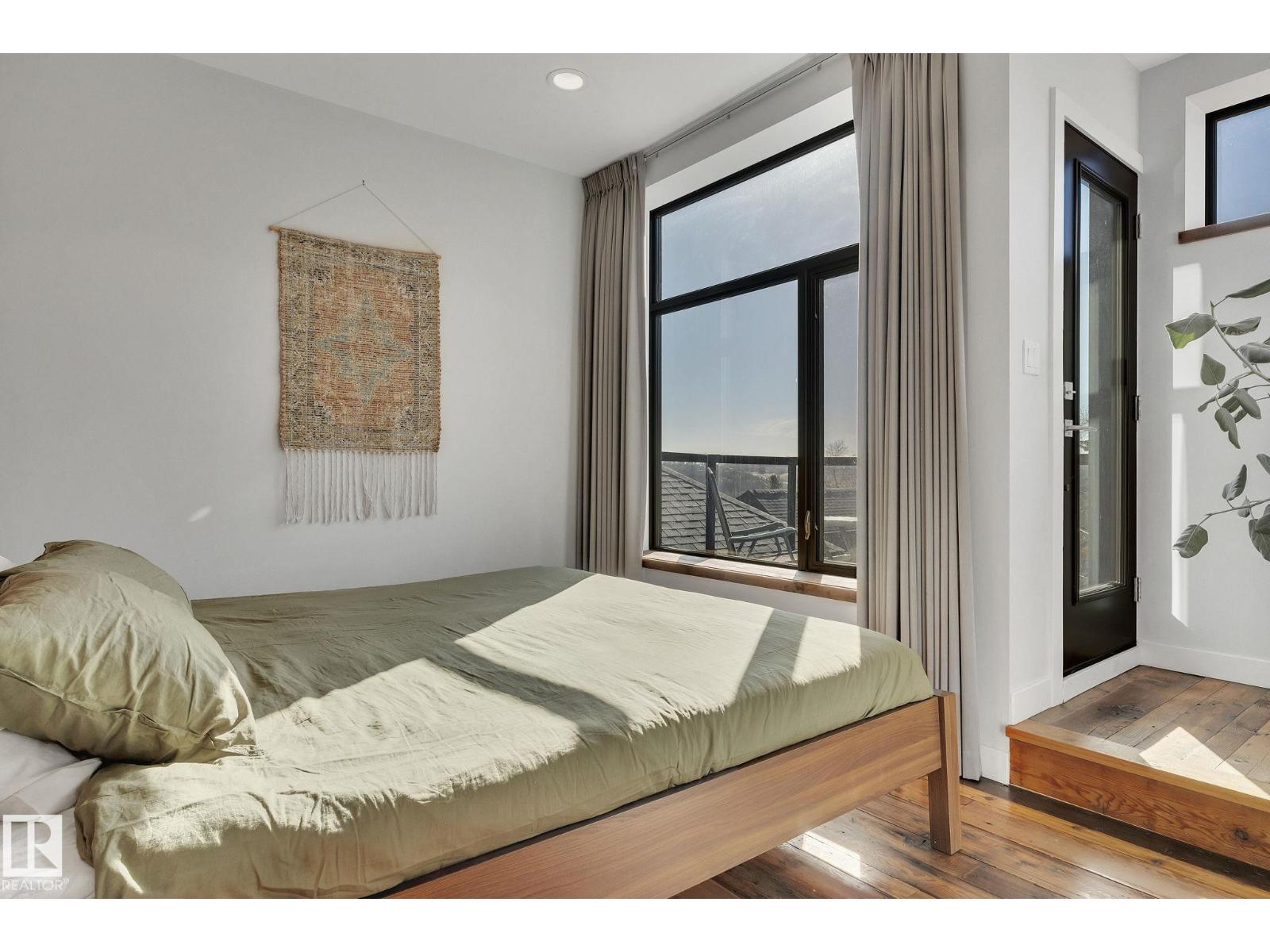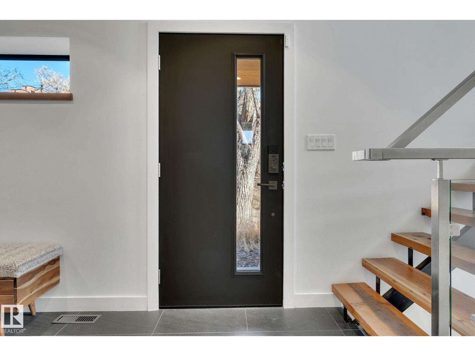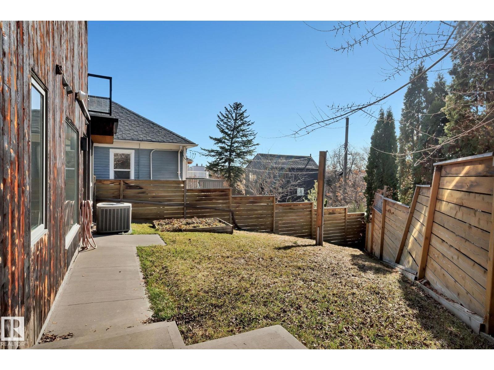 Steps from downtown and the river valley, this iconic modern home in edmonton’s riverdale offers unmatched access to trails, cafes, parks, and city life. enjoy stunning 270° views from the rooftop patio, overlooking lush river valley landscapes and skyline. architecturally striking, it features shou sugi ban cedar siding, polished concrete floors, built-in a/c, and a wired-in surround sound system. the open-concept main floor showcases glossy cabinetry and a dramatic 16-ft redwood island. the loft-inspired main-level primary suite offers reclaimed wood flooring, exposed brick, and a spa-like italian marble ensuite. three additional bedrooms, a stylish bath, and an office provide space for family or work. the walkout basement is made for entertaining, with a full bath, sauna, and custom bar. energy-efficient with green building touches and over 2,600 sqft of upscale living space, this home defines urban luxury steps from nature, and just minutes to downtown’s cafes, parks, trails, and river valley access. (id:62933)