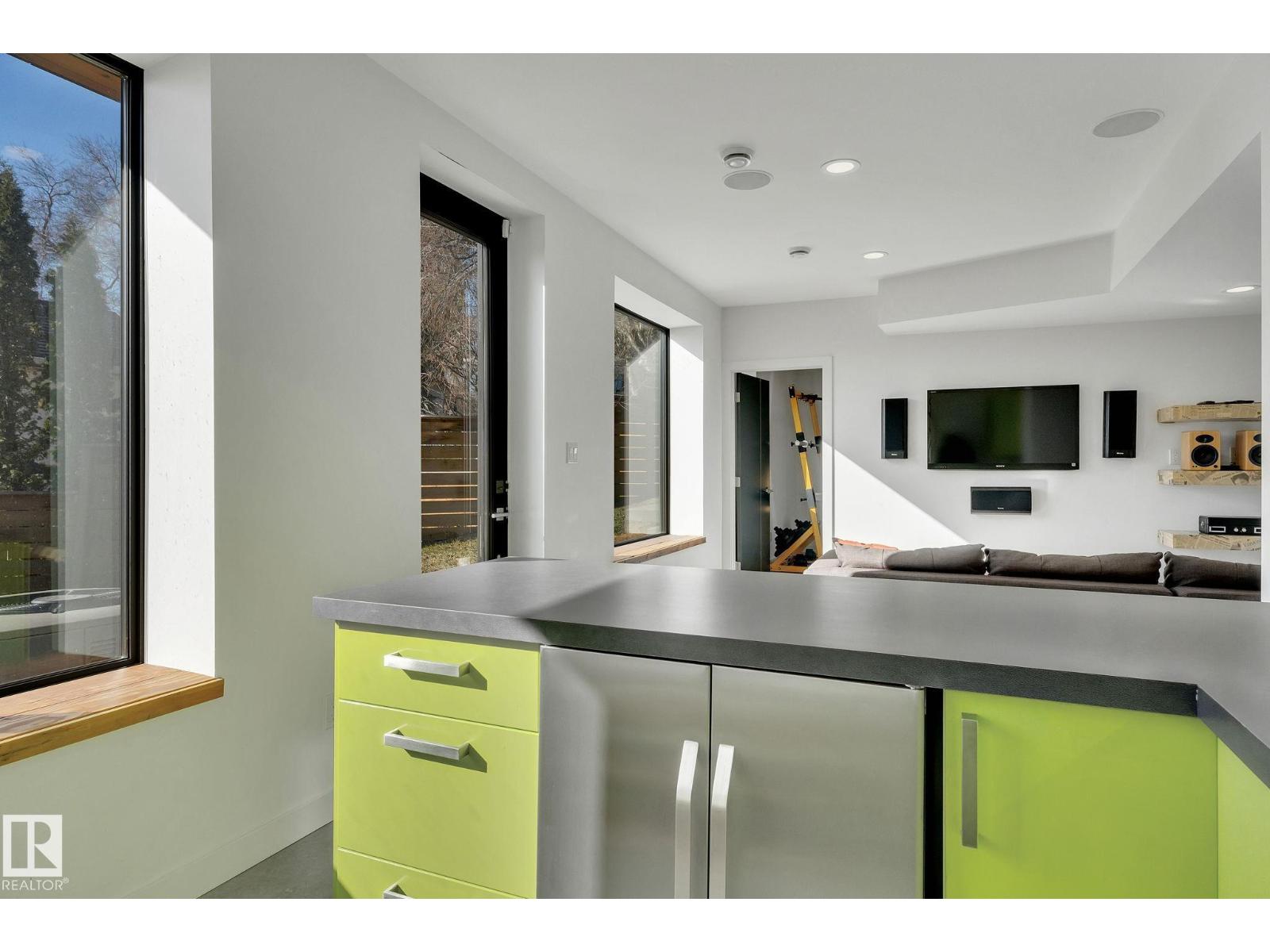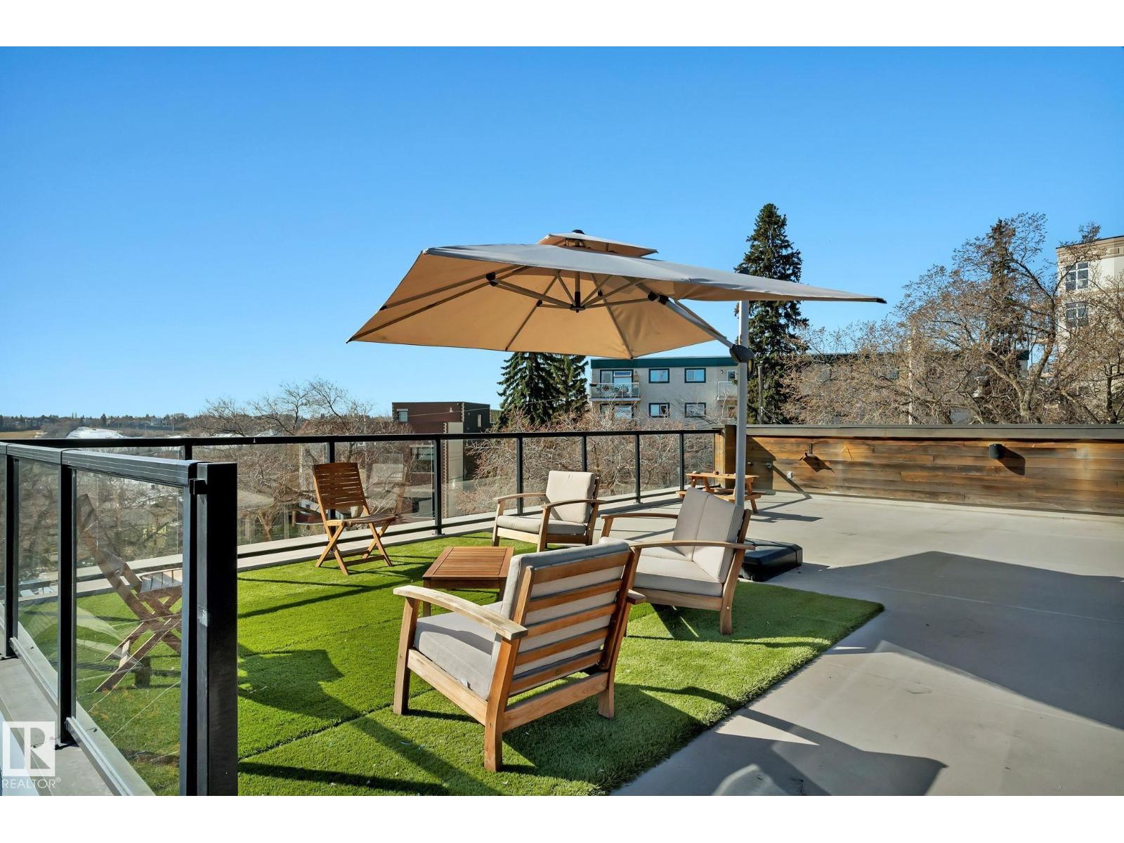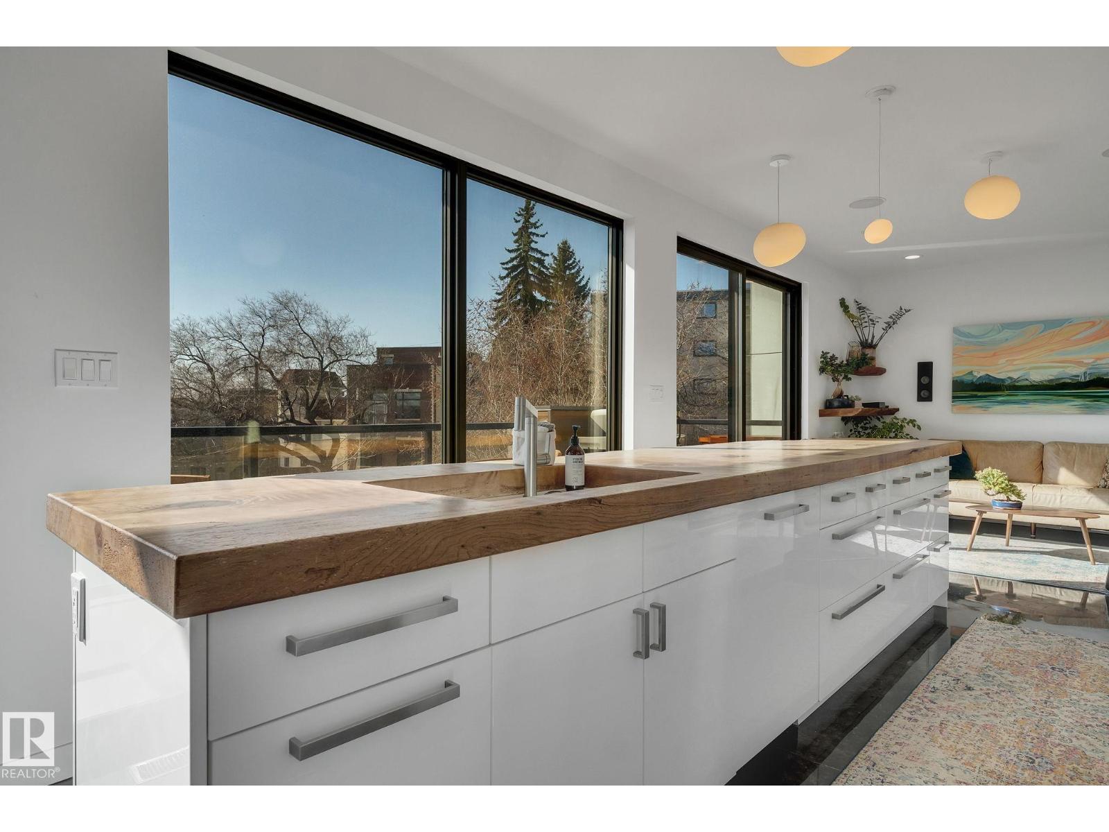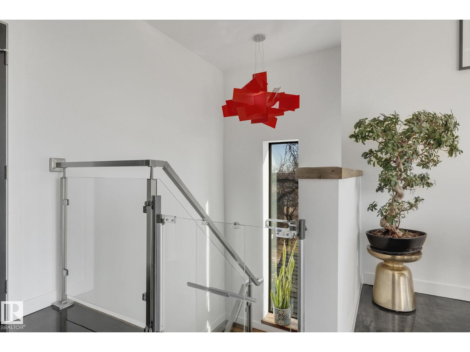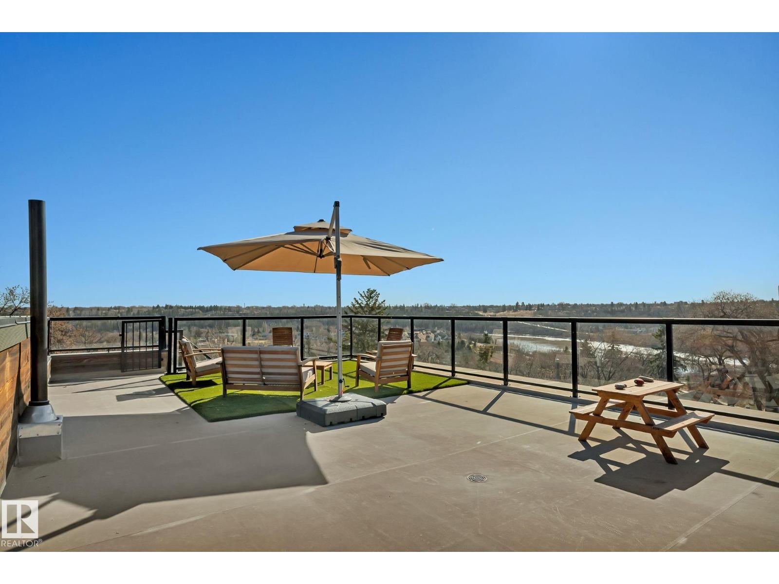 Steps from downtown and the river valley, this iconic modern home in edmonton’s riverdale offers unmatched access to trails, cafes, parks, and city life. enjoy stunning 270° views from the rooftop patio, overlooking lush river valley landscapes and skyline. architecturally striking, it features shou sugi ban cedar siding, polished concrete floors, built-in a/c, and a wired-in surround sound system. the open-concept main floor showcases glossy cabinetry and a dramatic 16-ft redwood island. the loft-inspired main-level primary suite offers reclaimed wood flooring, exposed brick, and a spa-like italian marble ensuite. three additional bedrooms, a stylish bath, and an office provide space for family or work. the walkout basement is made for entertaining, with a full bath, sauna, and custom bar. energy-efficient with green building touches and over 2,600 sqft of upscale living space, this home defines urban luxury steps from nature, and just minutes to downtown’s cafes, parks, trails, and river valley access. (id:62933)