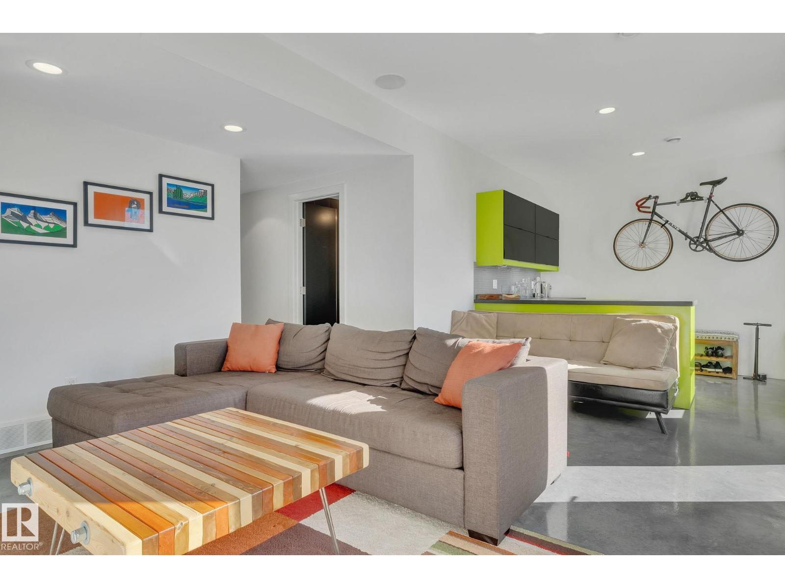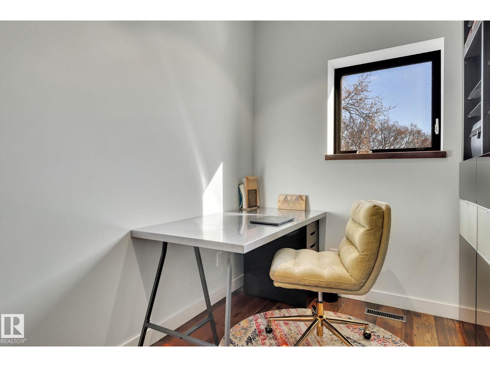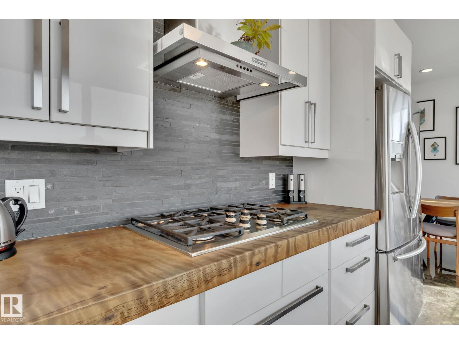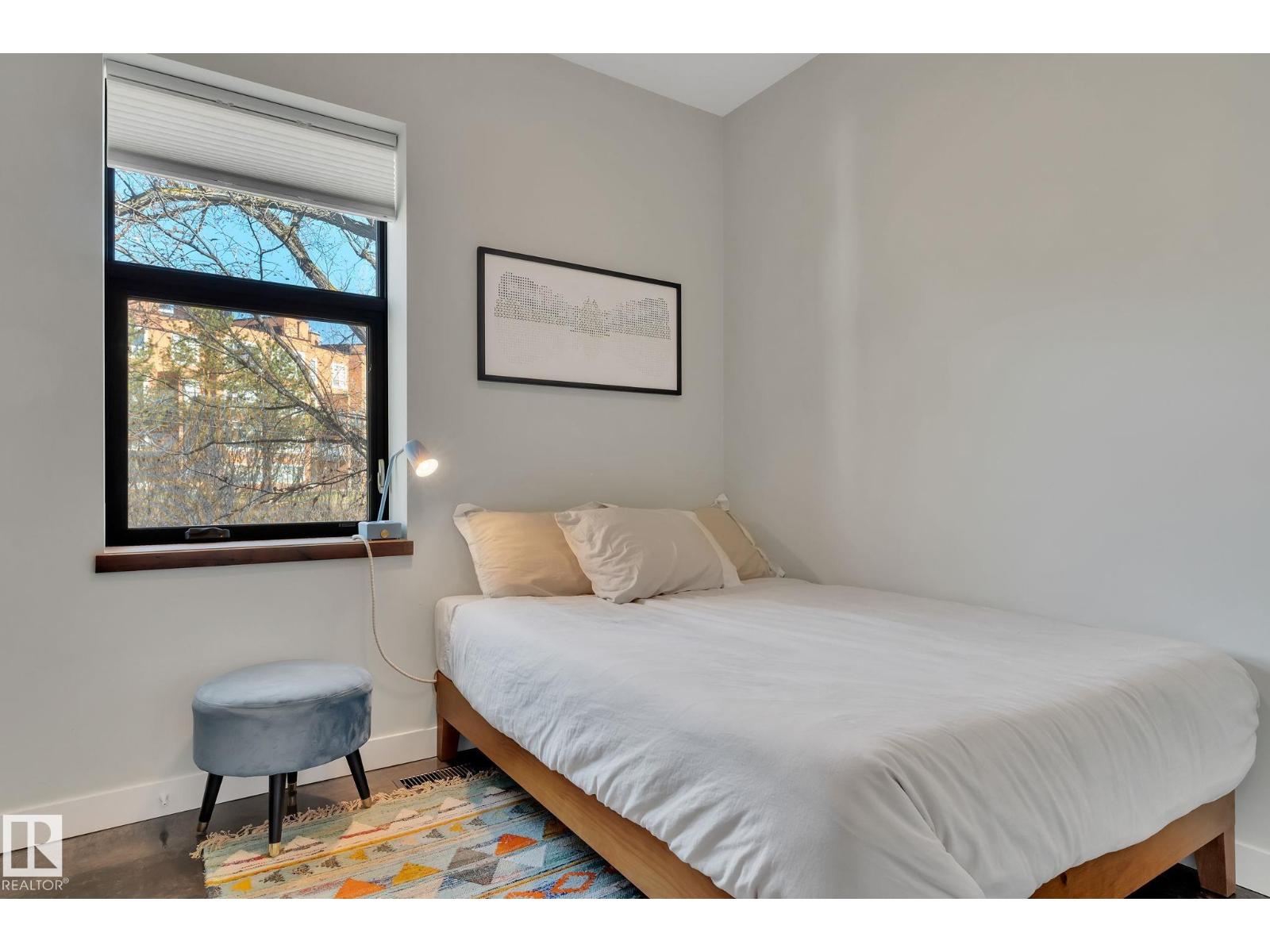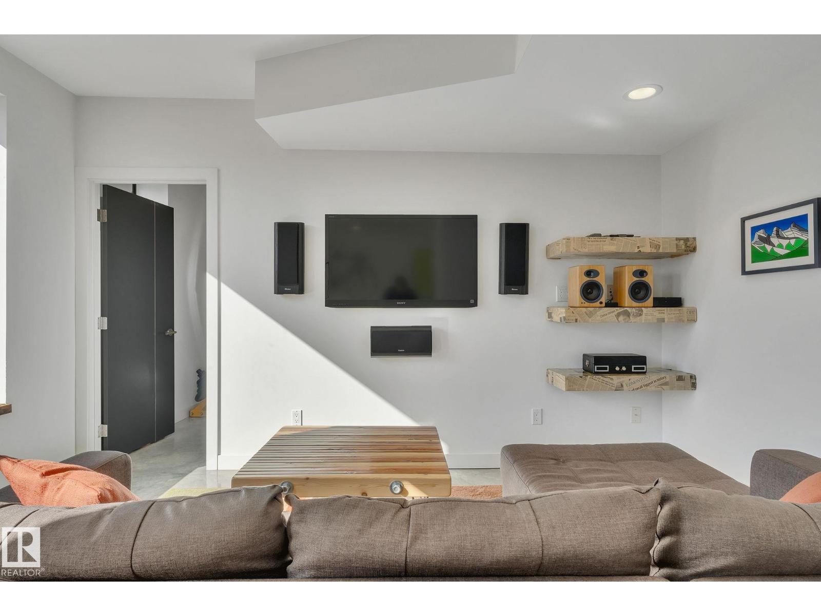 Steps from downtown and the river valley, this iconic modern home in edmonton’s riverdale offers unmatched access to trails, cafes, parks, and city life. enjoy stunning 270° views from the rooftop patio, overlooking lush river valley landscapes and skyline. architecturally striking, it features shou sugi ban cedar siding, polished concrete floors, built-in a/c, and a wired-in surround sound system. the open-concept main floor showcases glossy cabinetry and a dramatic 16-ft redwood island. the loft-inspired main-level primary suite offers reclaimed wood flooring, exposed brick, and a spa-like italian marble ensuite. three additional bedrooms, a stylish bath, and an office provide space for family or work. the walkout basement is made for entertaining, with a full bath, sauna, and custom bar. energy-efficient with green building touches and over 2,600 sqft of upscale living space, this home defines urban luxury steps from nature, and just minutes to downtown’s cafes, parks, trails, and river valley access. (id:62933)