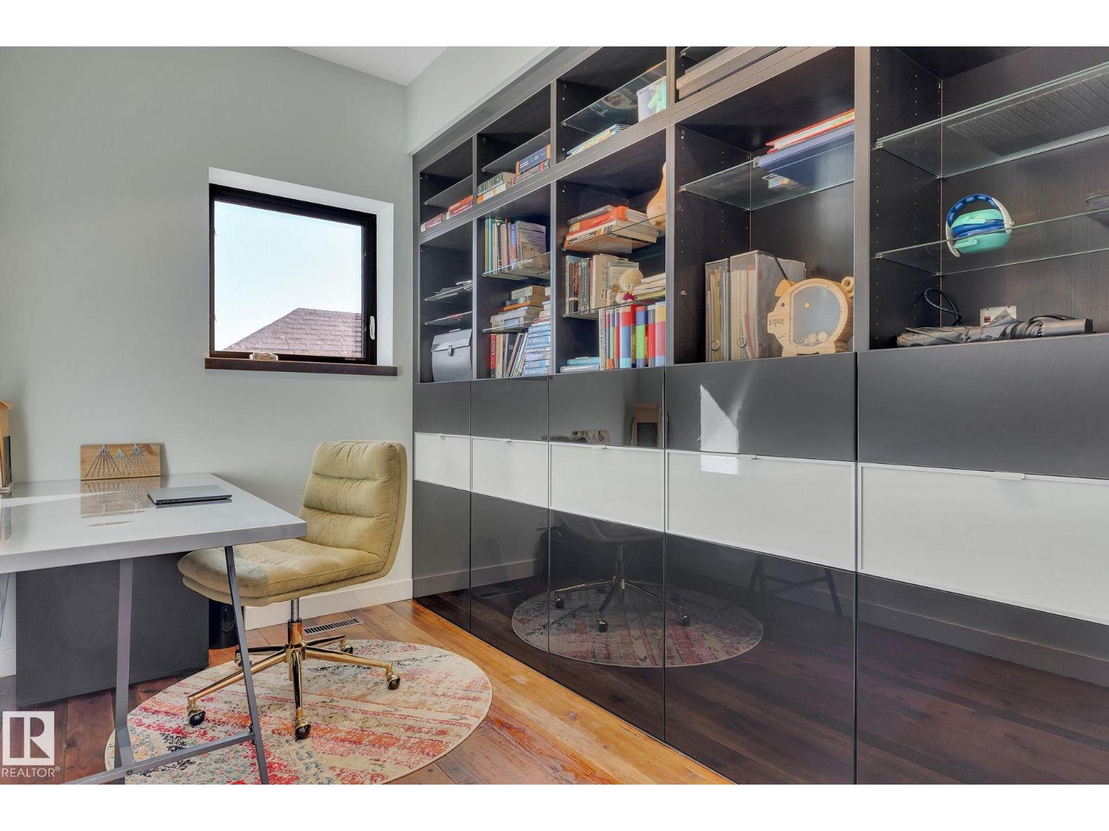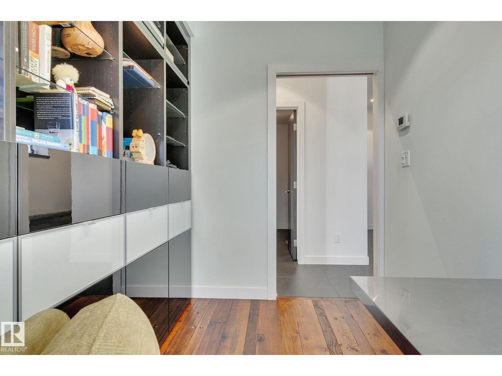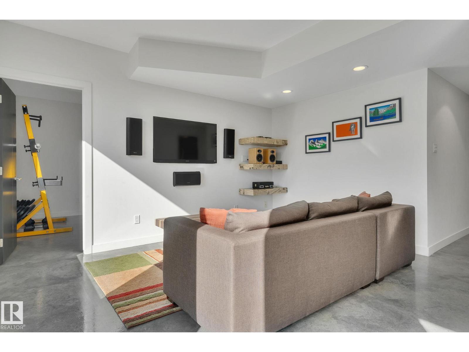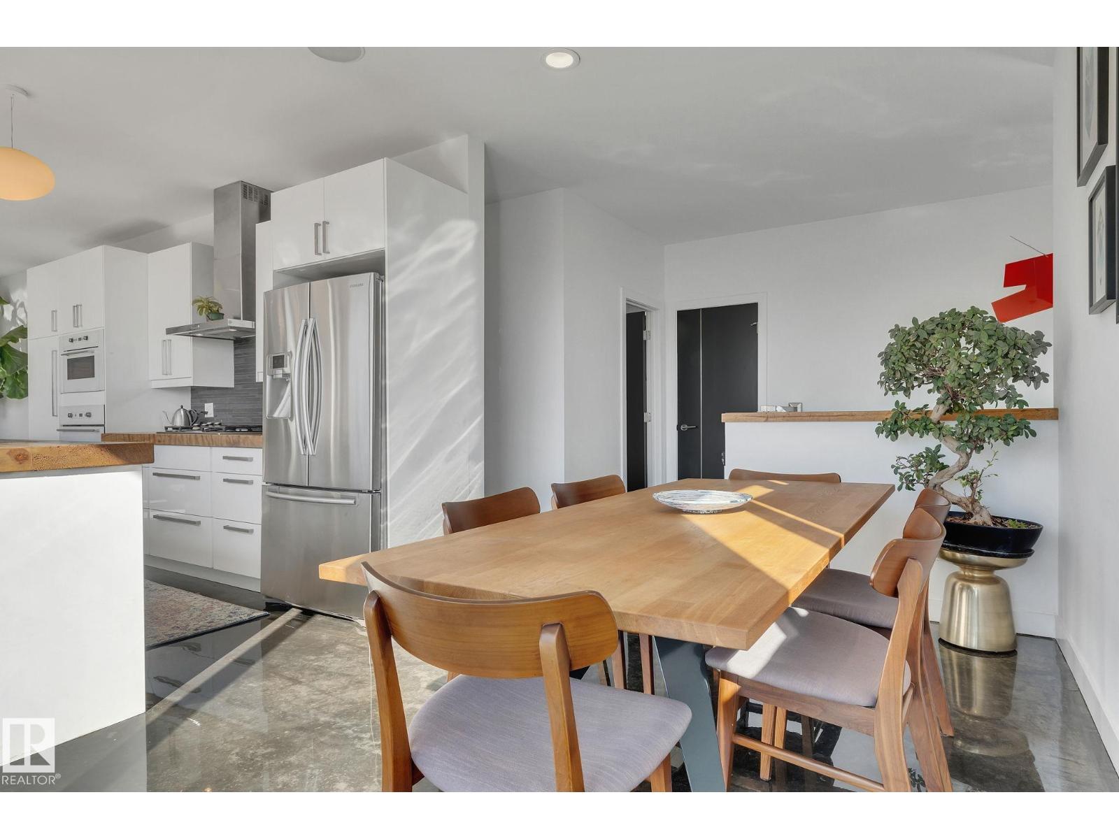 Steps from downtown and the river valley, this iconic modern home in edmonton’s riverdale offers unmatched access to trails, cafes, parks, and city life. enjoy stunning 270° views from the rooftop patio, overlooking lush river valley landscapes and skyline. architecturally striking, it features shou sugi ban cedar siding, polished concrete floors, built-in a/c, and a wired-in surround sound system. the open-concept main floor showcases glossy cabinetry and a dramatic 16-ft redwood island. the loft-inspired main-level primary suite offers reclaimed wood flooring, exposed brick, and a spa-like italian marble ensuite. three additional bedrooms, a stylish bath, and an office provide space for family or work. the walkout basement is made for entertaining, with a full bath, sauna, and custom bar. energy-efficient with green building touches and over 2,600 sqft of upscale living space, this home defines urban luxury steps from nature, and just minutes to downtown’s cafes, parks, trails, and river valley access. (id:62933)