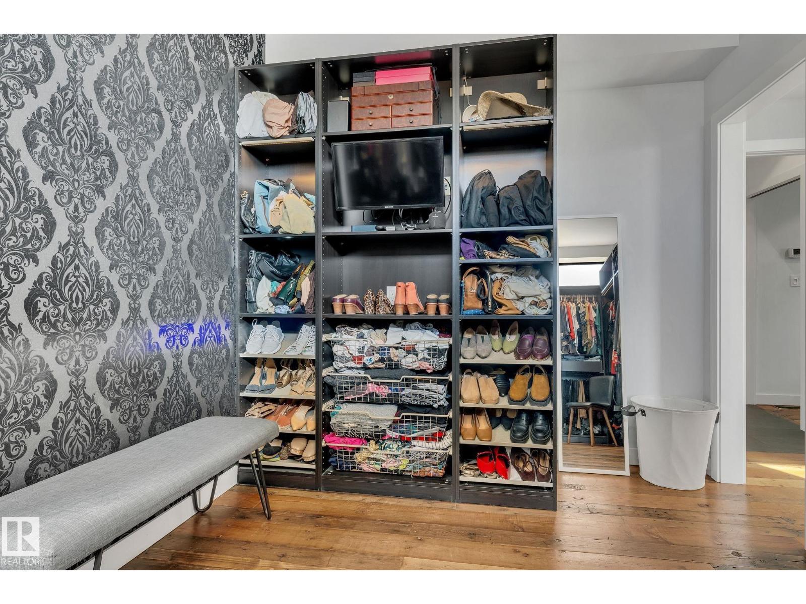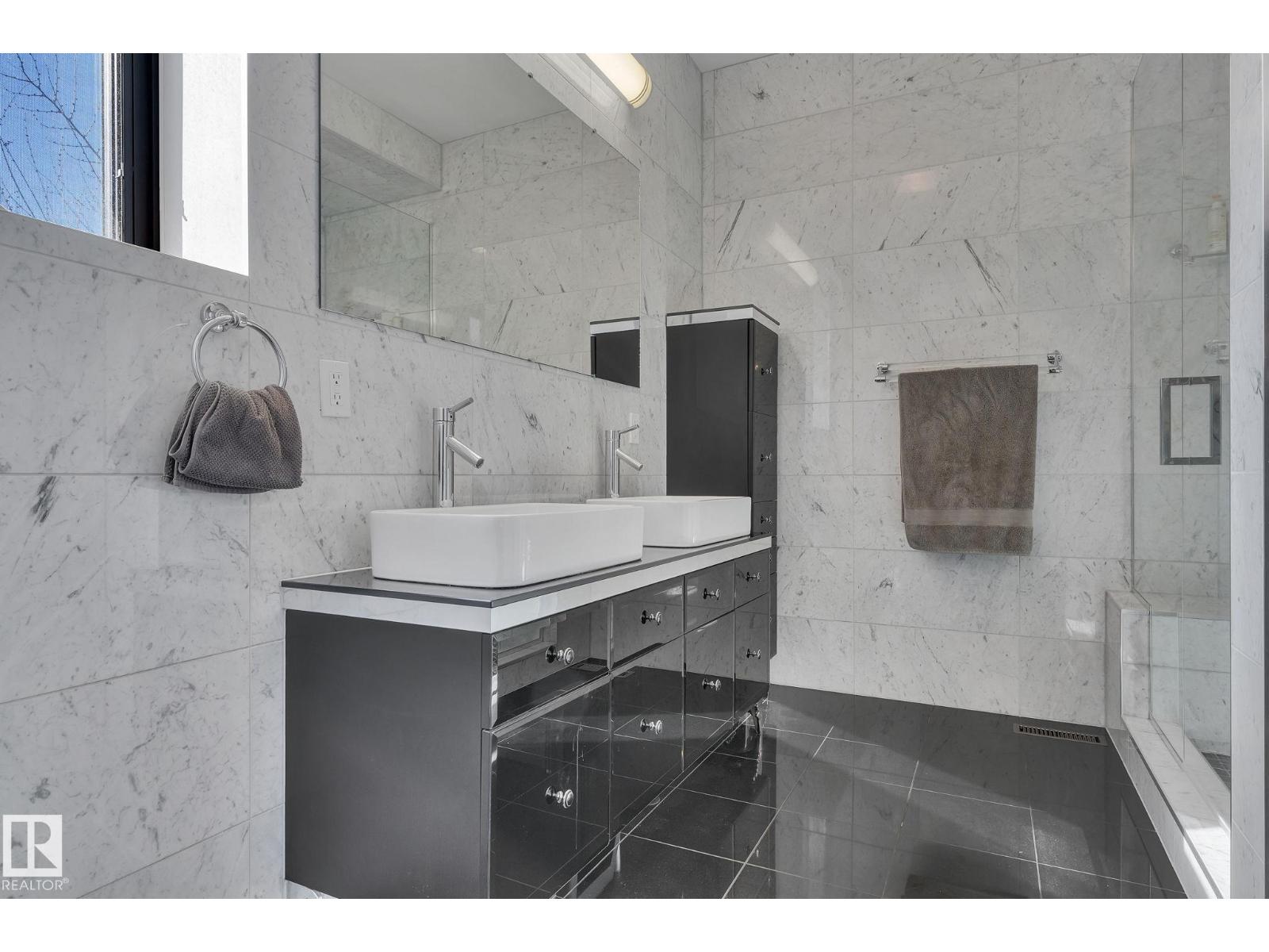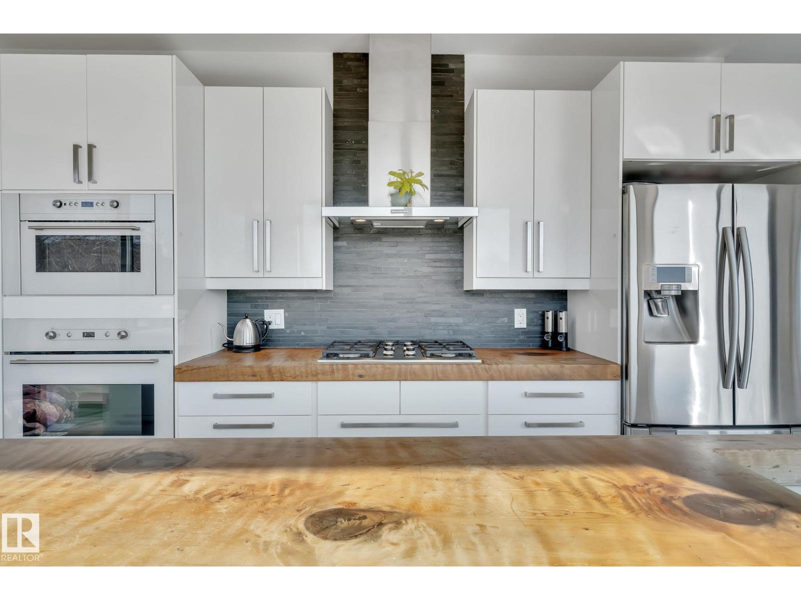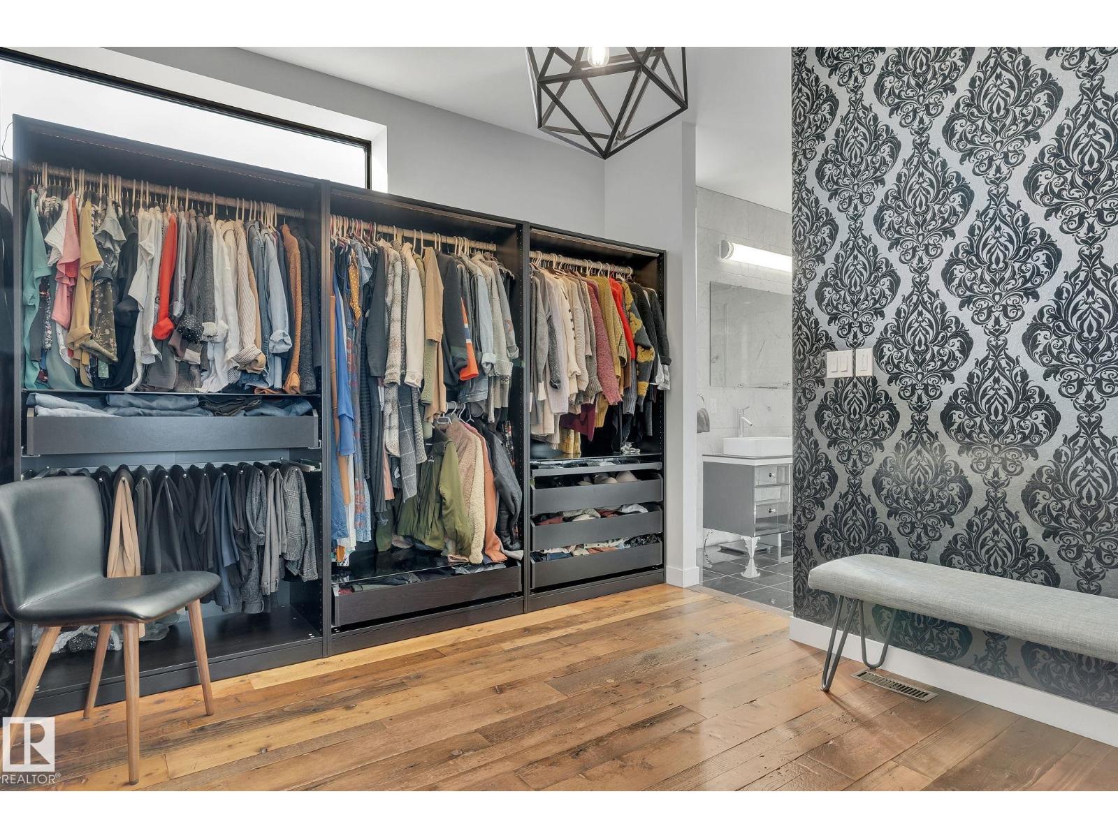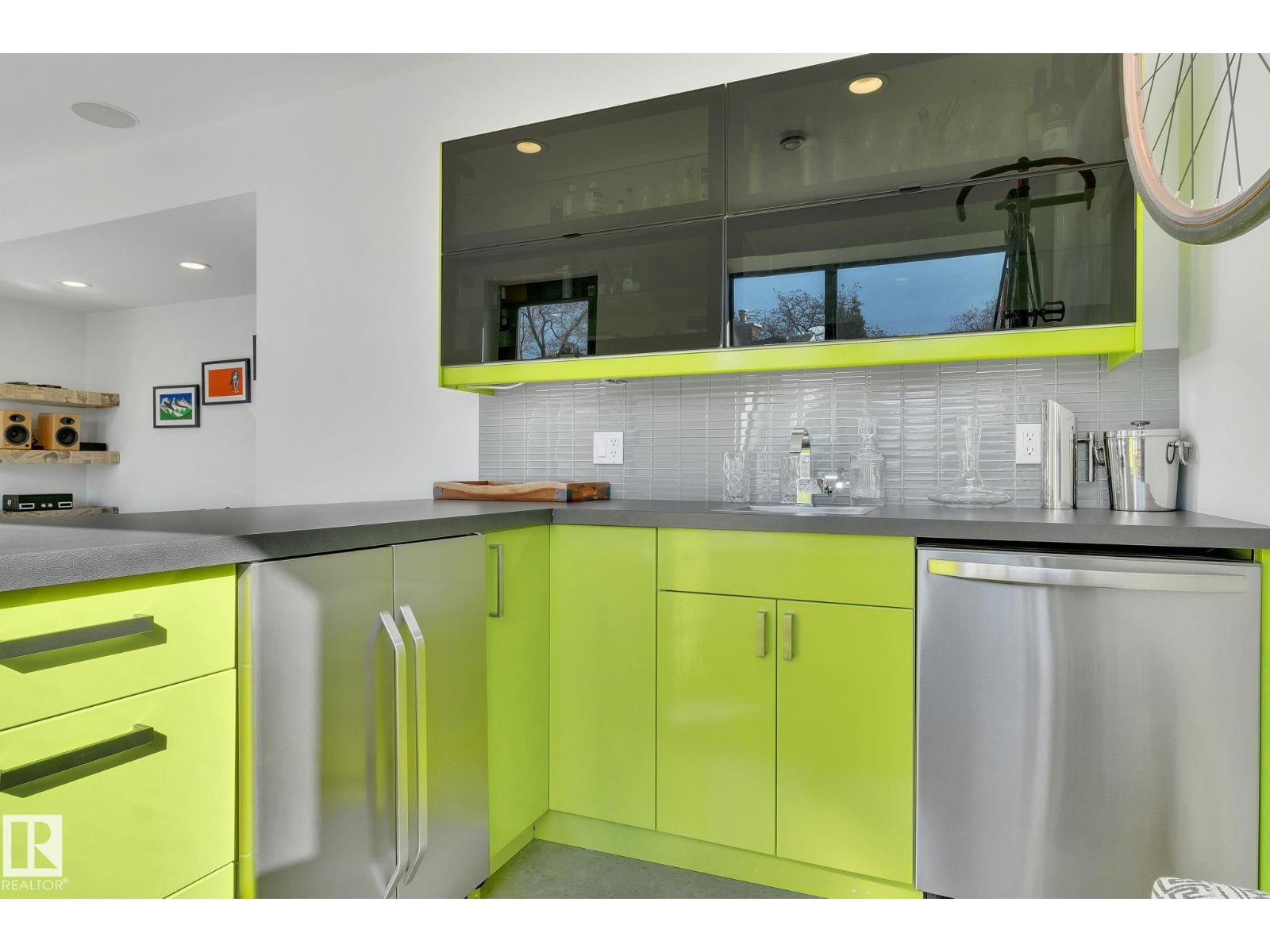 Steps from downtown and the river valley, this iconic modern home in edmonton’s riverdale offers unmatched access to trails, cafes, parks, and city life. enjoy stunning 270° views from the rooftop patio, overlooking lush river valley landscapes and skyline. architecturally striking, it features shou sugi ban cedar siding, polished concrete floors, built-in a/c, and a wired-in surround sound system. the open-concept main floor showcases glossy cabinetry and a dramatic 16-ft redwood island. the loft-inspired main-level primary suite offers reclaimed wood flooring, exposed brick, and a spa-like italian marble ensuite. three additional bedrooms, a stylish bath, and an office provide space for family or work. the walkout basement is made for entertaining, with a full bath, sauna, and custom bar. energy-efficient with green building touches and over 2,600 sqft of upscale living space, this home defines urban luxury steps from nature, and just minutes to downtown’s cafes, parks, trails, and river valley access. (id:62933)