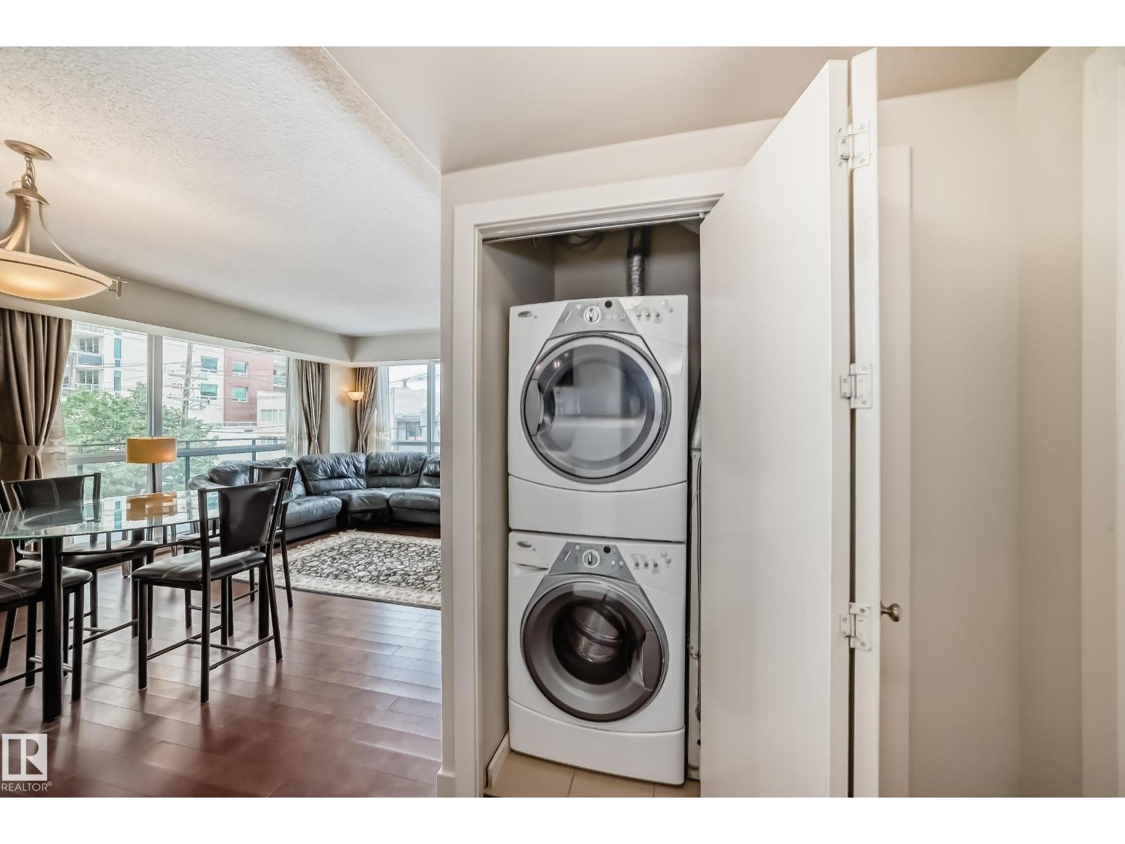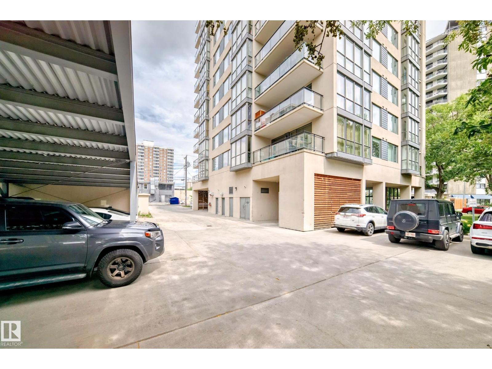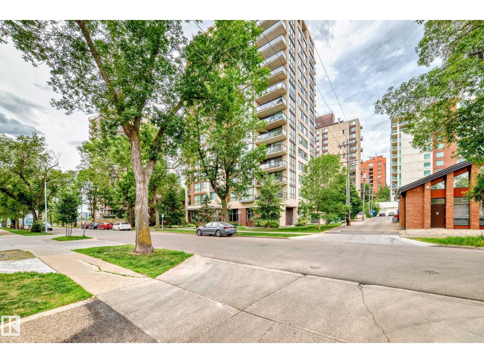 Concrete construction! spacious 1,121 sq ft 3-bedroom condo in uptown estates. this well-designed second-floor unit features a modern open-concept layout with upgraded tile flooring, quartz countertops, and stylish cabinetry, along with a bright dining nook. the living area offers engineered hardwood and access to a private balcony. the king-sized primary suite includes a large walk-in closet and a 4-piece ensuite. the second bedroom is generously sized, while the third bedroom works perfectly as a guest room, office, or den. a full 4-piece main bath, in-suite laundry with storage, and central a/c add convenience. residents also enjoy access to a fitness centre. ideally located just off jasper avenue—steps to the river valley, promenade, and downtown core. one titled parking stall is included. an additional parking stall is available for purchase separately. (id:62933)