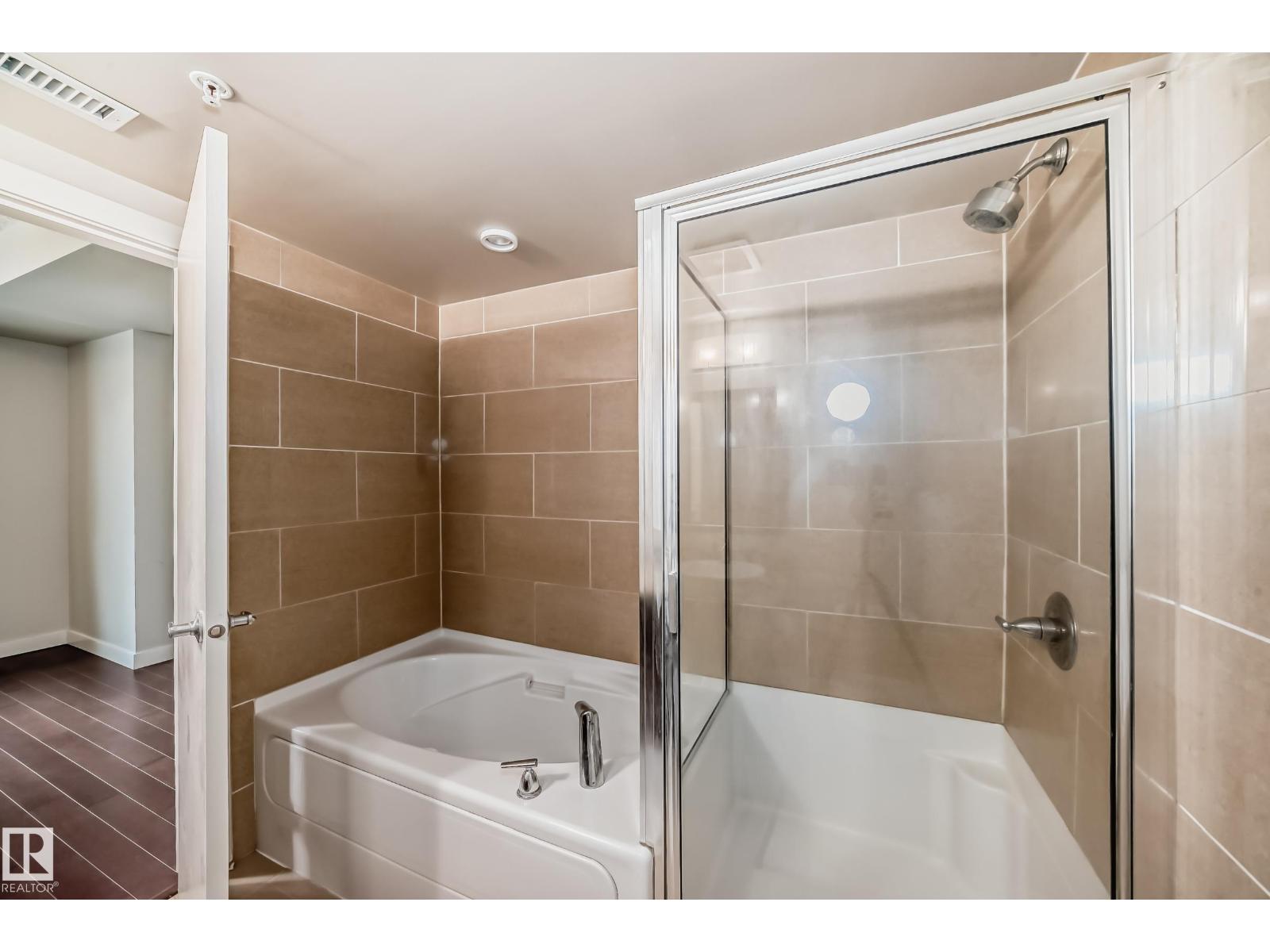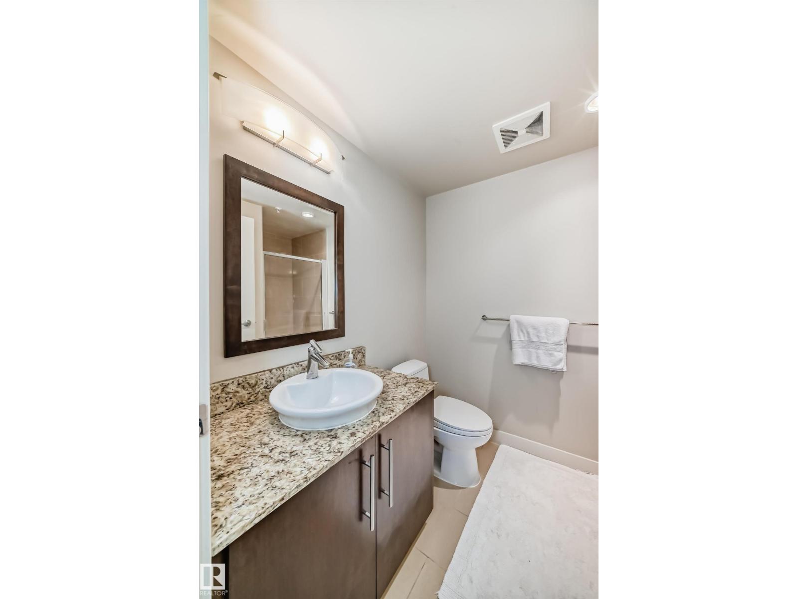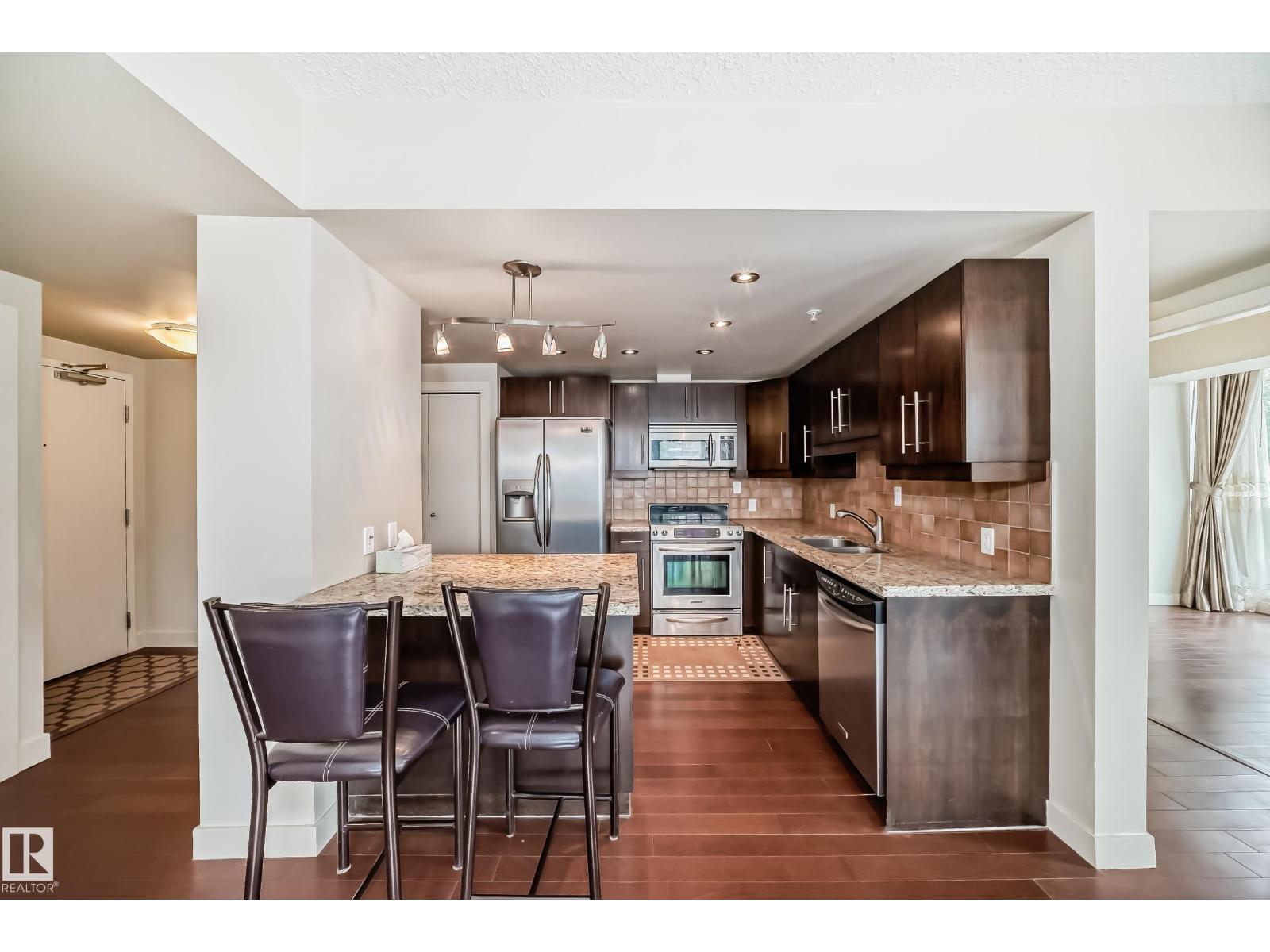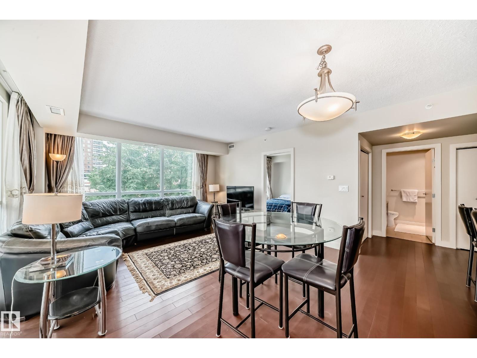 Concrete construction! spacious 1,121 sq ft 3-bedroom condo in uptown estates. this well-designed second-floor unit features a modern open-concept layout with upgraded tile flooring, quartz countertops, and stylish cabinetry, along with a bright dining nook. the living area offers engineered hardwood and access to a private balcony. the king-sized primary suite includes a large walk-in closet and a 4-piece ensuite. the second bedroom is generously sized, while the third bedroom works perfectly as a guest room, office, or den. a full 4-piece main bath, in-suite laundry with storage, and central a/c add convenience. residents also enjoy access to a fitness centre. ideally located just off jasper avenue—steps to the river valley, promenade, and downtown core. one titled parking stall is included. an additional parking stall is available for purchase separately. (id:62933)