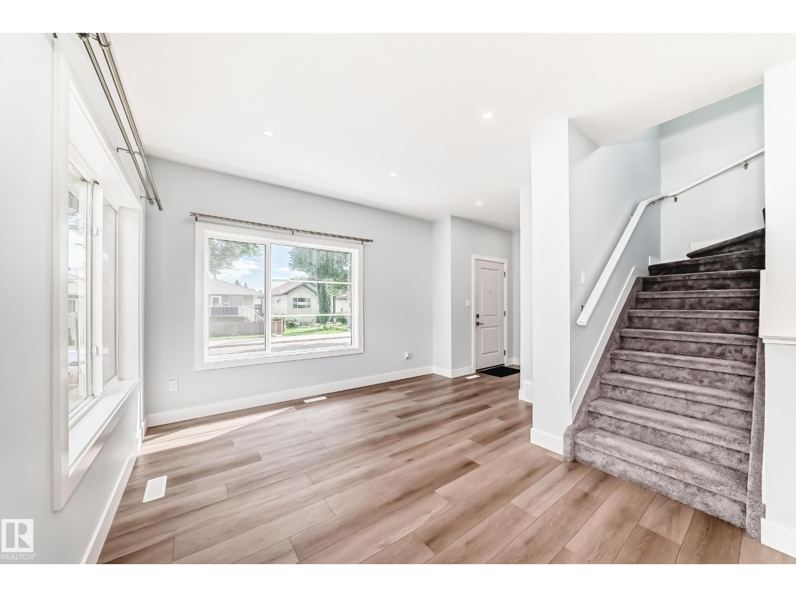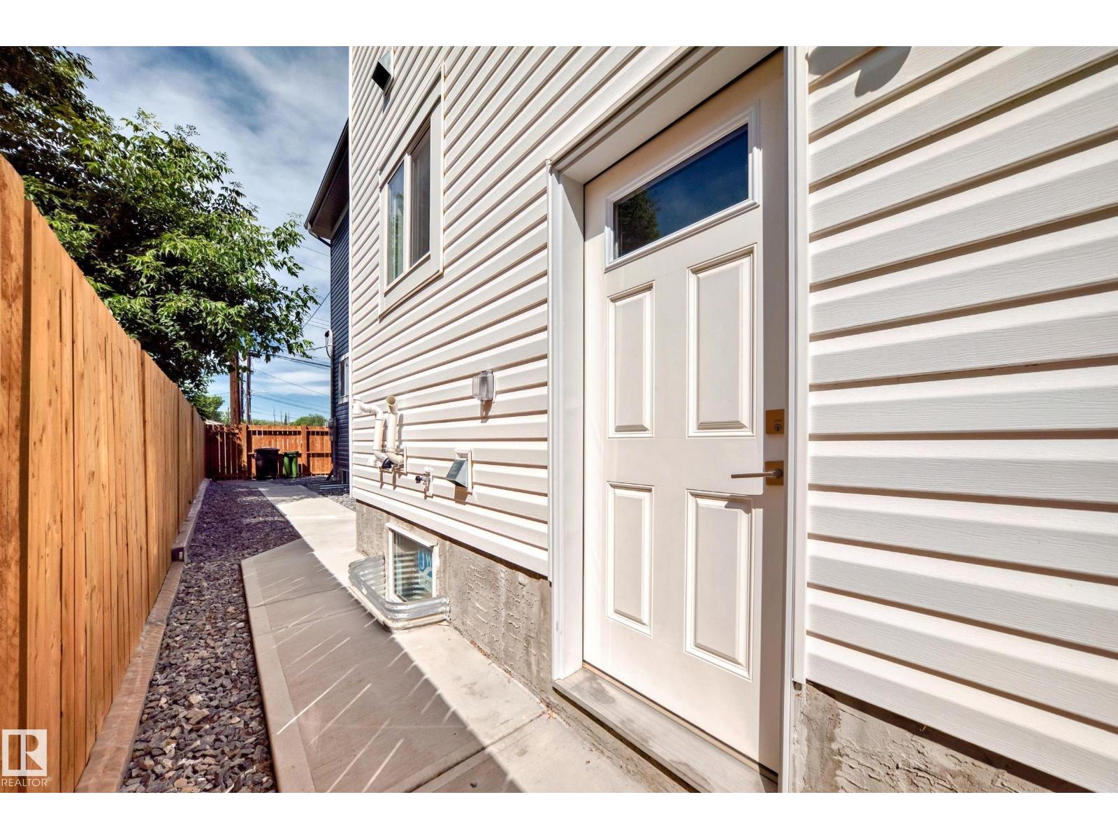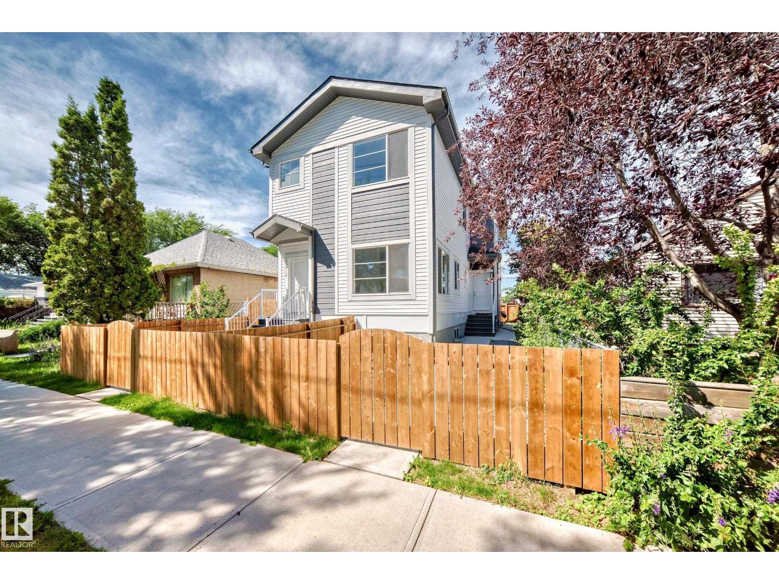 Welcome to this stunning 2 storey front duplex situated in the convenient, mature central neighborhood location! main floor greets you with open concept 9 feet ceiling living room offers large & bright windows for plenty of natural lighting. spacious kitchen with modern high-gloss white color cabinetries, quartz countertops, adjacent to dining room w patio door to deck, fenced & landscaped back yard. upper level c/w 3 bedrooms, all with large windows, a 4 pc bathroom & master bedroom w a 3 pc ensuite & a walk-in closet. separate side door entrance to 9 feet ceiling basement has plenty spaces for future basement development. only a few steps calder school/saint edmund catholic school/park/community c/grand trunk off-leash dog park & all amenities. convenient bus stop at the front door. back yard gravel area is high potential for future garage build. quick possession avail. come & check this out & make this yours! (id:62933)