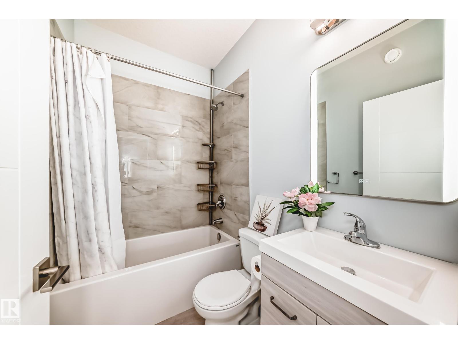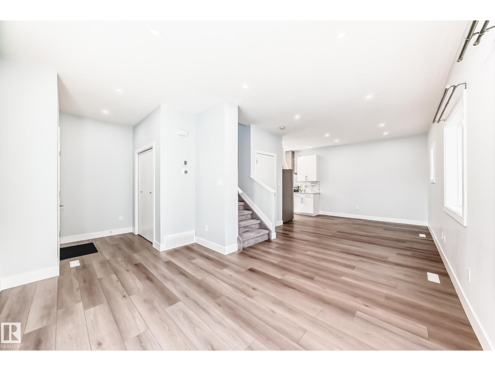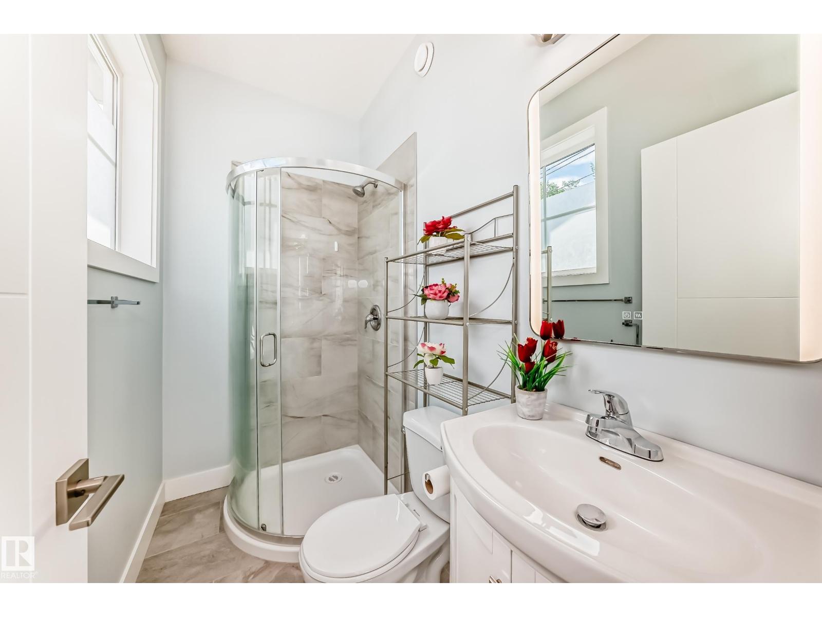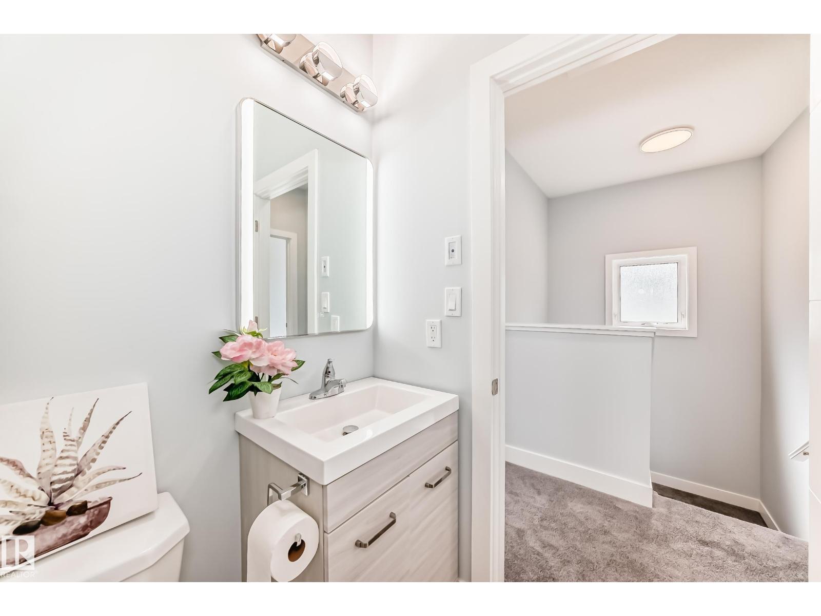Welcome to this stunning 2 storey front duplex situated in the convenient, mature central neighborhood location! main floor greets you with open concept 9 feet ceiling living room offers large & bright windows for plenty of natural lighting. spacious kitchen with modern high-gloss white color cabinetries, quartz countertops, adjacent to dining room w patio door to deck, fenced & landscaped back yard. upper level c/w 3 bedrooms, all with large windows, a 4 pc bathroom & master bedroom w a 3 pc ensuite & a walk-in closet. separate side door entrance to 9 feet ceiling basement has plenty spaces for future basement development. only a few steps calder school/saint edmund catholic school/park/community c/grand trunk off-leash dog park & all amenities. convenient bus stop at the front door. back yard gravel area is high potential for future garage build. quick possession avail. come & check this out & make this yours! (id:62933)
