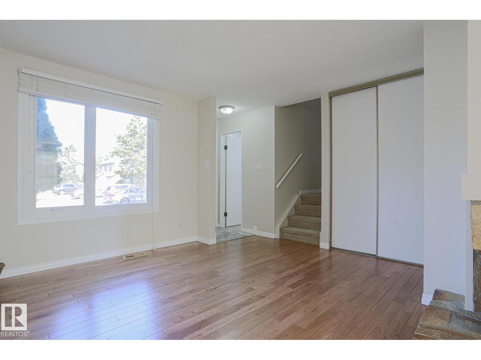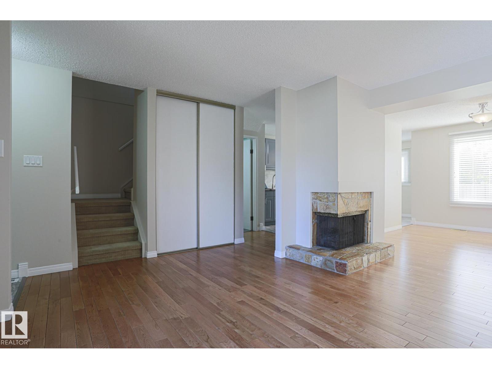 Freshly painted, professionally cleaned and beautifully renovated townhome with newer ikea lidingo kitchen with soft close doors and drawers. gorgeous hardwood floors in the living, dining and hallway areas. both bathrooms were renovated too and look great! bright living room features a wood burning fireplace. both the kitchen dinette and separate dining room overlook the peaceful and private fenced back yard. upstairs the huge primary bedroom with wall to wall closet has shelving too for all your wardrobe and accessories. two more good-sized bedrooms and a modern 4 piece bath plus linen closet complete the upper level. partly finished basement has a fun games area and spacious family room for relaxing with friends and family. the utility/storage/laundry room has lots of space for all your seasonal belongings, hobbies and crafts. central a/c too! two assigned stalls right outside your front door! century park lrt station walkway to overpass is out the back gate. (19 min. u of a) shopping plazas close! (id:62933)