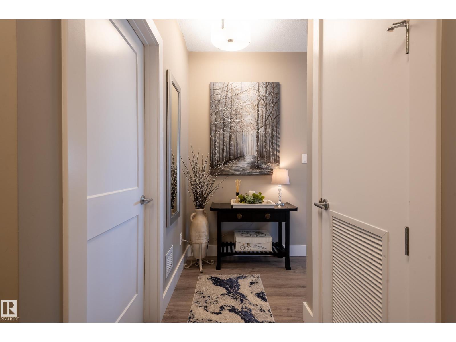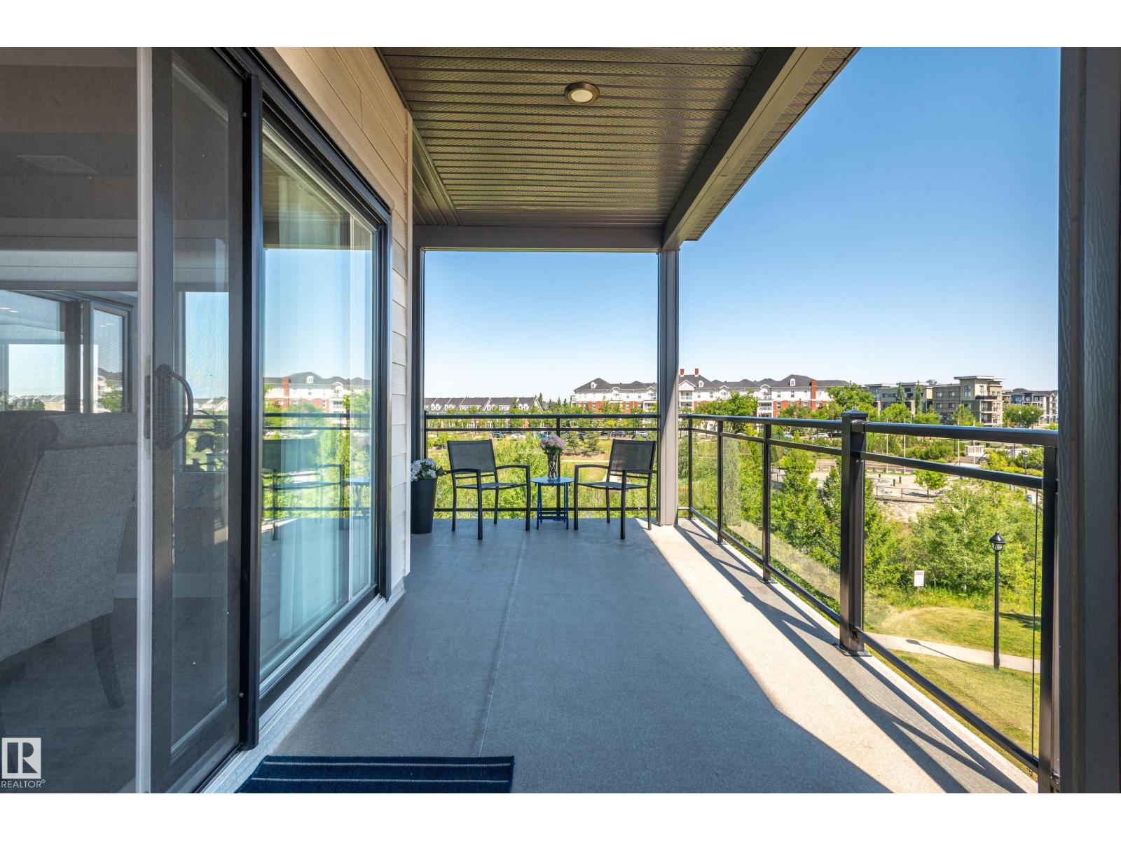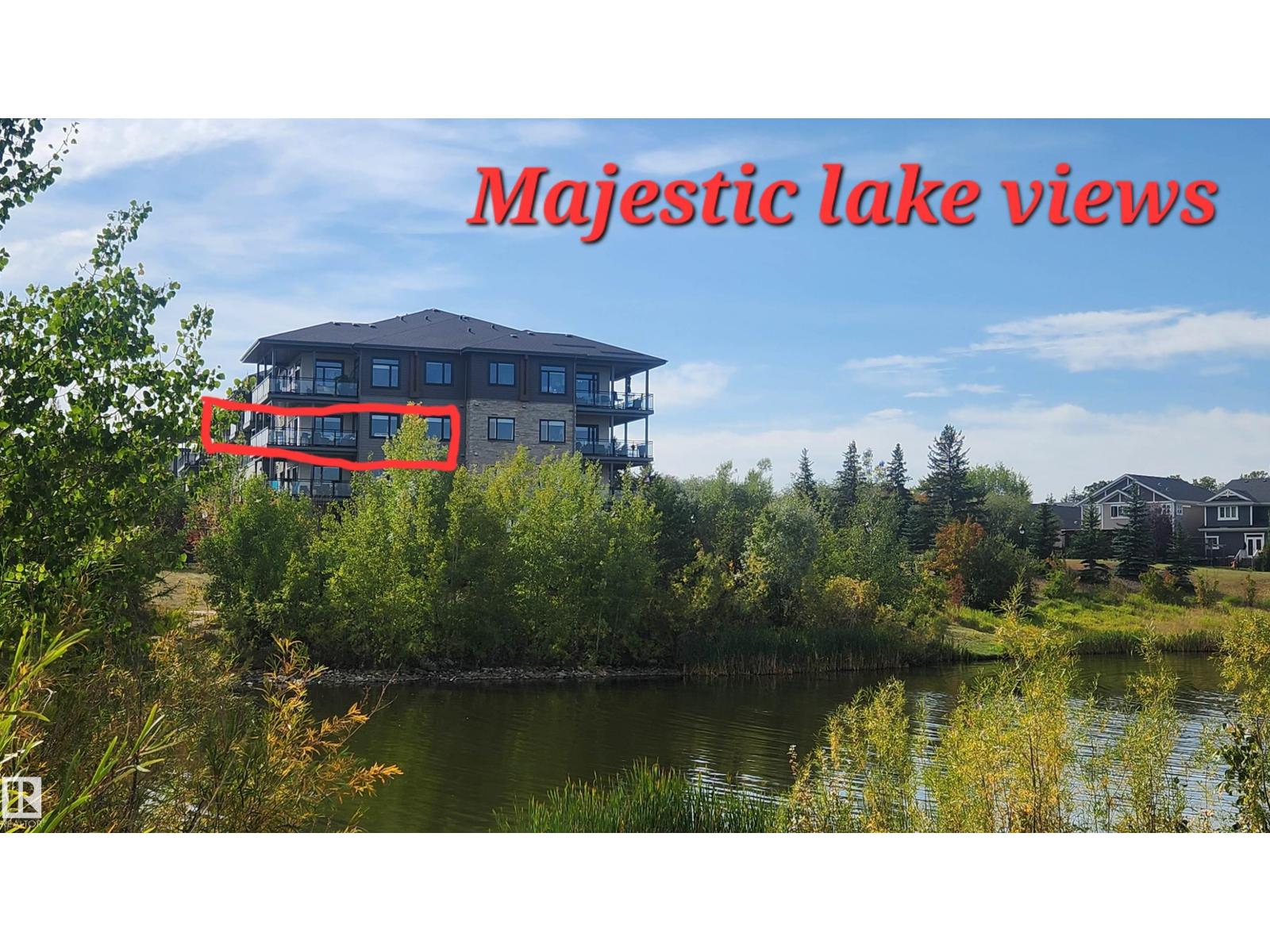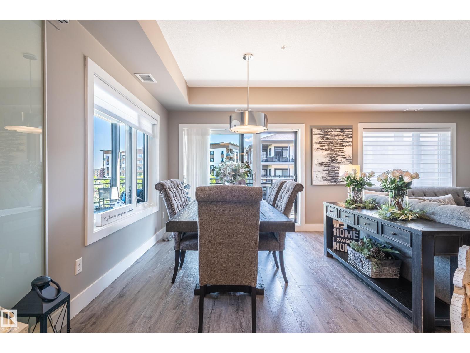 Extensively upgraded lake-facing corner unit in sought-after veritas, offering awe-inspiring views from every angle. this immaculate one-owner home features 2 spacious bdrms, 2 baths, & a bright den. enjoy sunny mornings & shady evenings on wrap-around deck. the two-tone kitchen is a standout with upgraded appliances, a tile backsplash, & a 6” extended island with added cabinetry on both sides. designer lighting, magazine-worthy layout & décor, & a spa-inspired ensuite. a/c. over $25,000 in thoughtful upgrades also include barn doors, premium flooring, custom shower tile, additional quartz countertops, blinds, hardware, & a second (surface) parking stall that adds everyday convenience, plus a heated stall with secure storage. pride of ownership shines throughout—clean, cozy, and stylish. located steps from countless amenities in one of edmonton’s most desirable communities, this home offers a seamless blend of comfort, elegance, and breathtaking views. style meets serenity in this griesbach gem! (id:62933)
