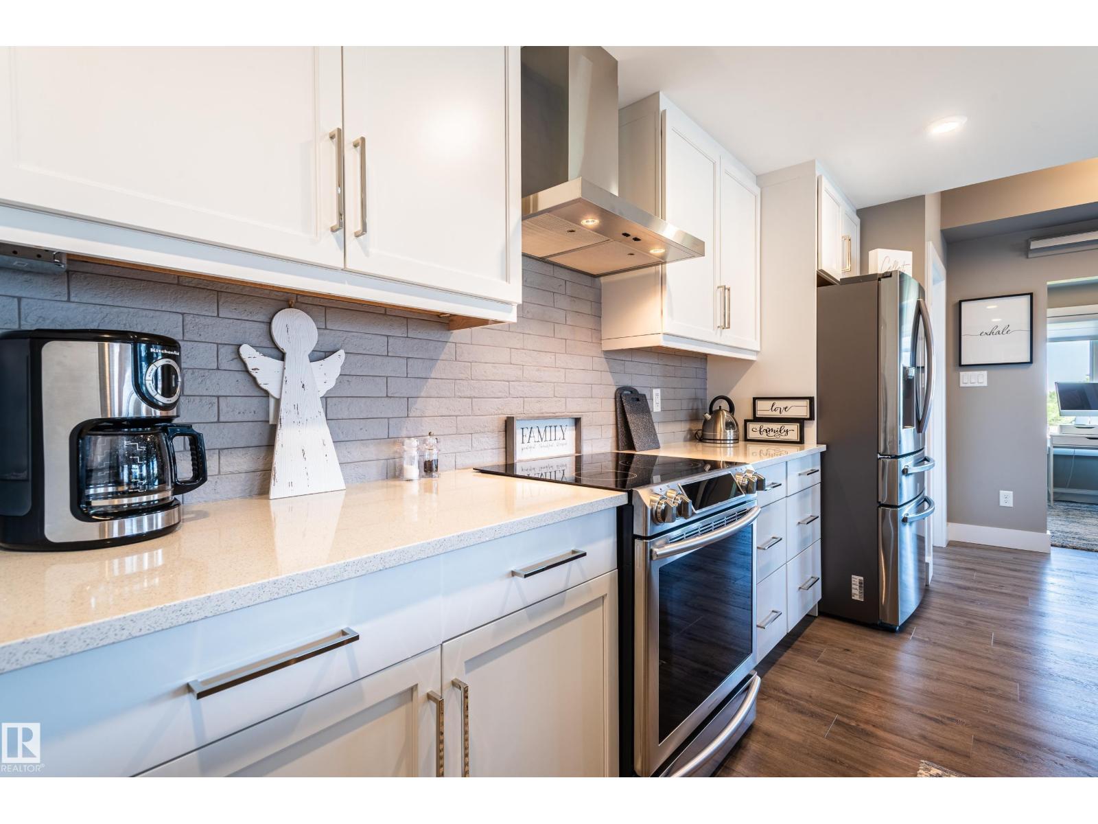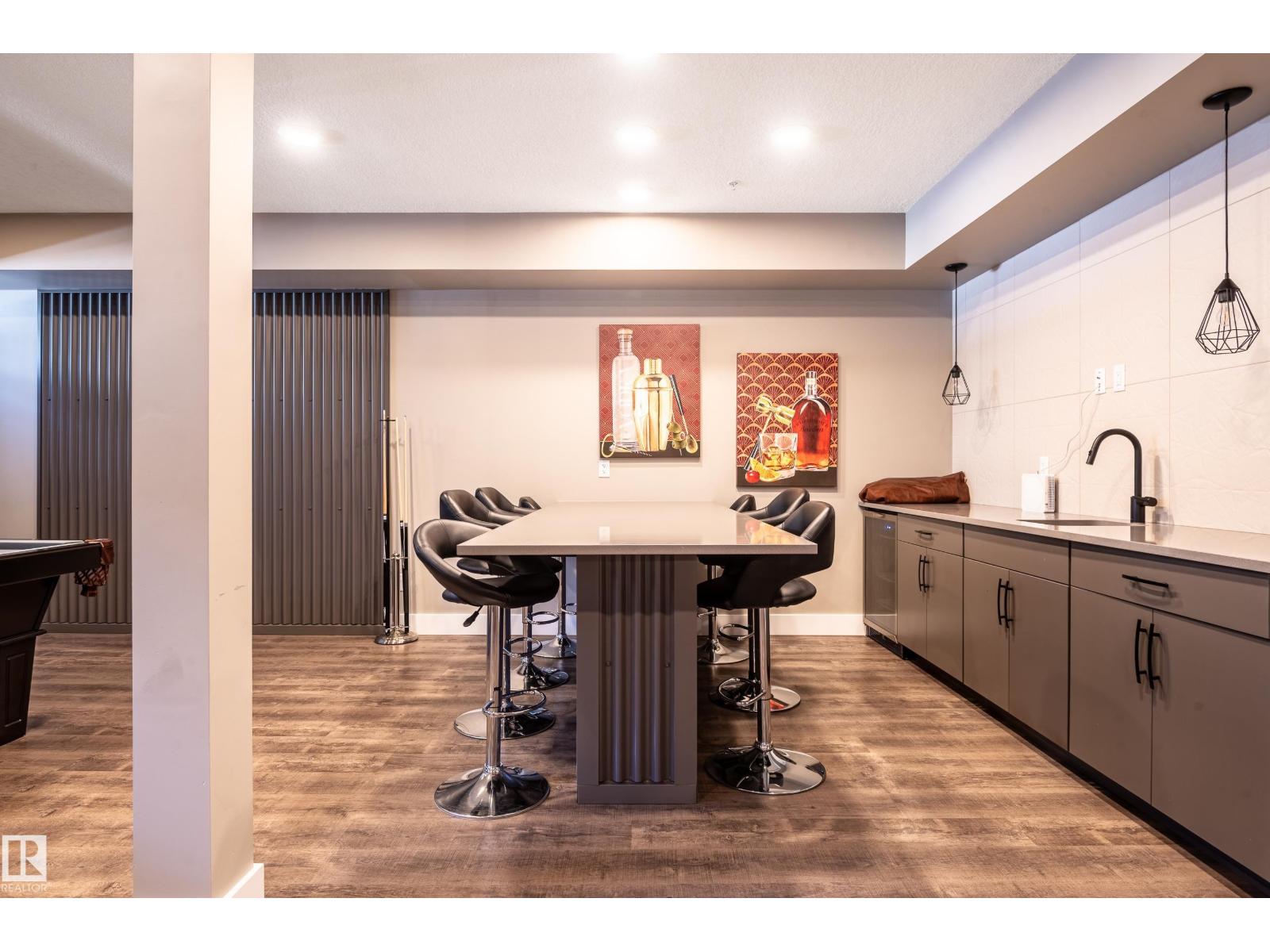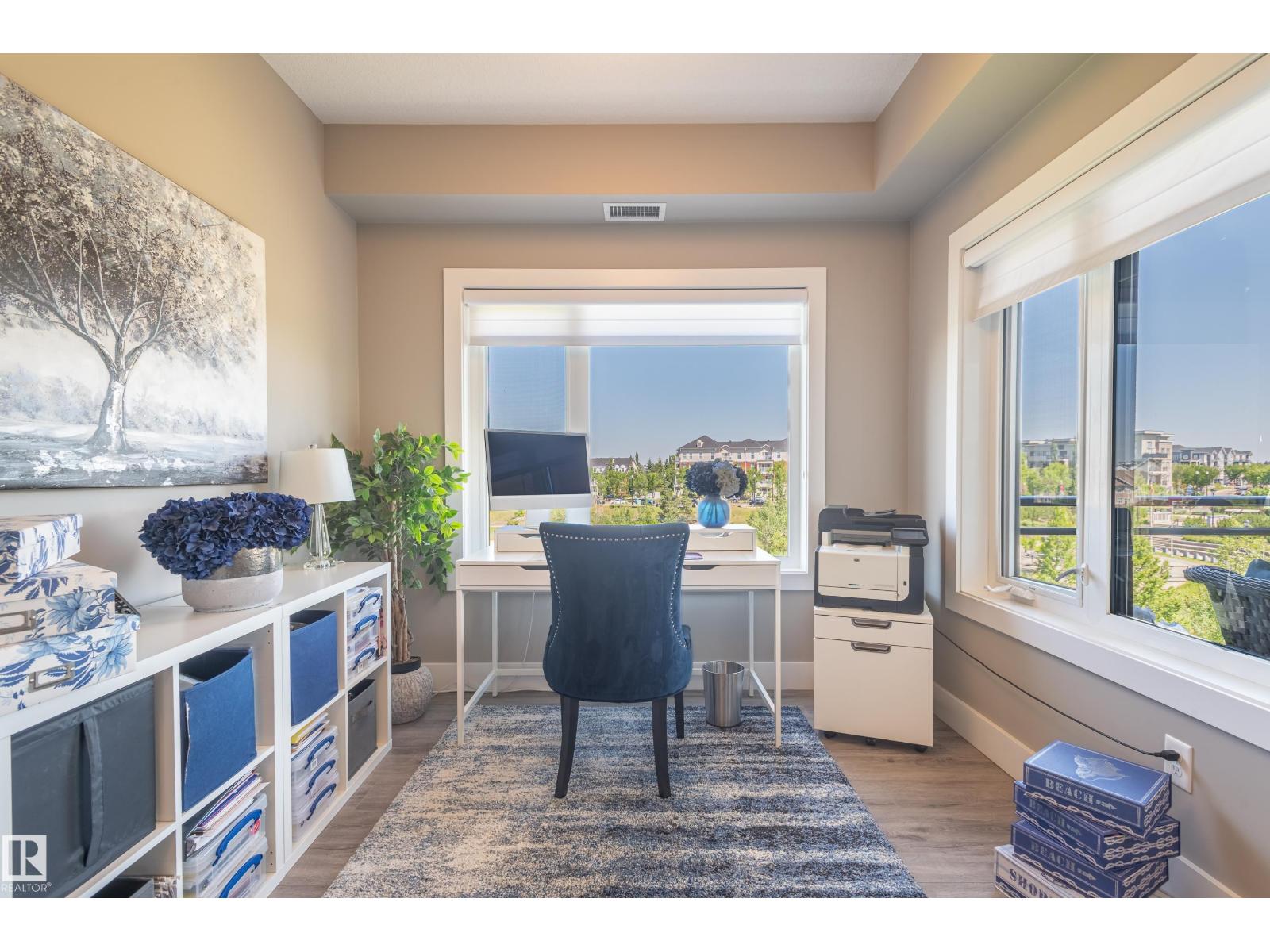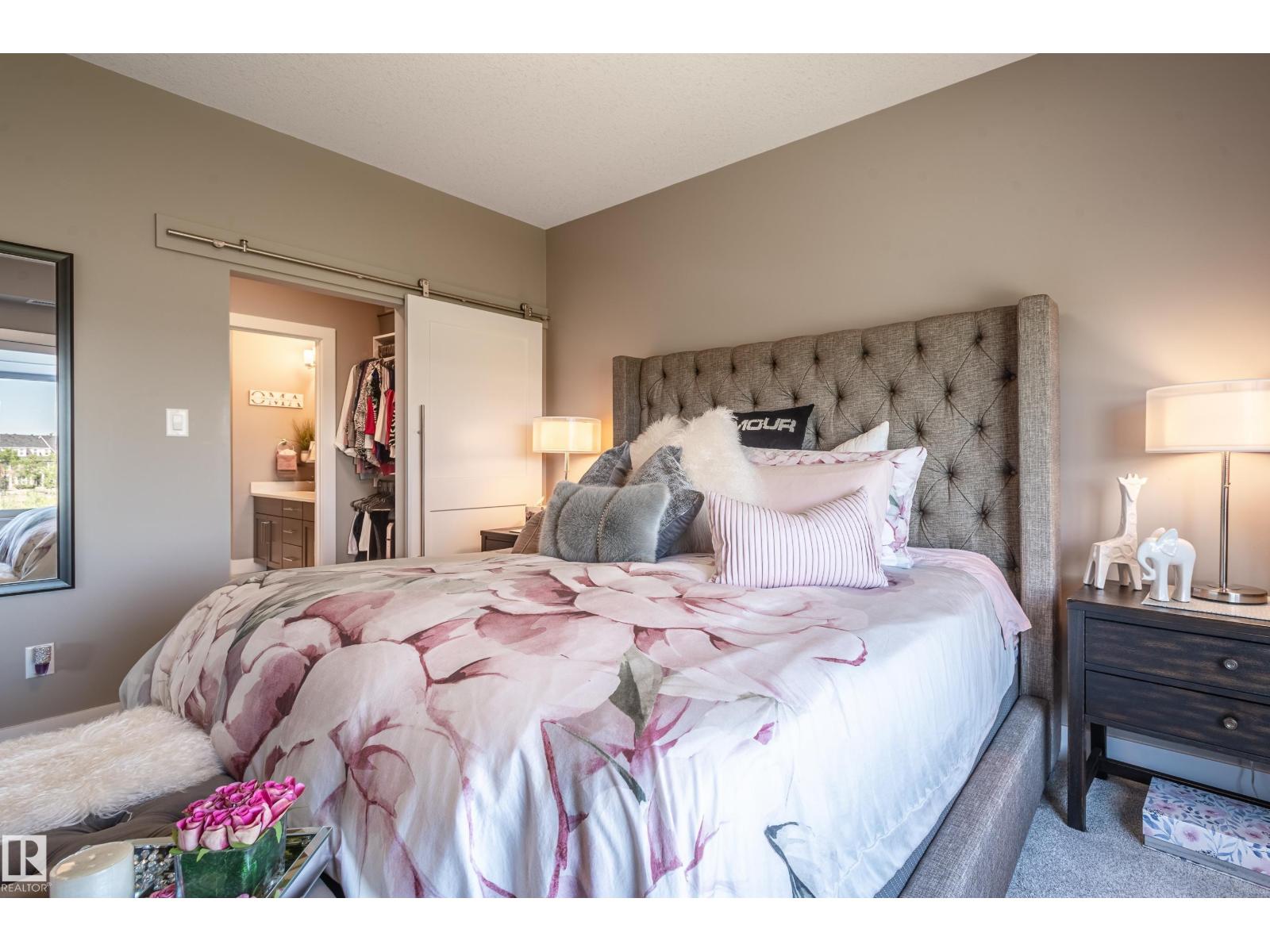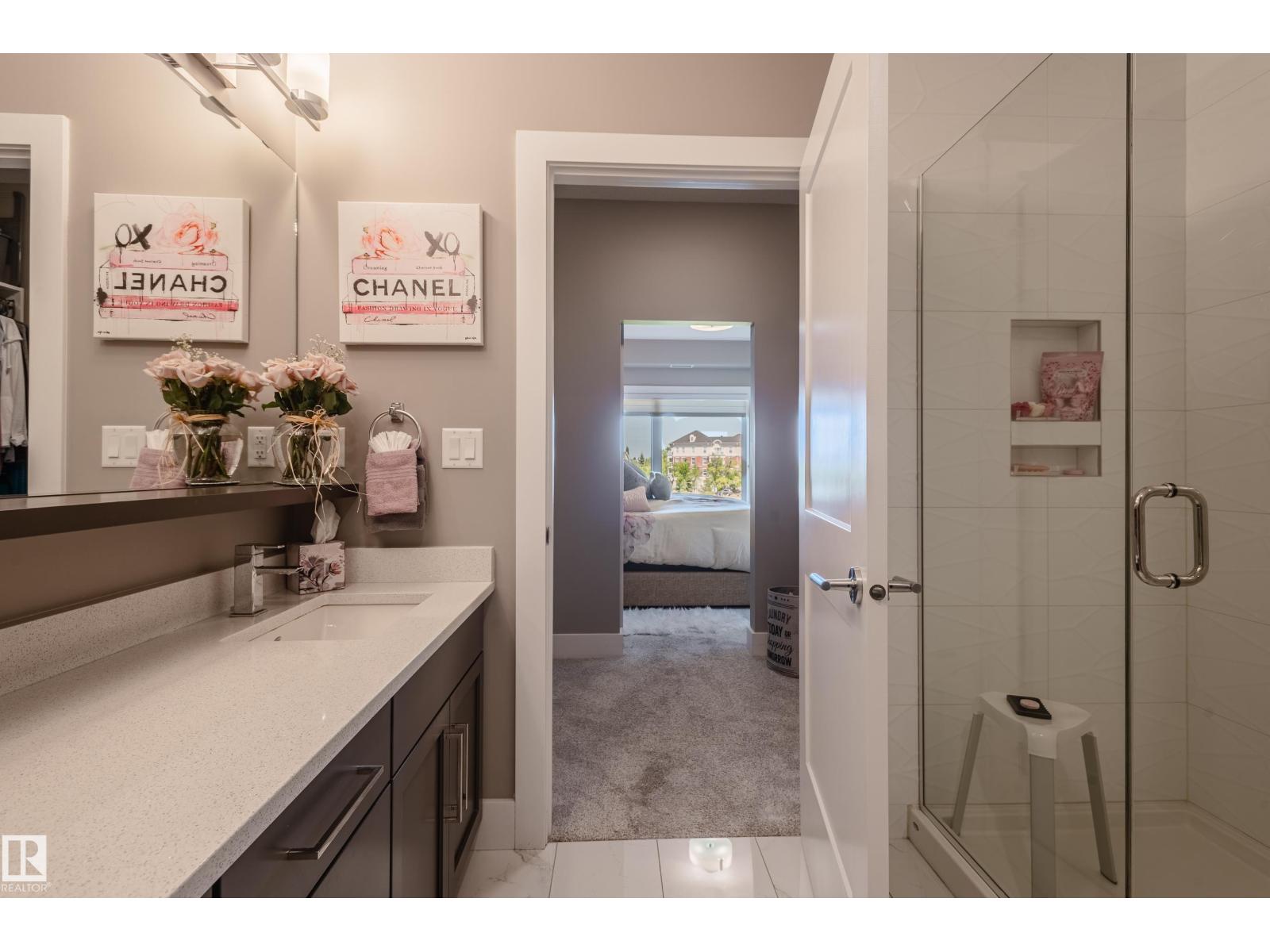 Extensively upgraded lake-facing corner unit in sought-after veritas, offering awe-inspiring views from every angle. this immaculate one-owner home features 2 spacious bdrms, 2 baths, & a bright den. enjoy sunny mornings & shady evenings on wrap-around deck. the two-tone kitchen is a standout with upgraded appliances, a tile backsplash, & a 6” extended island with added cabinetry on both sides. designer lighting, magazine-worthy layout & décor, & a spa-inspired ensuite. a/c. over $25,000 in thoughtful upgrades also include barn doors, premium flooring, custom shower tile, additional quartz countertops, blinds, hardware, & a second (surface) parking stall that adds everyday convenience, plus a heated stall with secure storage. pride of ownership shines throughout—clean, cozy, and stylish. located steps from countless amenities in one of edmonton’s most desirable communities, this home offers a seamless blend of comfort, elegance, and breathtaking views. style meets serenity in this griesbach gem! (id:62933)