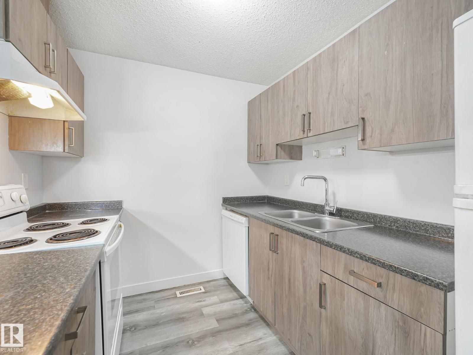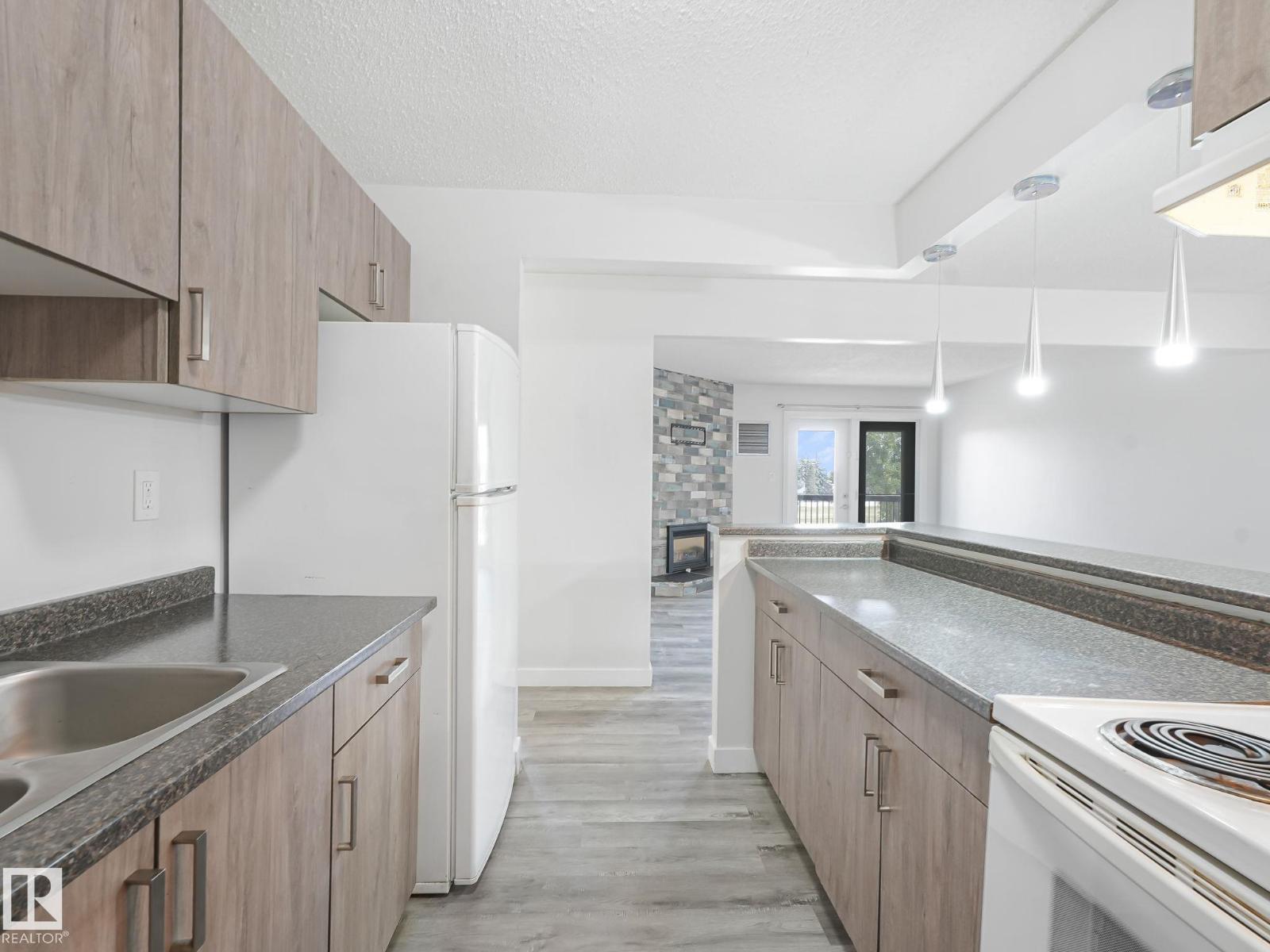 Investor alert! top-floor 2-bedroom condo in a high-demand south edmonton location—just steps to lrt, shopping, restaurants, parks, and major commuter routes. offering 952 sq ft of updated living space, this unit features a renovated open-concept kitchen with modern cabinetry, countertops, and eating bar, plus stylish vinyl plank and ceramic tile flooring. the spacious layout includes a large primary bedroom with walk-in closet and cheater access to the upgraded 5-piece bath with dual sinks. a striking floor-to-ceiling stone-faced fireplace, contemporary lighting, oversized balcony, and generous in-suite storage add value and appeal. strong potential for rental income or long-term appreciation in an area with excellent amenities and transit access. a prime opportunity to expand your portfolio with a move-in-ready unit in a sought-after location. (id:62933)