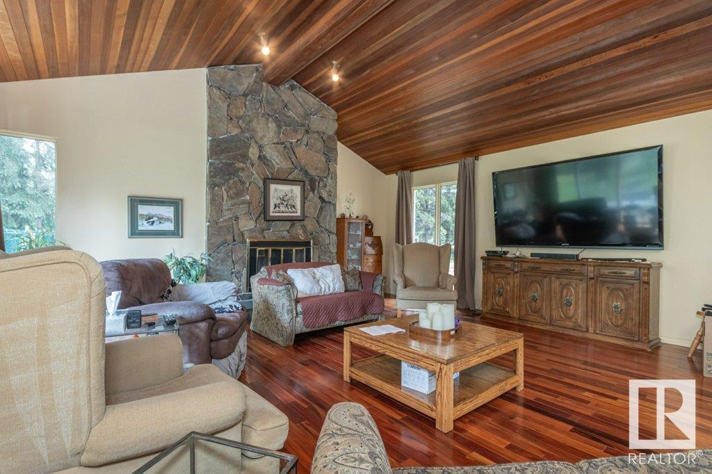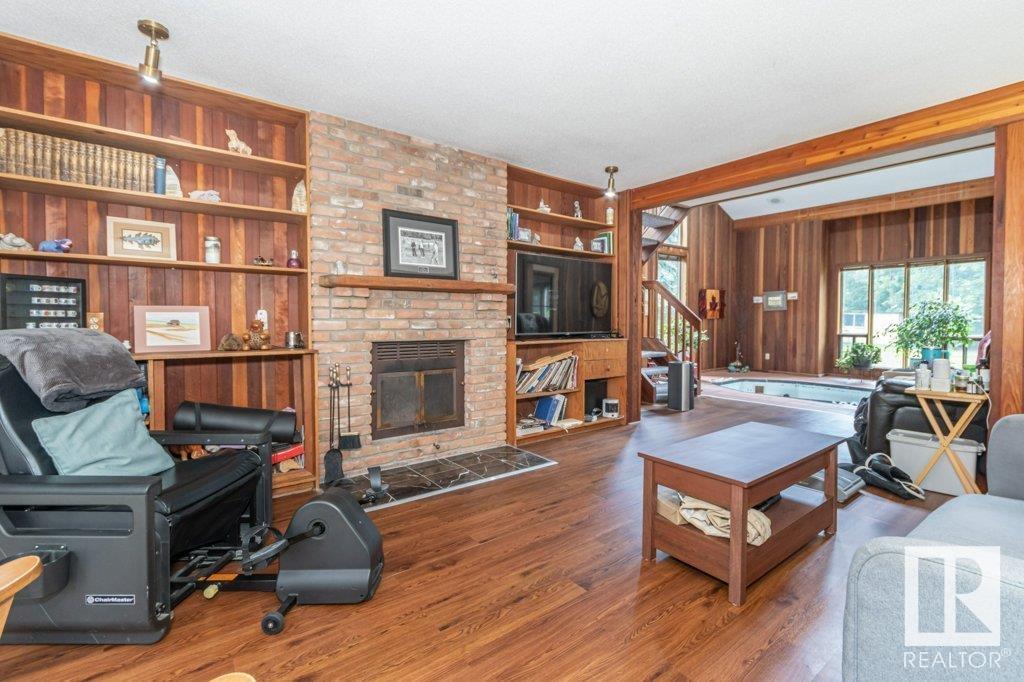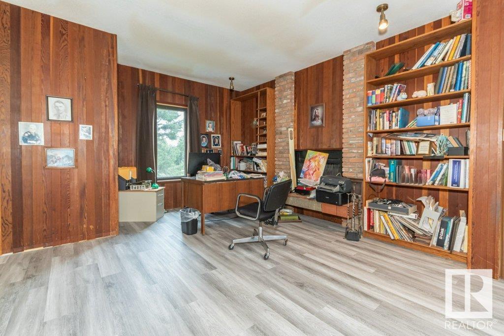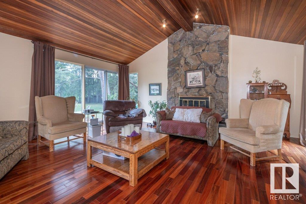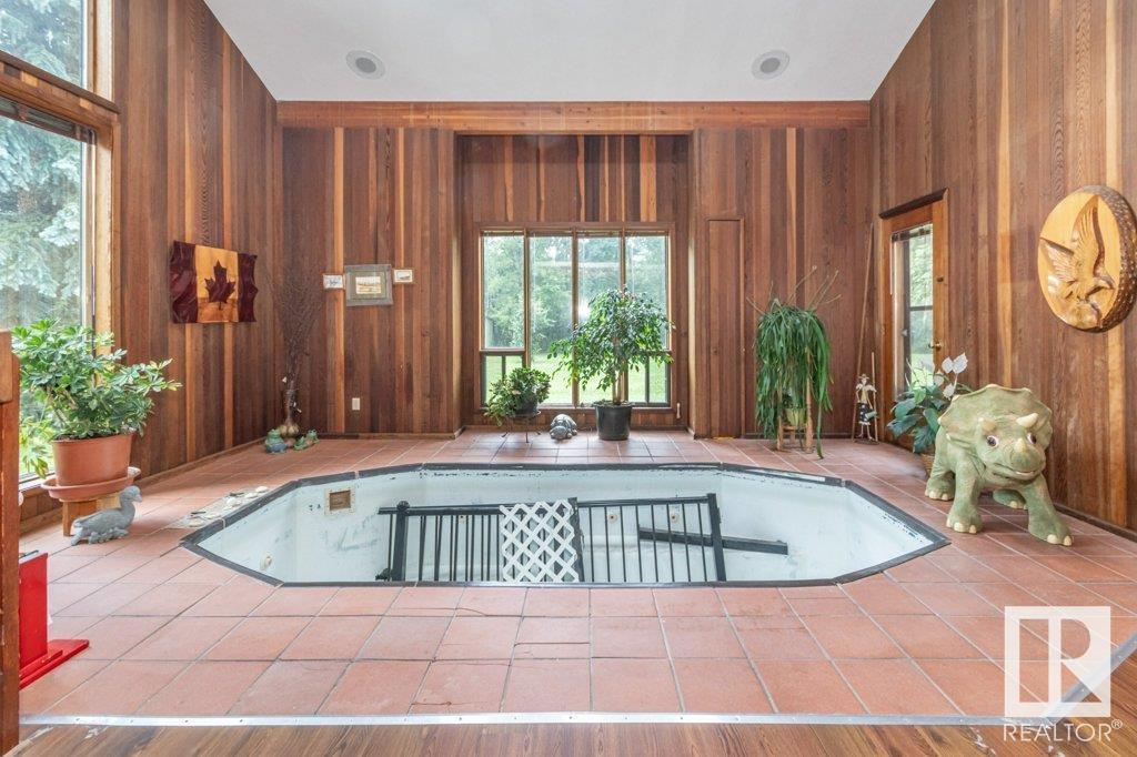 Beautiful setting on the 1.03 acre lot in the city of edmonton. this home is over 3000 sq ft and features three wood burning fireplaces. large living area with vaulted ceilings galley kitchen family room with view into lap pool area. large master bedroom with library area and fireplace and two additional bedrooms on the upper level. the basement is unspoiled and ready for development. time to renovated or hold for future estate. (id:62933)