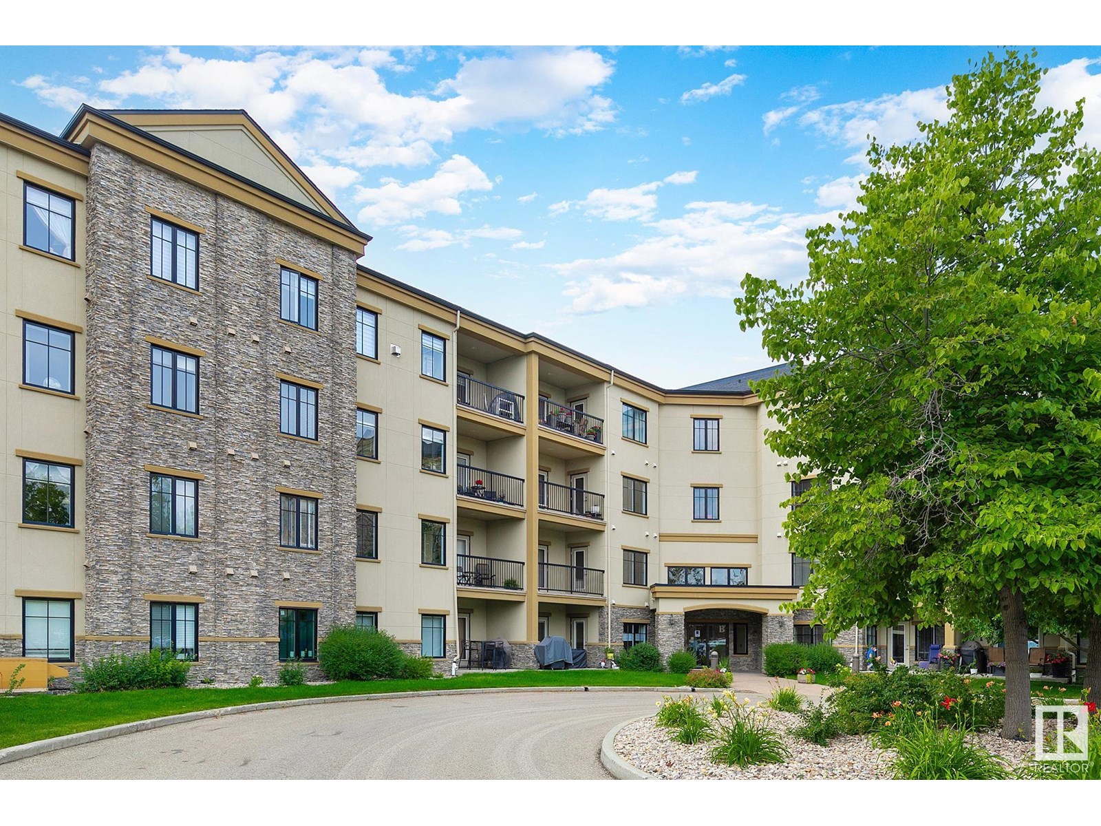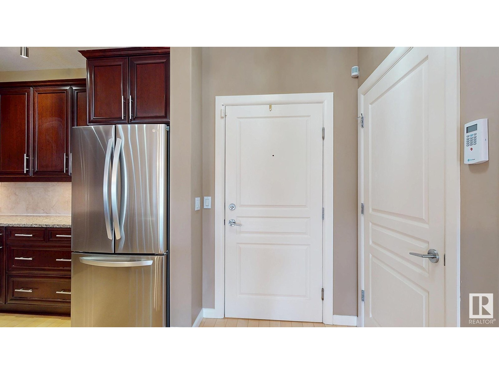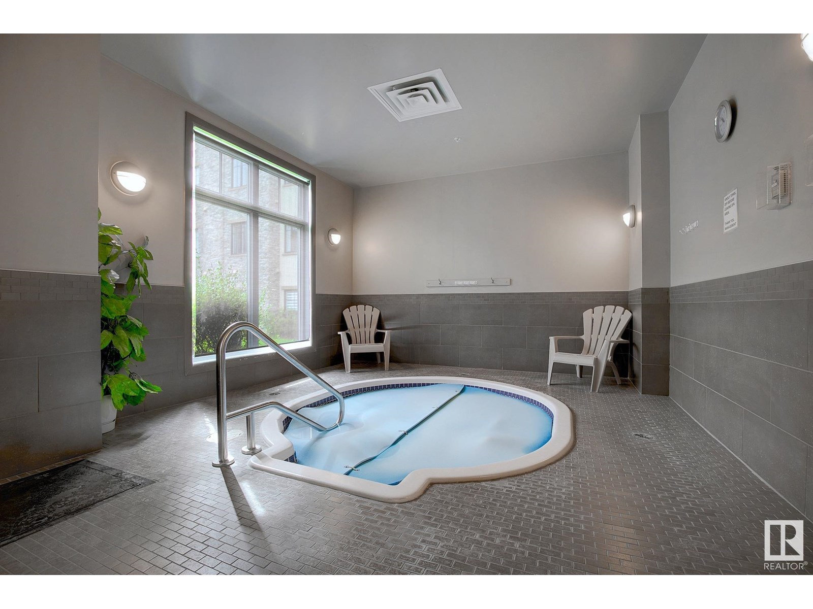 A rare find in magrath mansion! this beautiful executive (18+) condo features 2 bedrooms, 2 bath + den. plenty of natural light throughout with an open concept floor plan and 9 foot ceilings offer an airy feeling throughout. the spacious kitchen boasts attractive cherry wood cabinetry with granite countertops and stainless steel appliances. the dining area will accommodate a large table + china cabinet for entertaining. there is an in-suite laundry/storage room. primary bdrm features a 4 pce ensuite with jetted tub plus a huge walk-in closet. private west facing balcony access from lr and bedroom. amenities include gym, sauna, hot tub, theatre, outdoor entertainment area with fireplace & social room. steel & concrete building with fan coil heating and cooling system. heated underground titled parking with storage locker & convenience of a car wash. secure building, all professionally managed. walking distance to ample shopping, restaurants, magrath creek park and ravine with lots of walking trails! (id:62933)