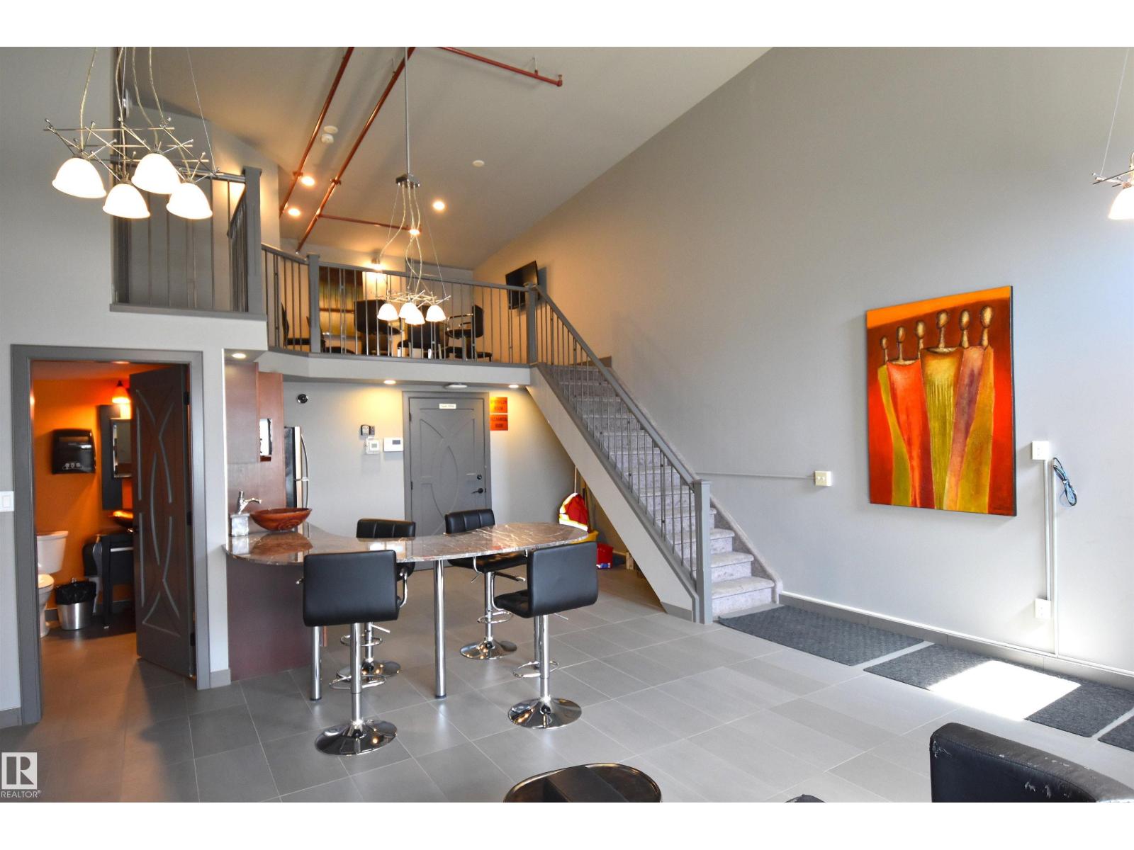 Commercial warehouse/storage bay for lease with 14' x 12' overhead door. prefect for small business or your storage needs. very convenient location in the west end. right off of winterburn road, next to highway 16a and seconds to anthony henday for easy access. this bay has a 12' x 10' overhead door with a storage room that has built-in shelving on the main floor. the mezzanine (2nd floor) is open for storage. there is no running water in this bay. this unit has access to the very cool clubhouse which is 2 doors down. washroom facilities and team meeting area is available in clubhouse. gated entrance (keypad access) and excellent location for your storage needs or business. quiet and secure area. (id:62933)